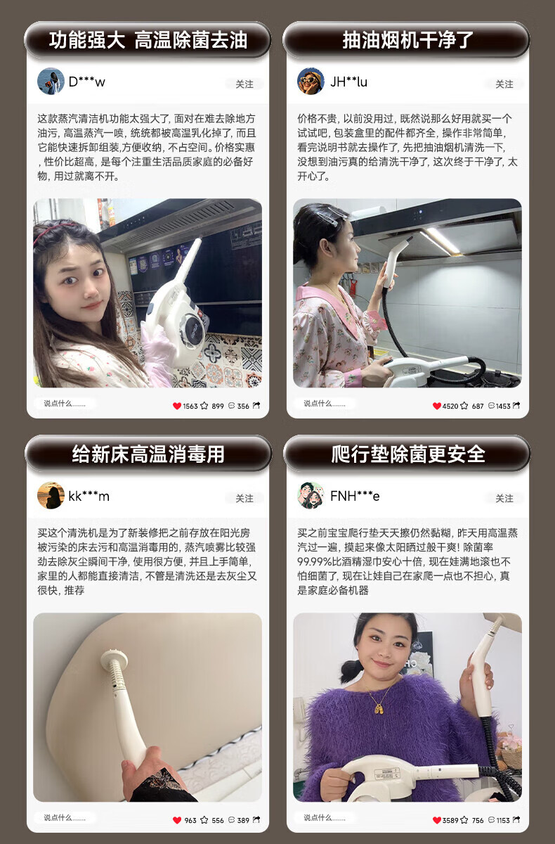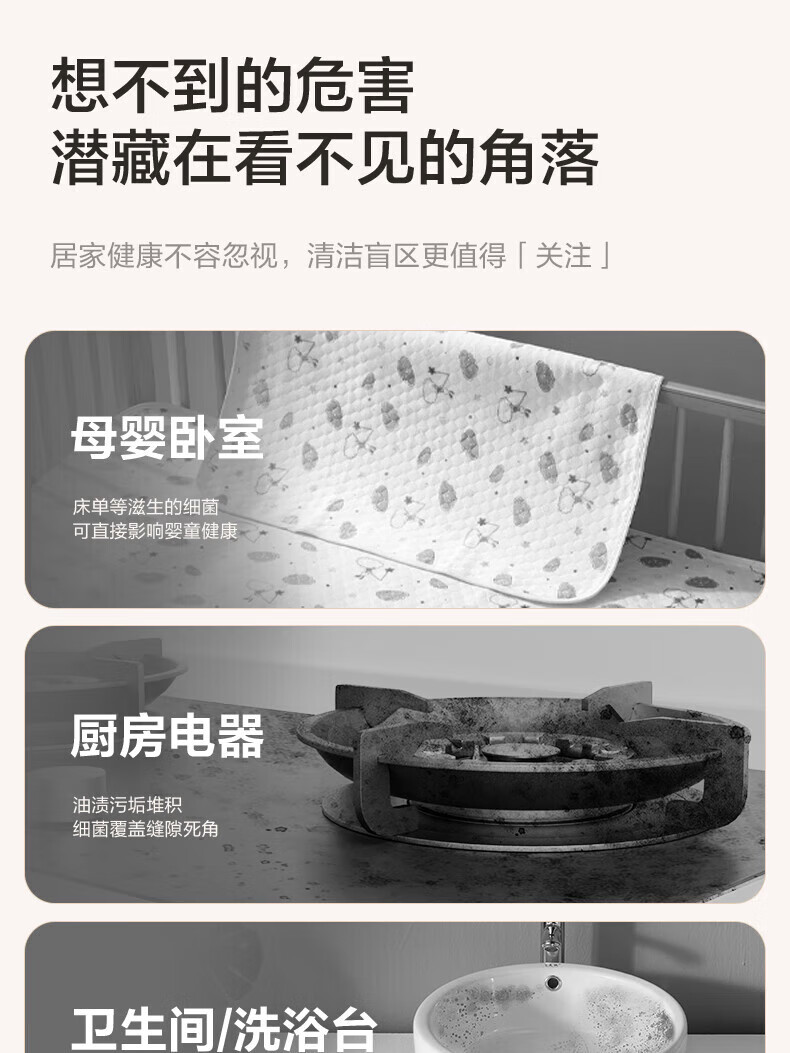 Supor steam cleaner high temperature and high pressure household portable sterilization, mite removal and decontamination kitchen range hood air conditioner multi-functional all-in-one cleaning machine small 99% sterilization rate 100% mite removal high temperature cleaning steam engine