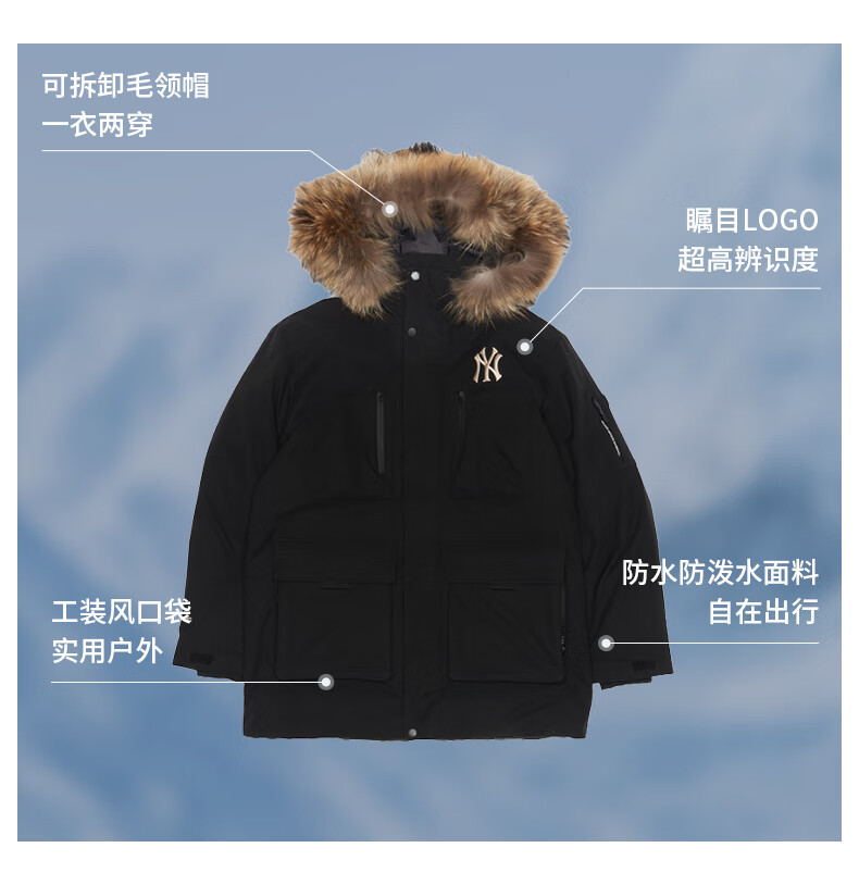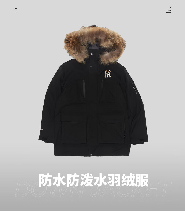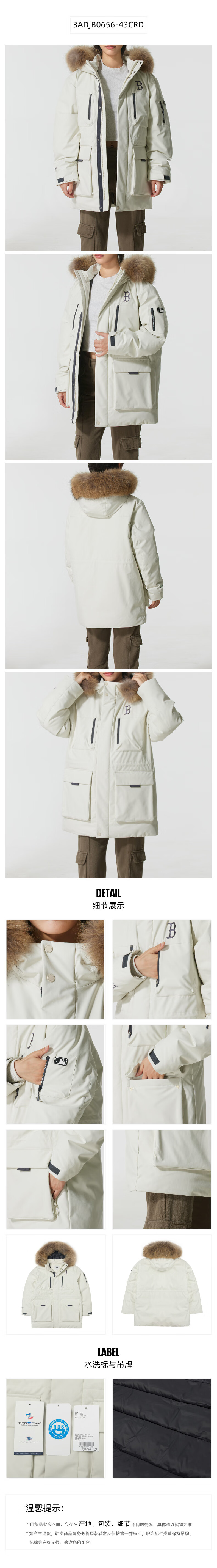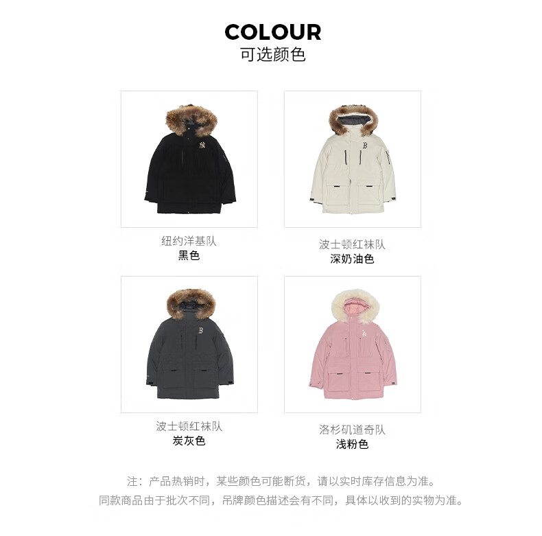 MLB official men's and women's big fur collar down jacket 26 spring new trendy warm logo jacket 3ADJB0656 Boston team/dark cream/recommended to order one size smaller XL 180/100A