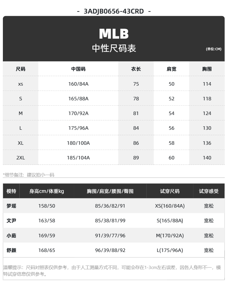 China (cm) 160-165/84-86 165-170 / 88-90 167-172 / 92-96 168-173 / 98-102 170-176 / 106-110