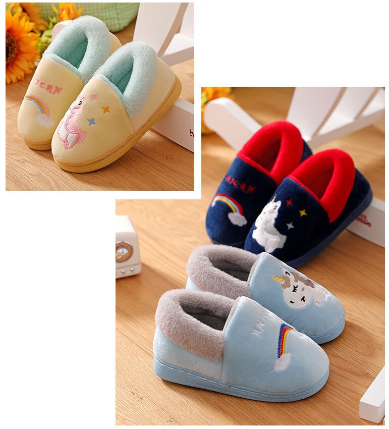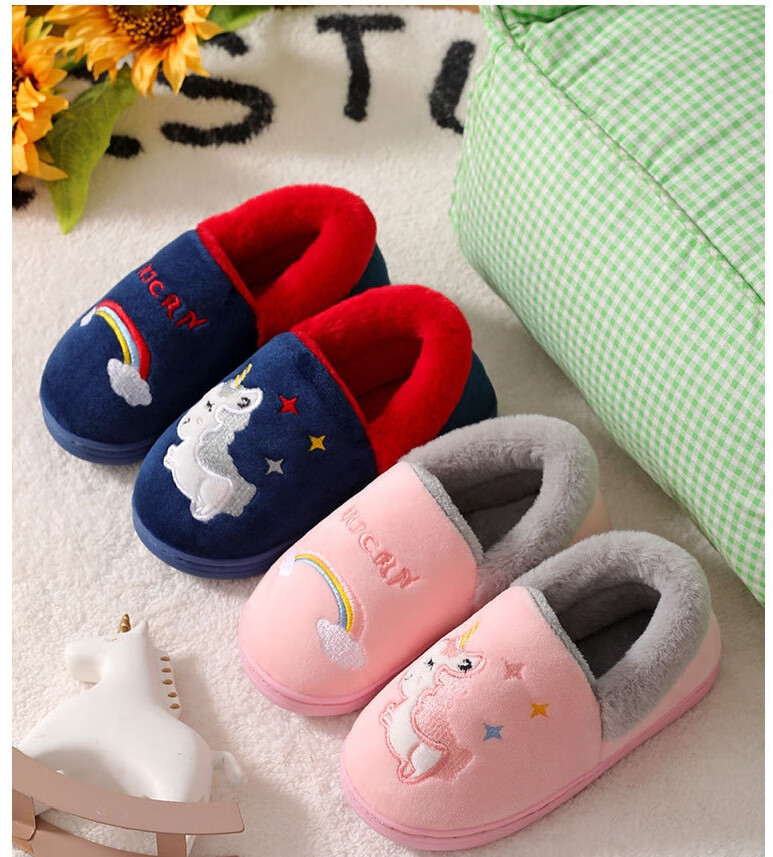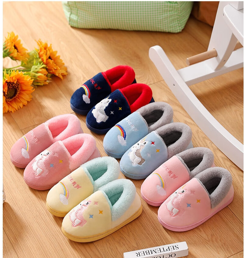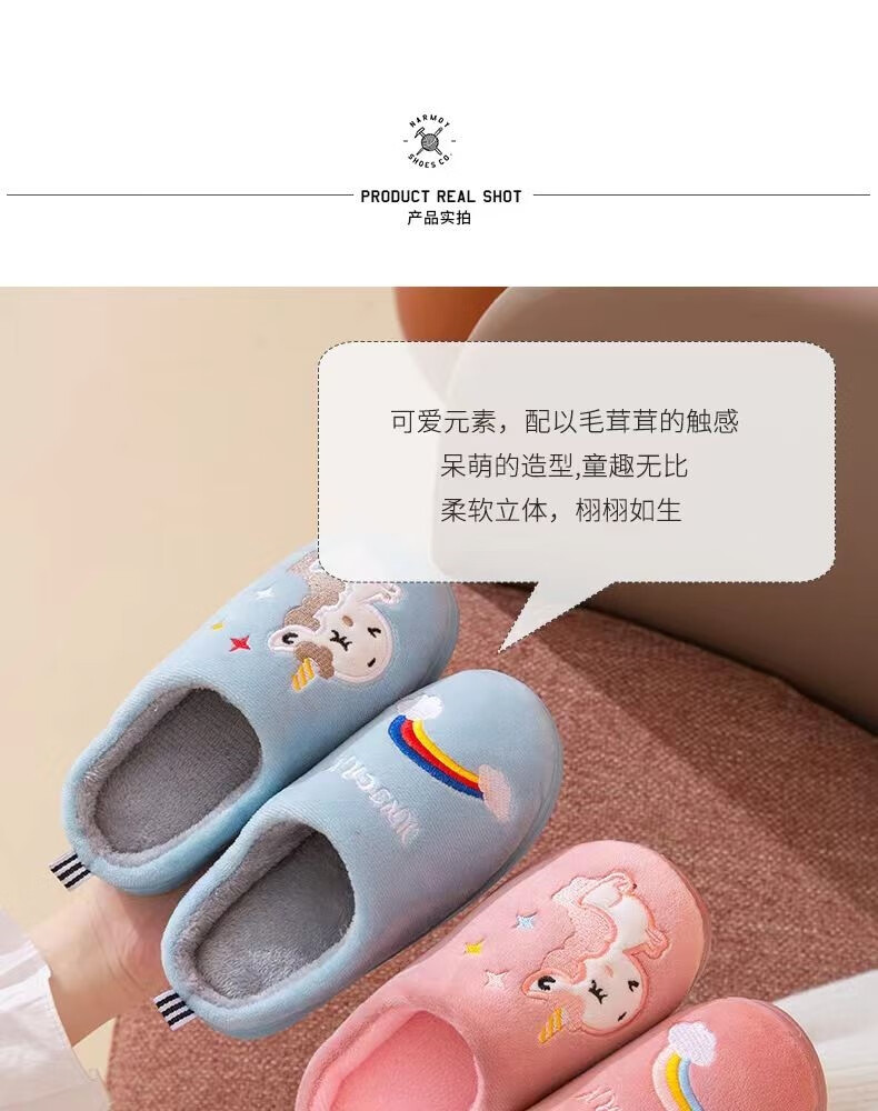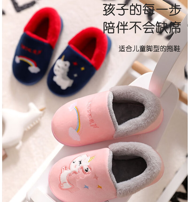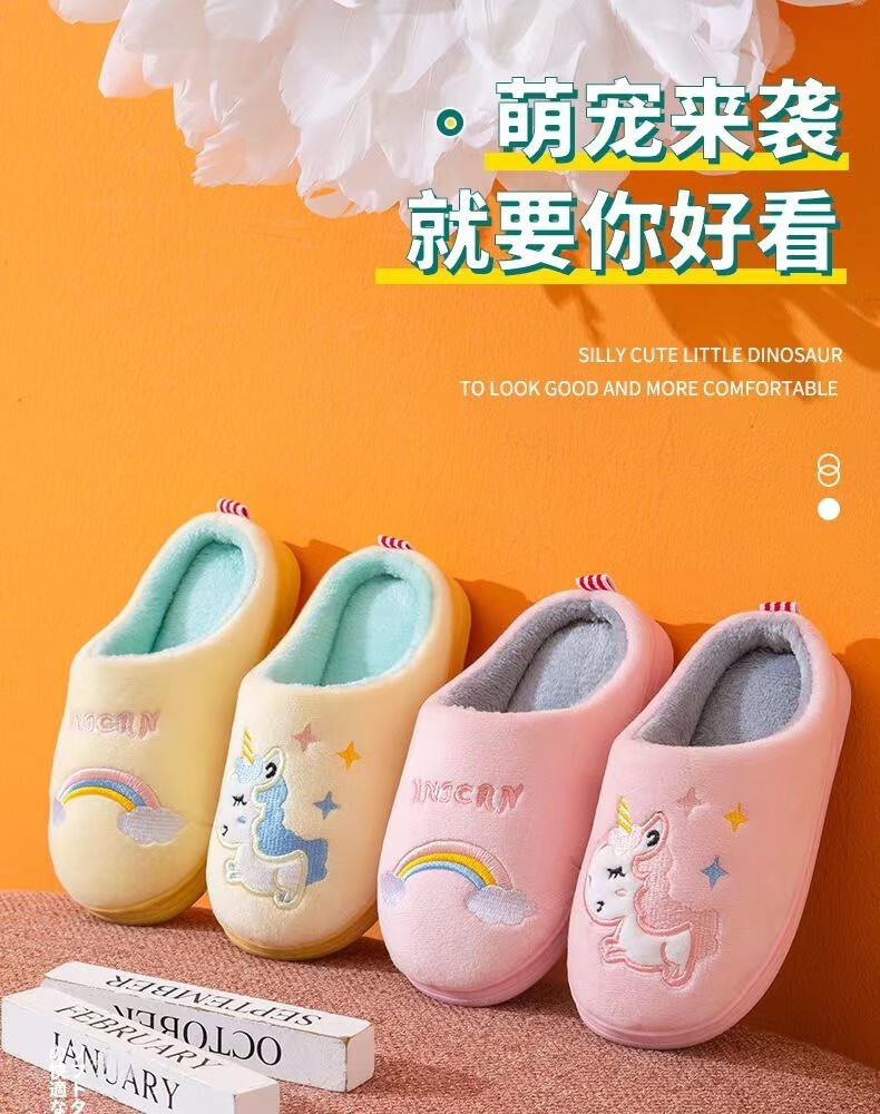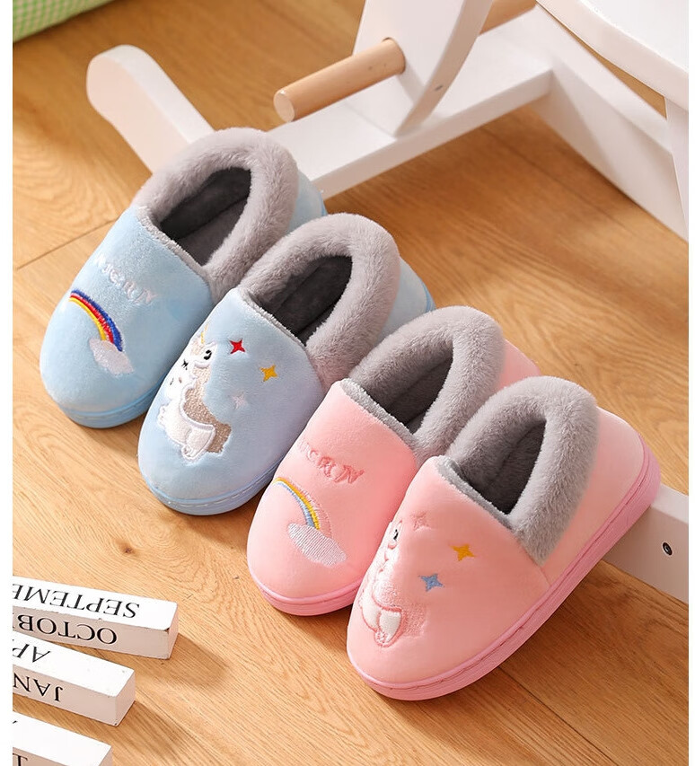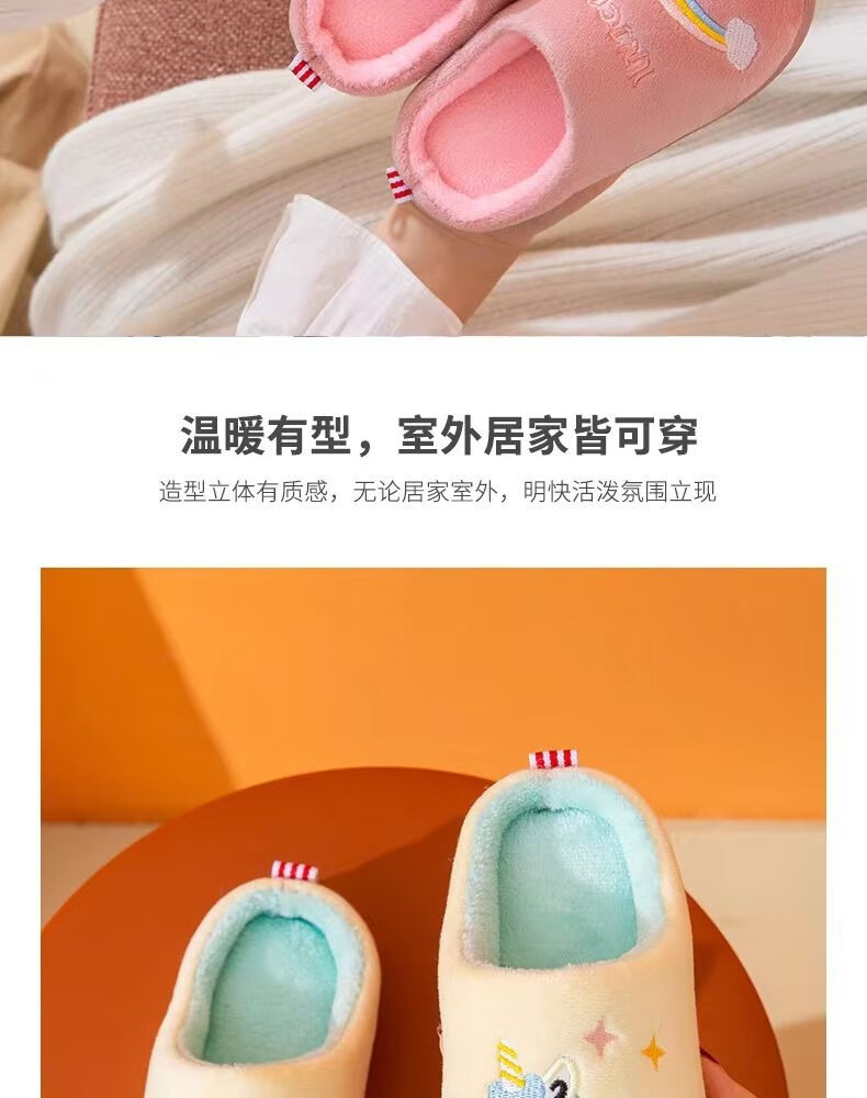 Donglai quality children's cotton slippers for baby girls in autumn and winter indoor home non-slip silent cute plush slippers broken size/fawn black 30-31 inner length 19cm/suitable for feet 28-29
