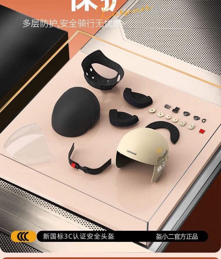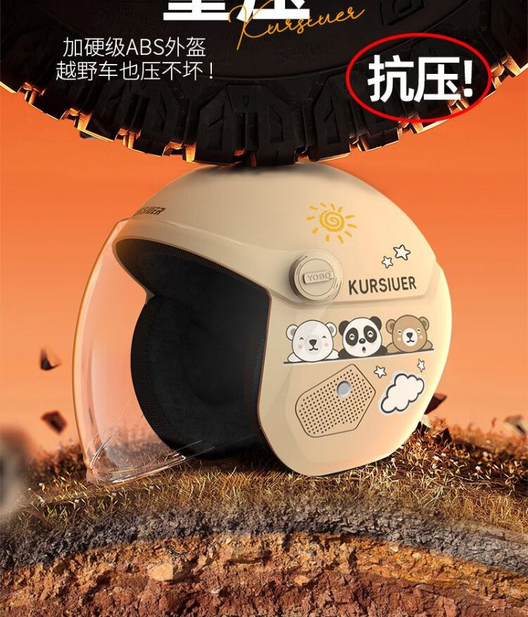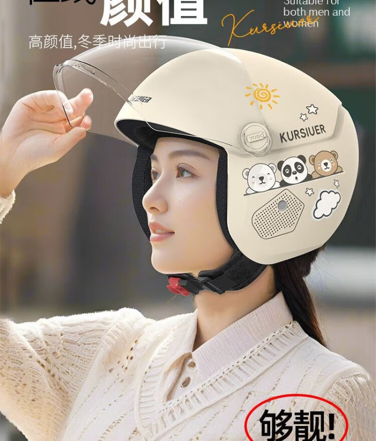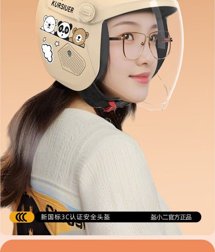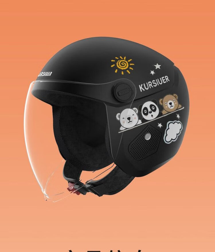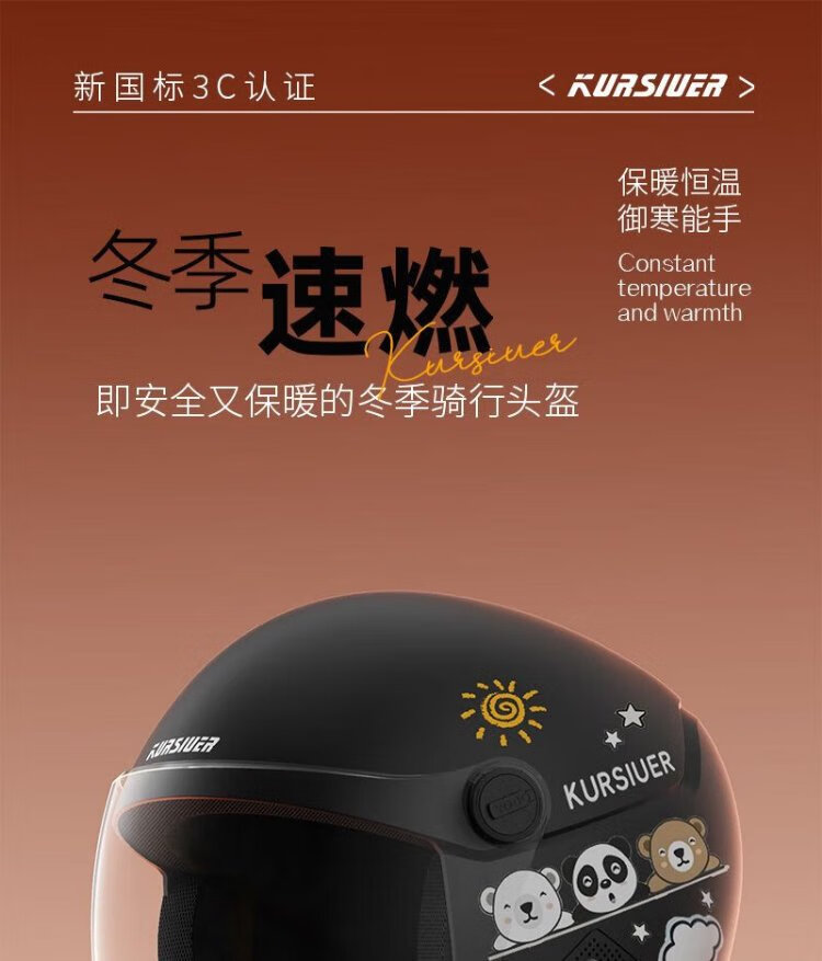 KURSIUER 3C certified national standard new electric vehicle helmet retro unisex autumn and winter cartoon warm and antifreeze helmet khaki three bears