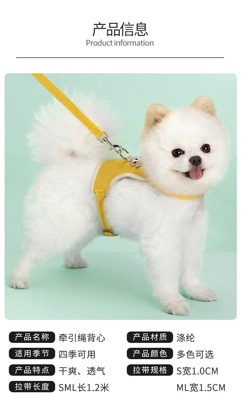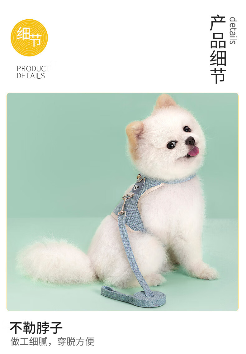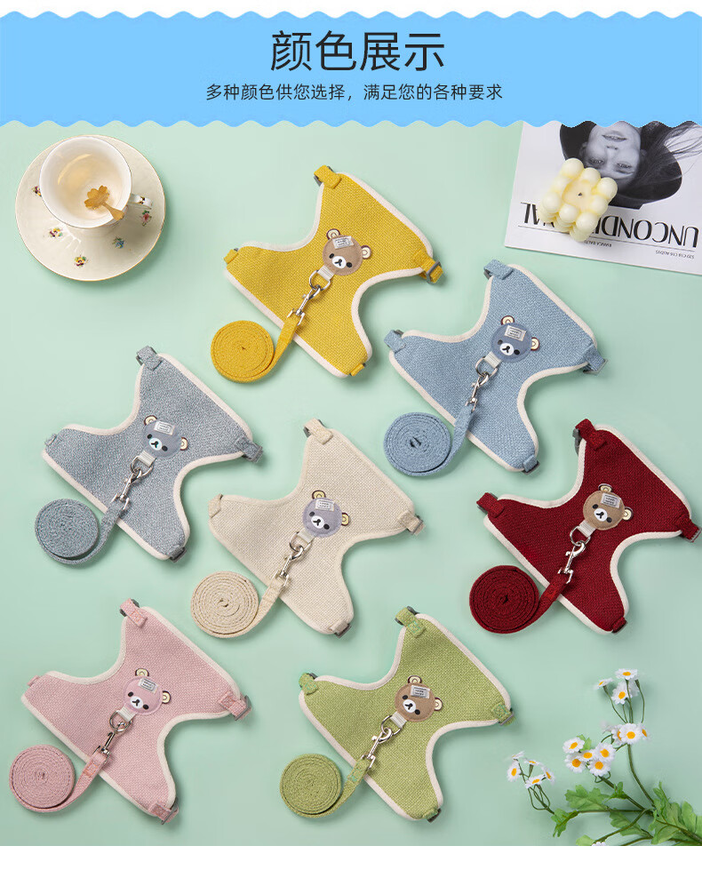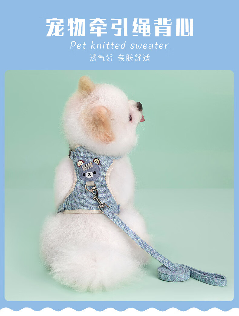 Dog leash, dog leash, small dog leash, dog harness, dog harness, vest-style dog walking leash, blue bear harness, S size, recommended 3-6 Jin Jin equals 0.5 kg