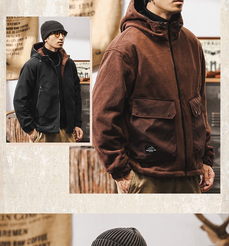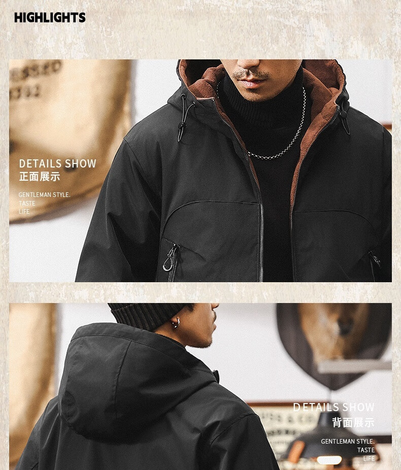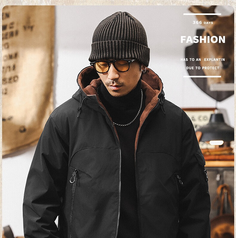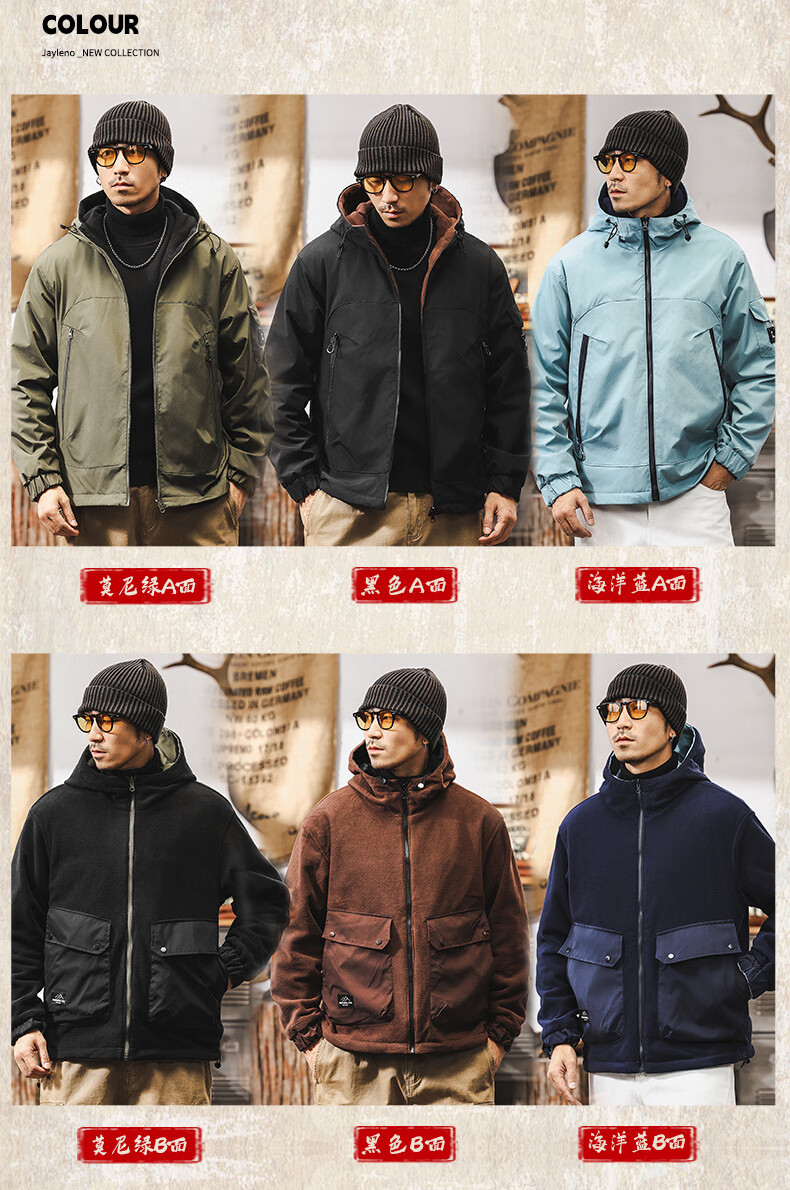 Jeanswest American retro double-sided outdoor water-repellent autumn jacket for men 2025 new loose functional wind three-proof jacket for men obsidian black reversible 2XL suitable for 160-180Jin Jin equals 0.5 kg