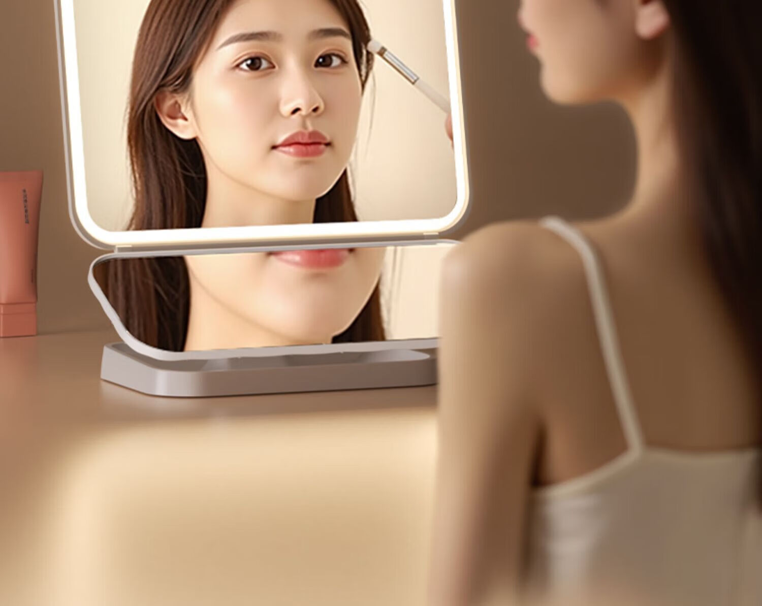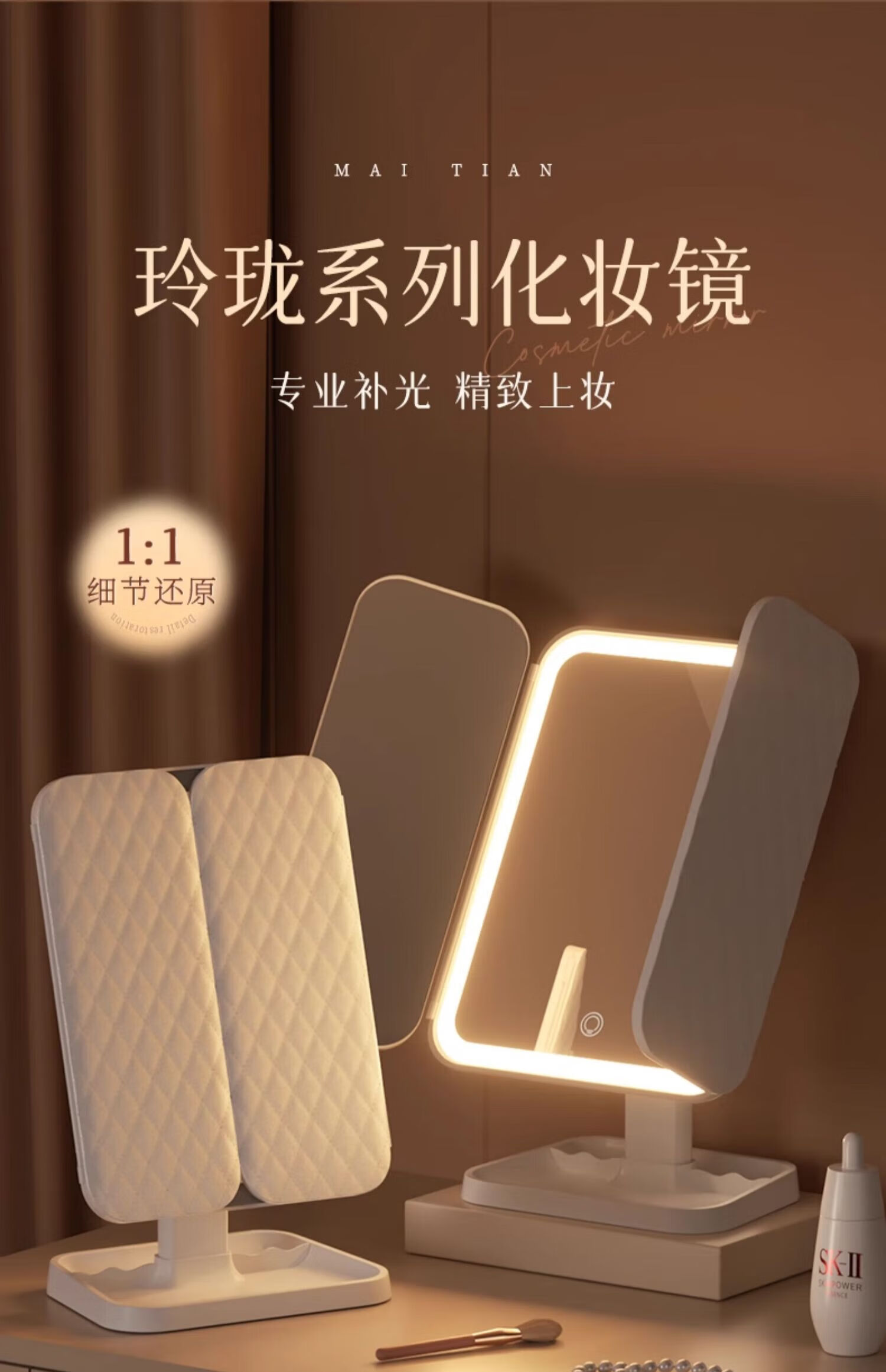 Mirror makeup mirror LED with light desktop tabletop stand-up foldable home student dormitory magnifying makeup mirror must-see before shooting Double List Maitian makeup mirror hot