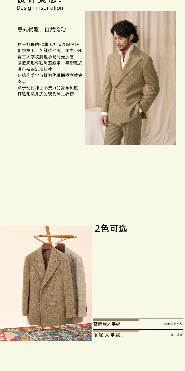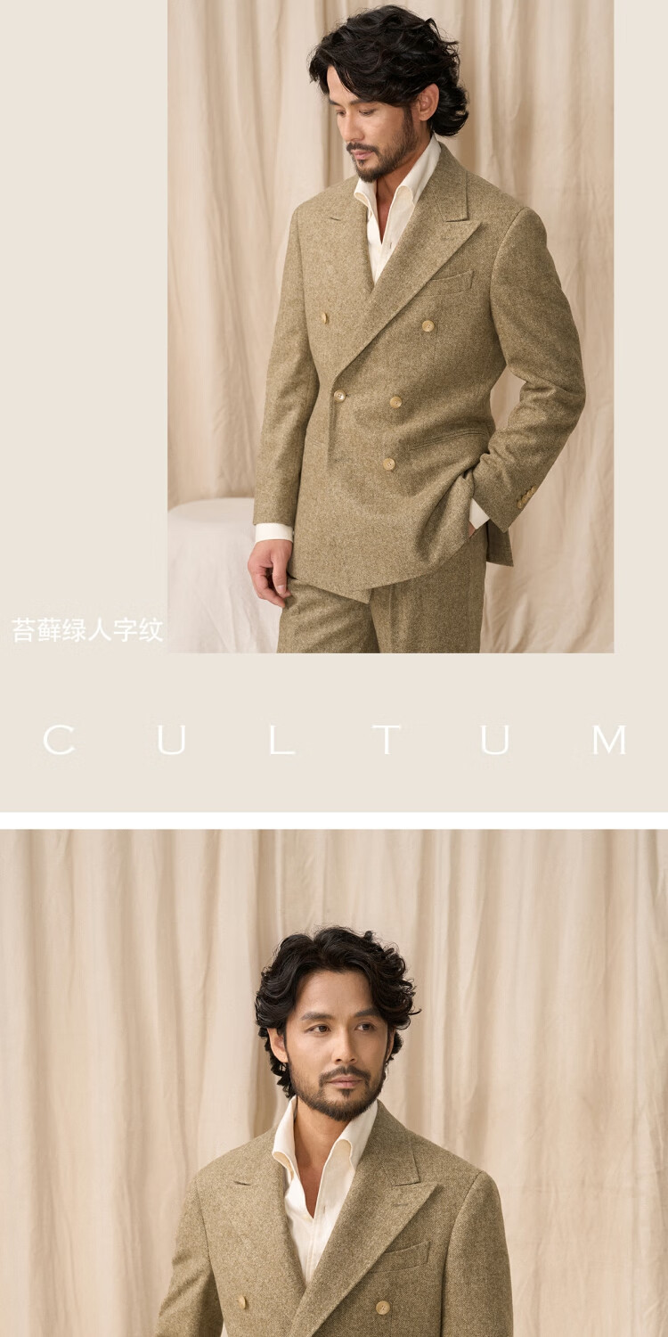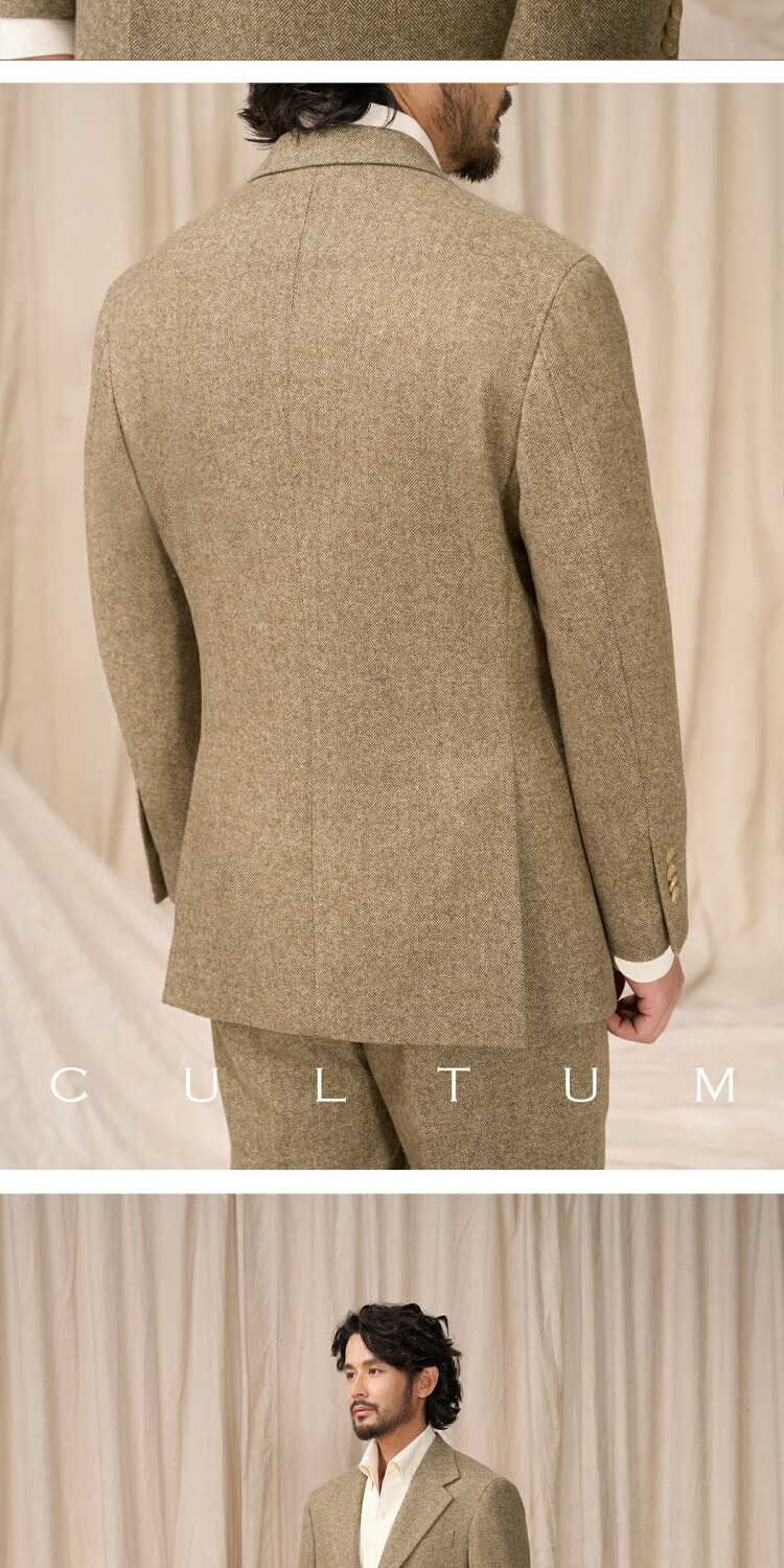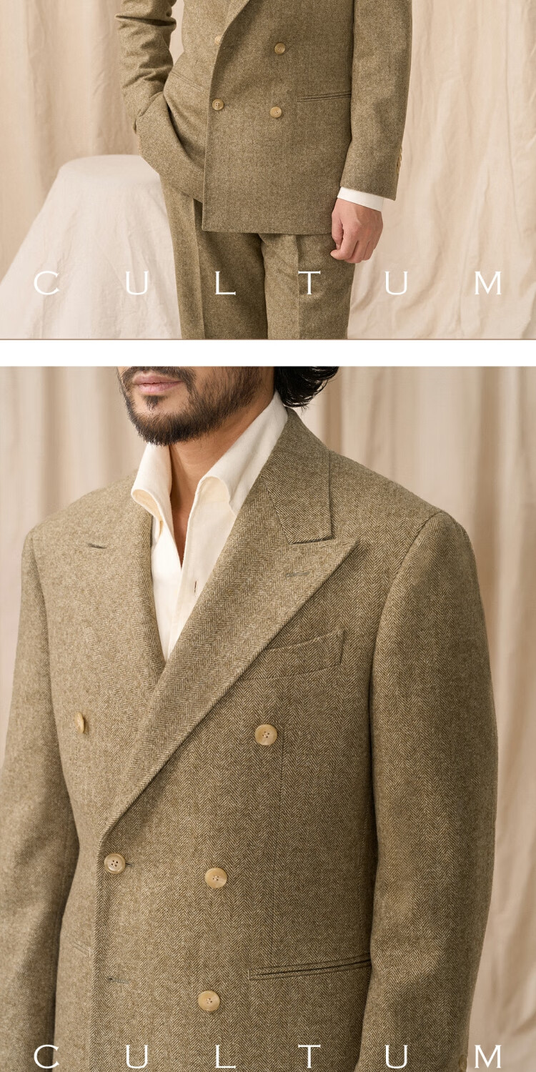 CULTUM 50 wool tweed CULTUM25 new autumn and winter classic 500g herringbone warm single suit for men, moss green herringbone two-piece set 56 B