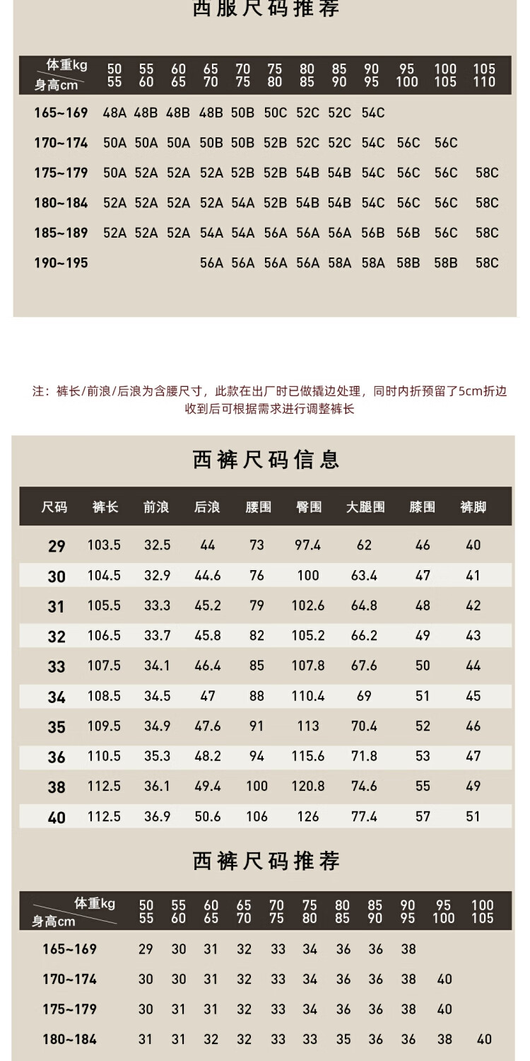 China (cm) 160-165/84-86 165-170 / 88-90 167-172 / 92-96 168-173 / 98-102 170-176 / 106-110