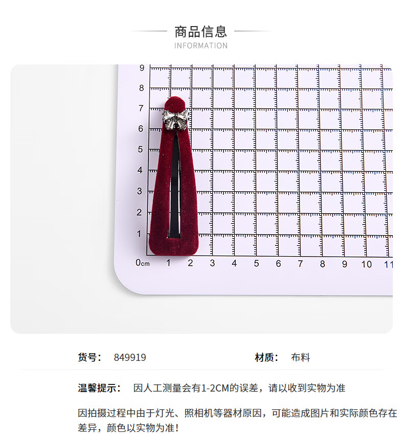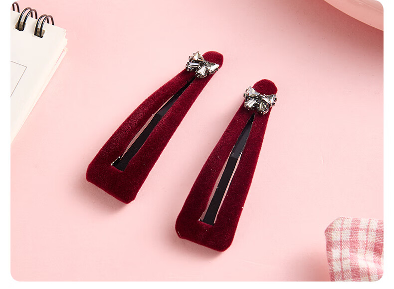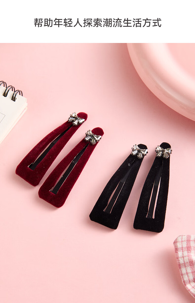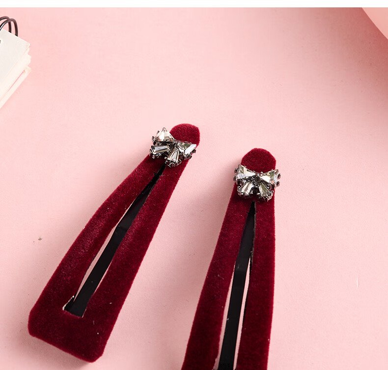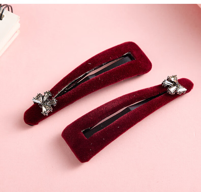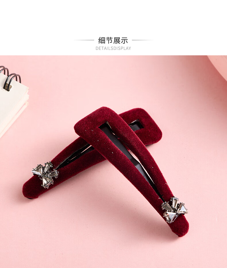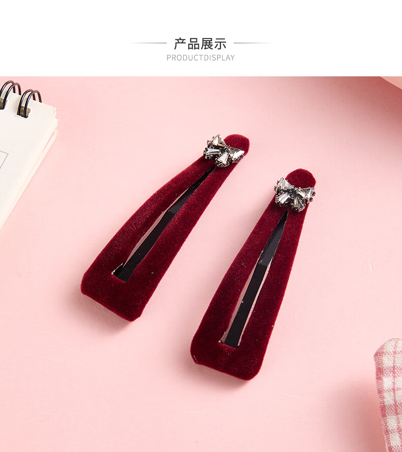 SANFU Velvet Hollow Triangular BB Clips Pair Elegant and Fashionable Retro Hair Accessories Hair Clips 849919 Red 2 pcs