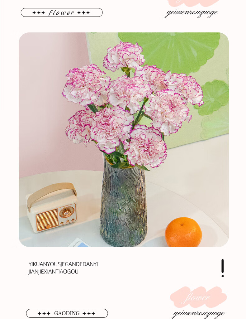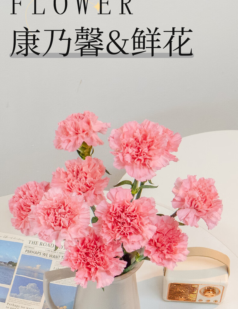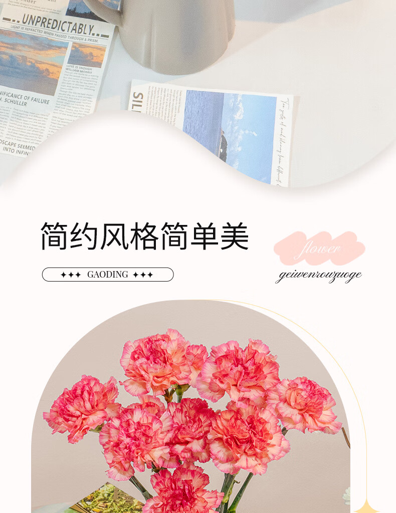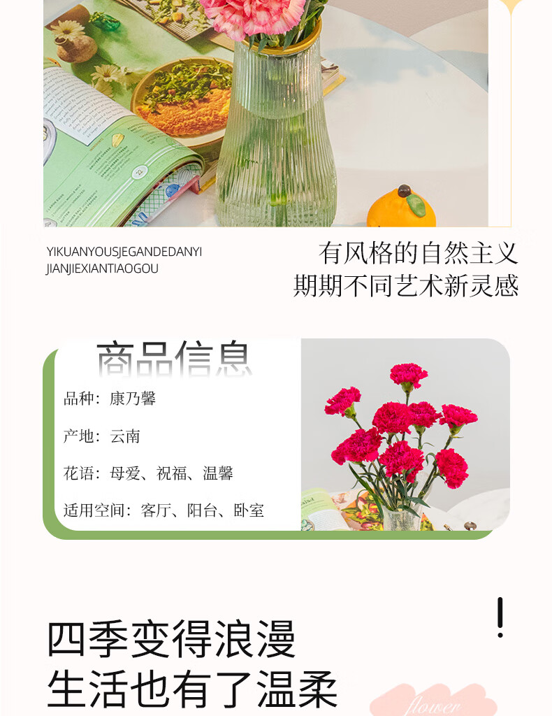 Carnation flowers holiday gift water-grown flowers for mom Yunnan flower base straight hair 10 random color carnations