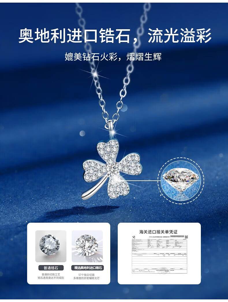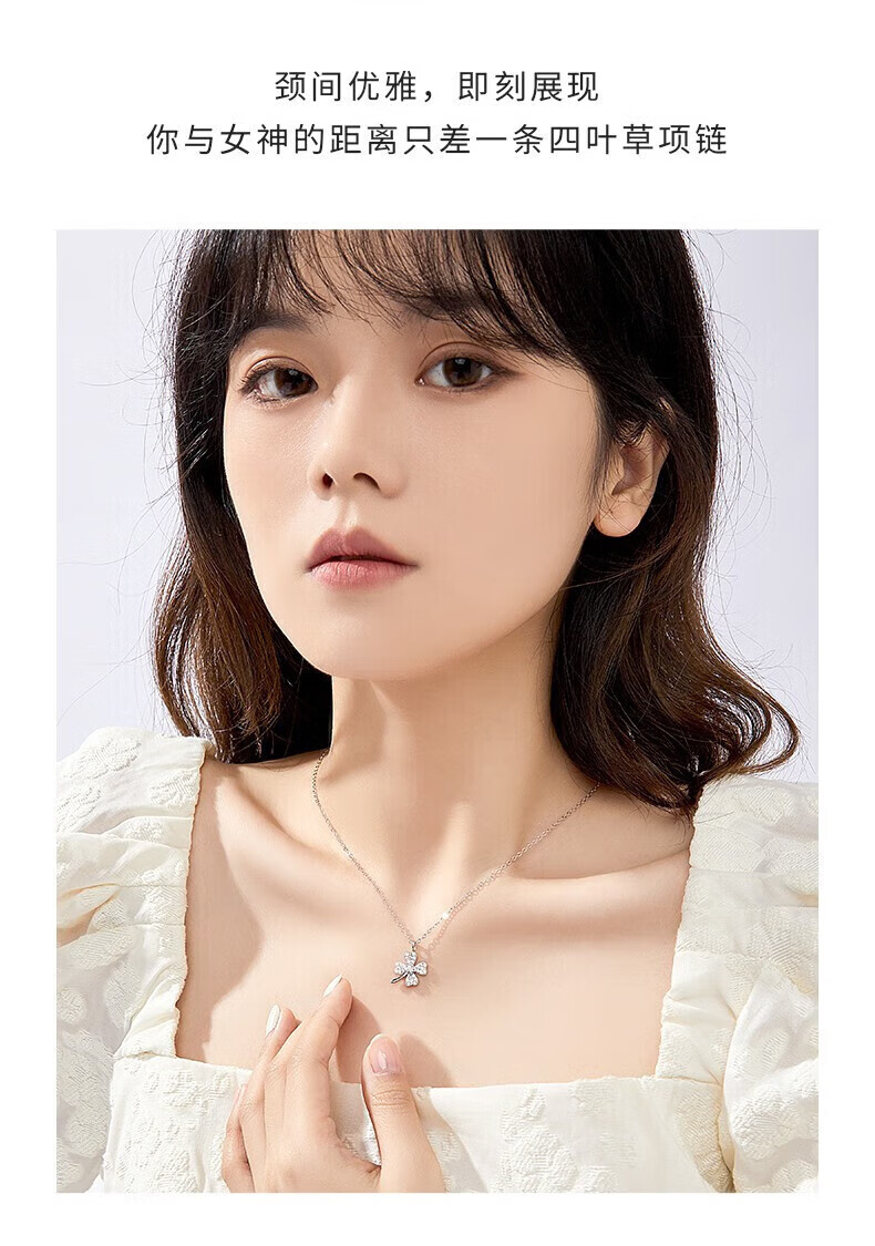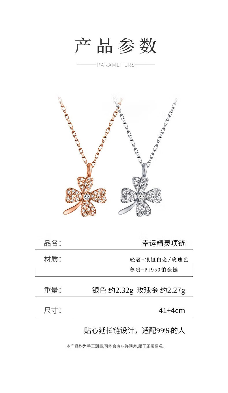 MZMZ platinum necklace women's pt950 platinum clavicle chain versatile accessories Valentine's Day birthday gift for girlfriend and wife local warehouse/next day delivery - light luxury four-leaf clover white gold necklace
