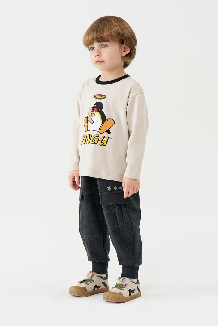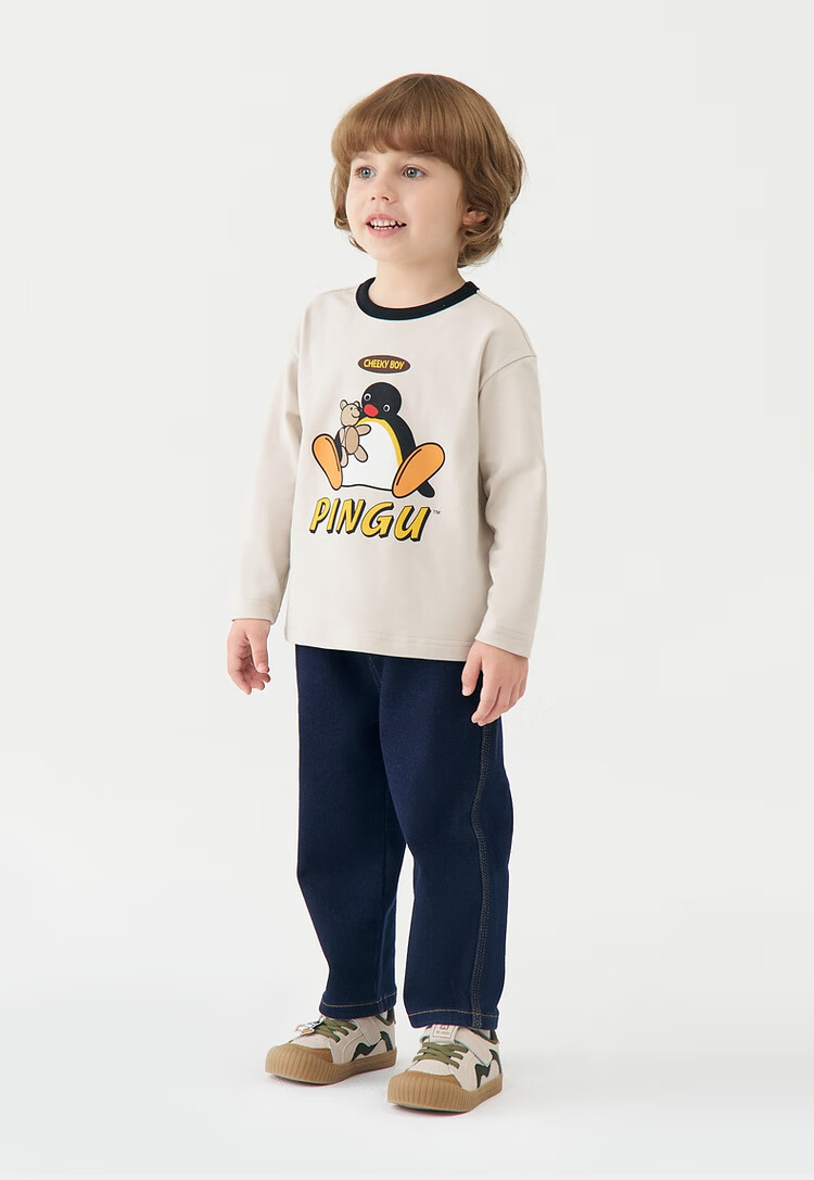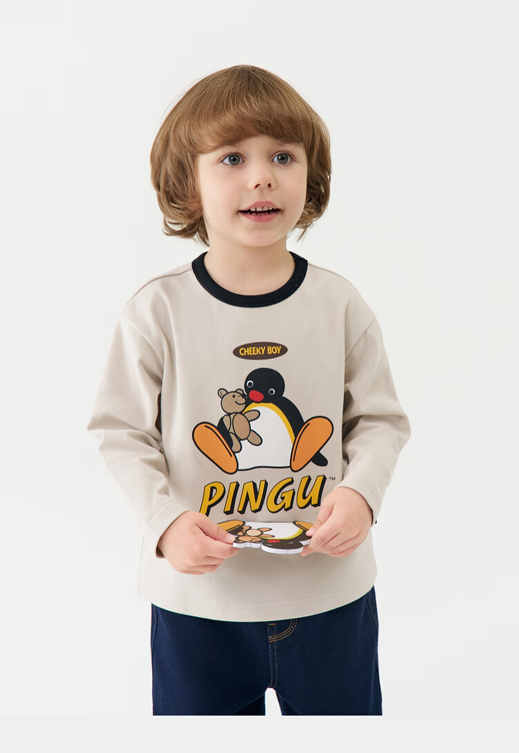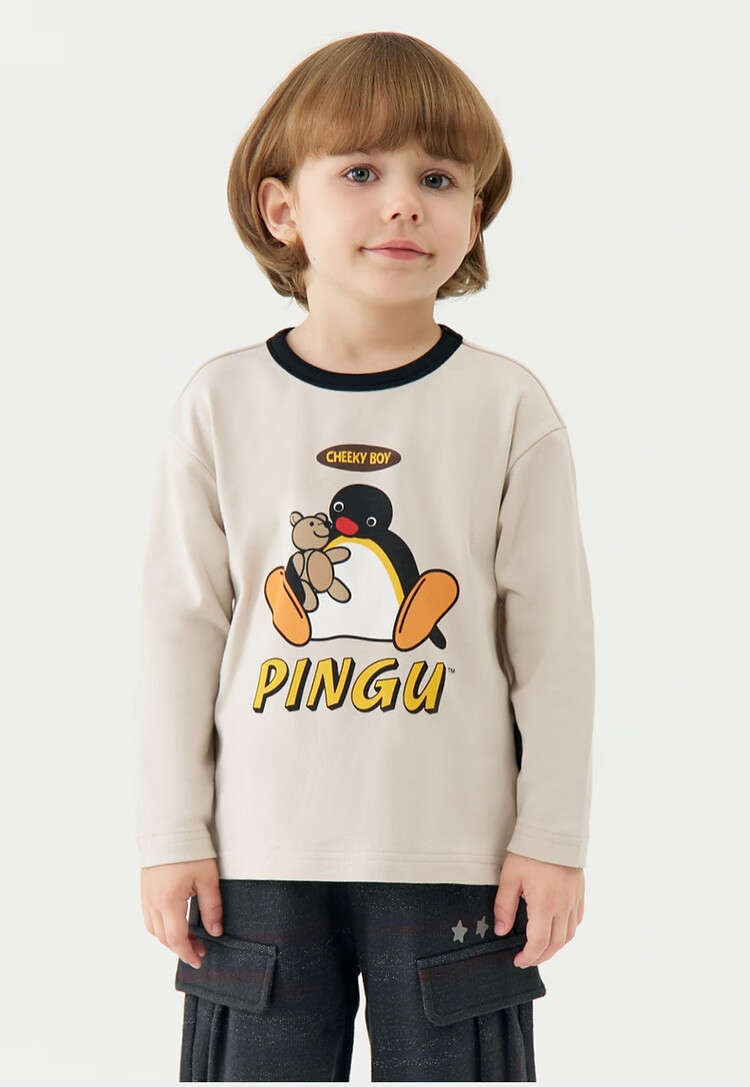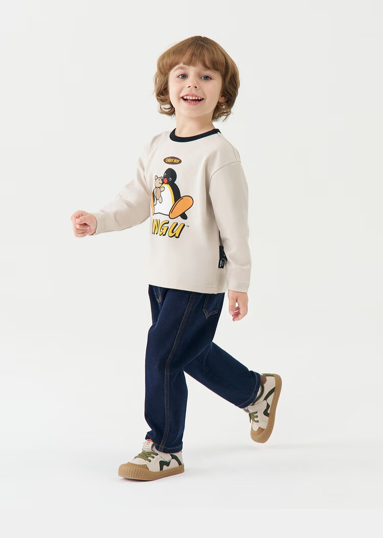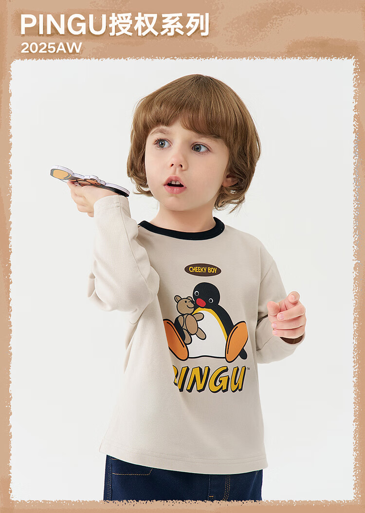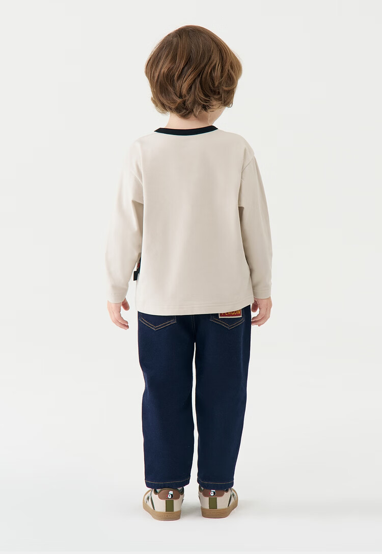 Ma Latin children's T-shirt 2025 winter new style boy retro long-sleeved T-shirt beige 130