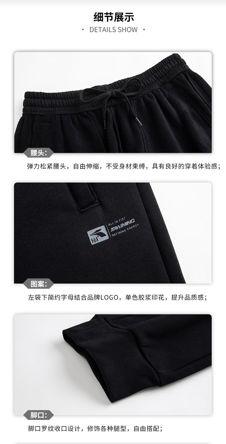 361 Men's sports pants for autumn and winter new style plus velvet warm knitted trousers for men loose cuffed casual sports pants original color gray 3XL 190/92A recommended 180-200Jin Jin equals 0.5 kg