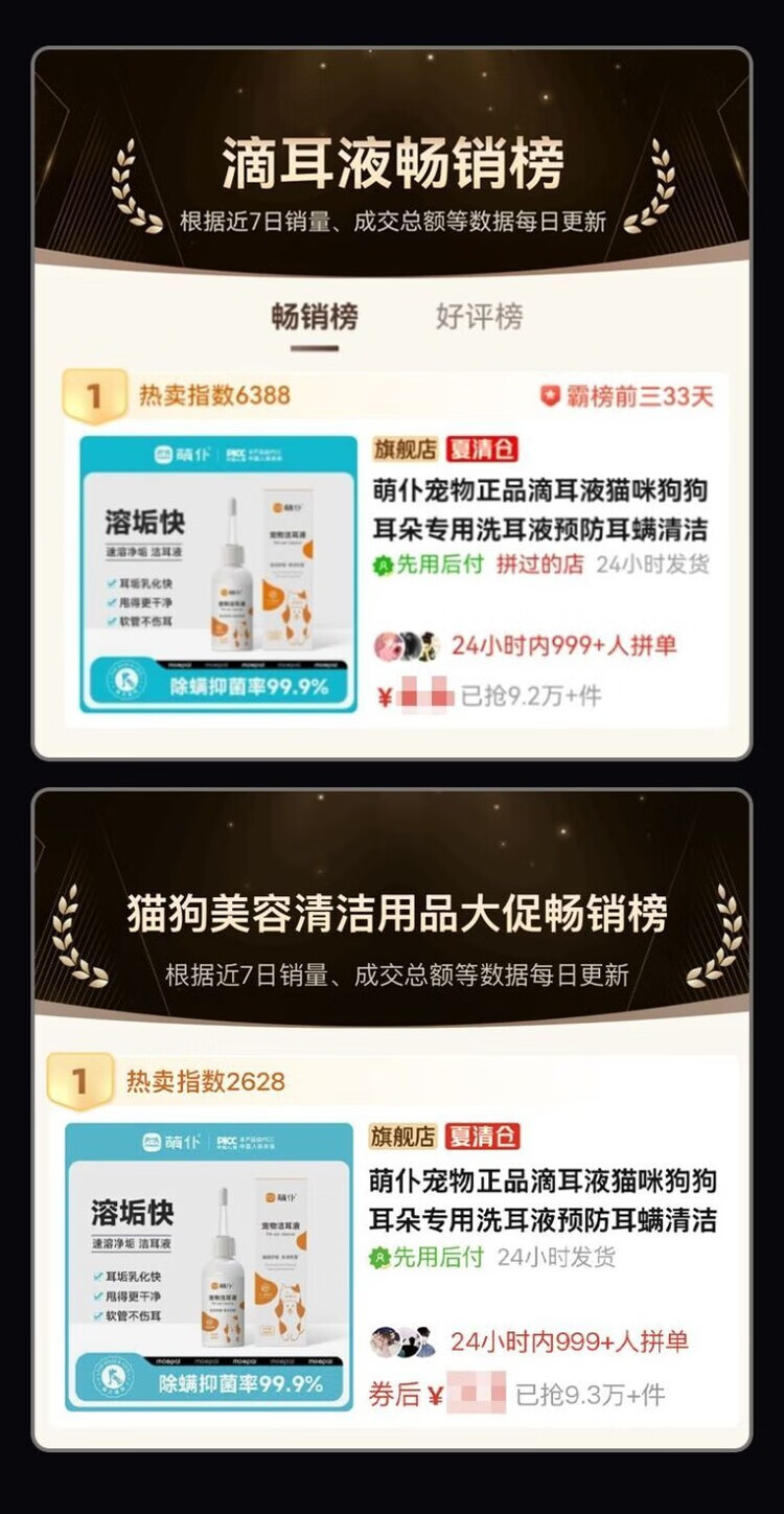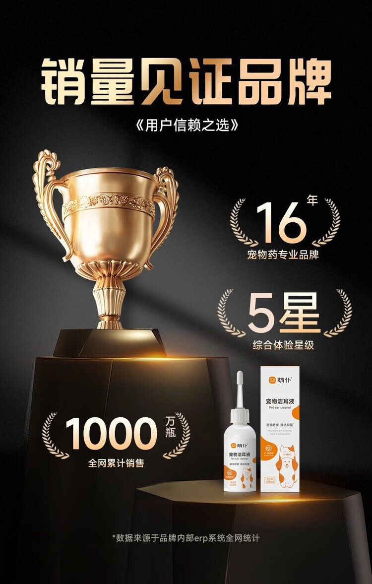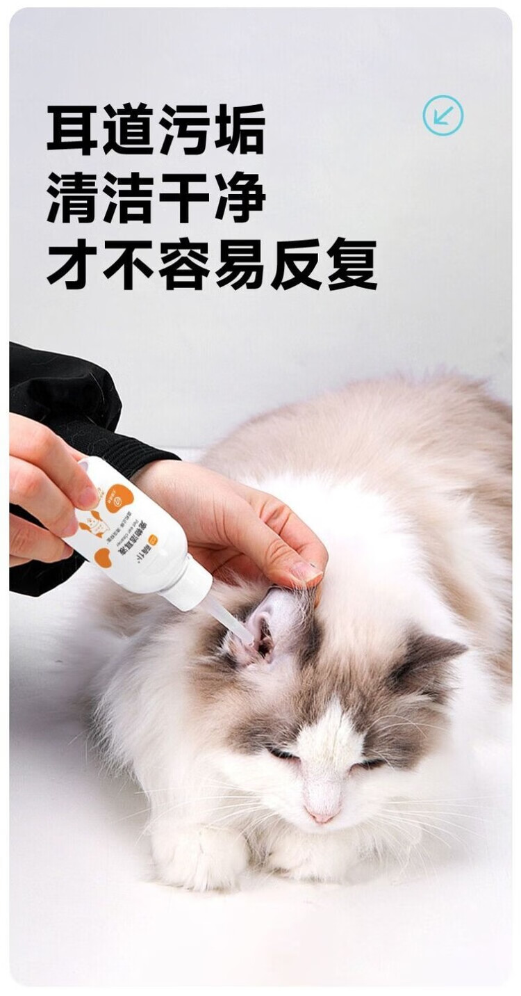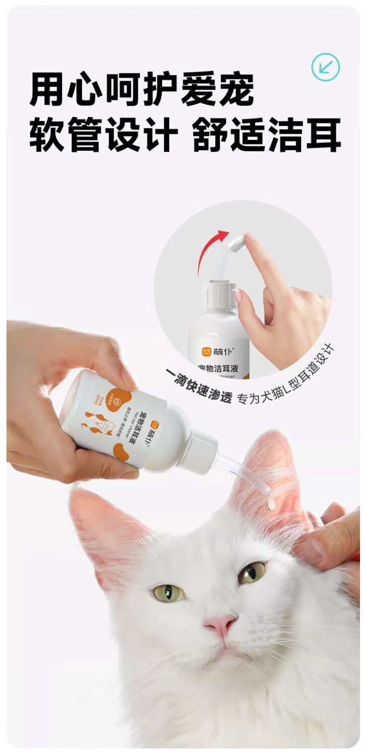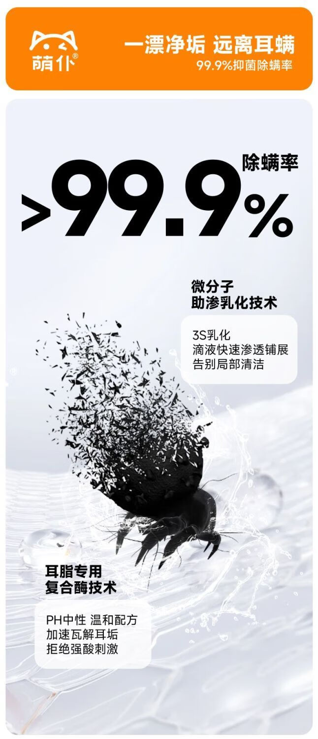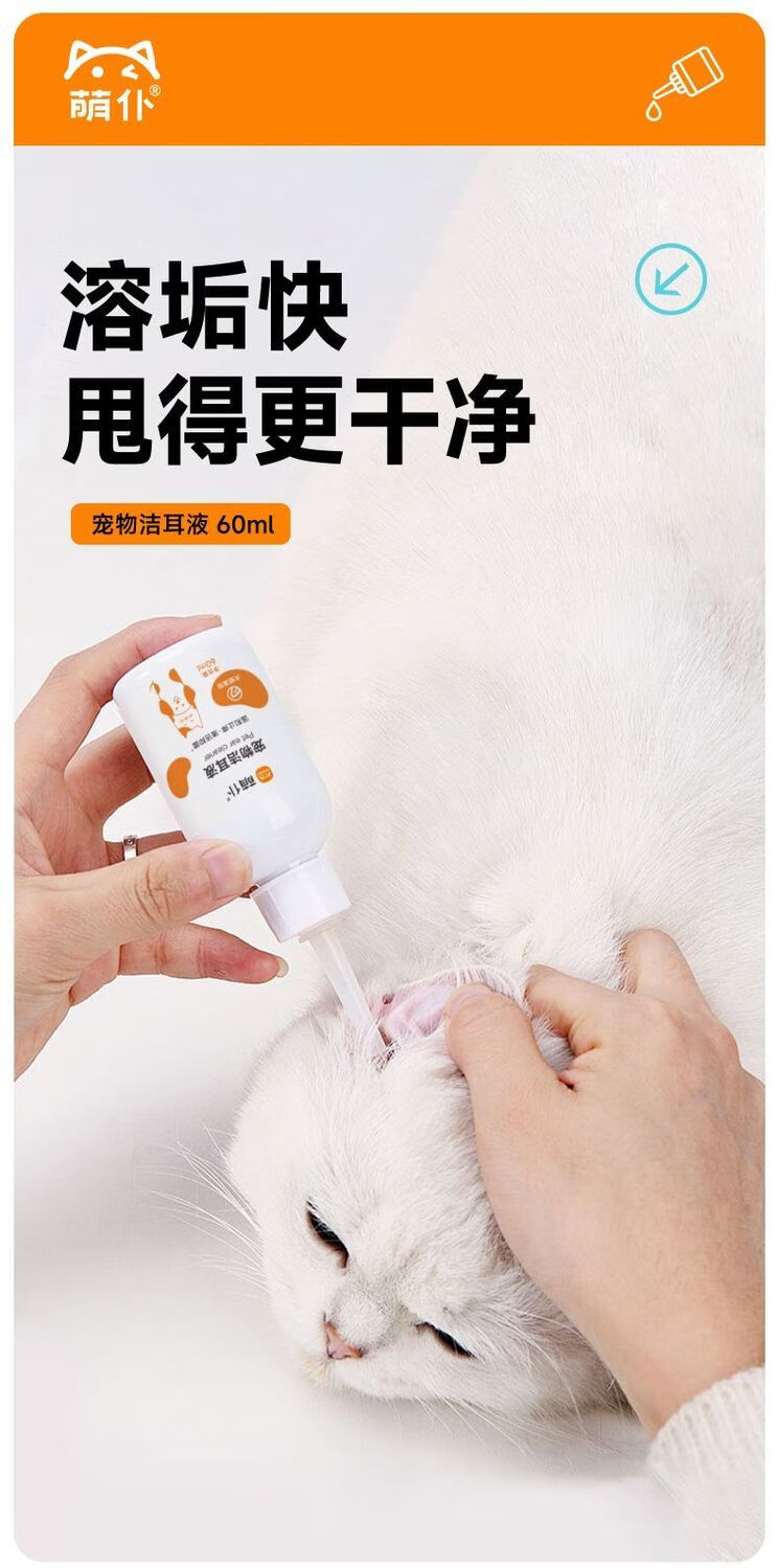 Mengpu Pets genuine ear drops, special ear cleaning solution for cats and dogs ears, prevents ear mites, cleans and cares for ears, removes mites + antibacterial, official and authentic, same style as the hospital, daily eye and ear care set, 1 bottle of ear cleaning solution + 1 can of eye and ear wipes
