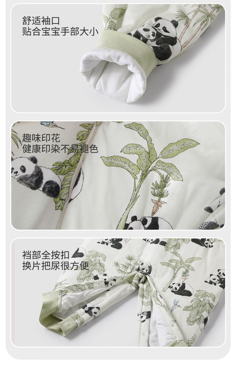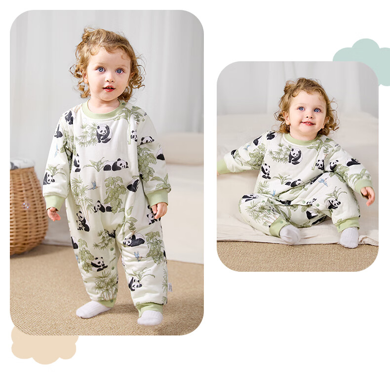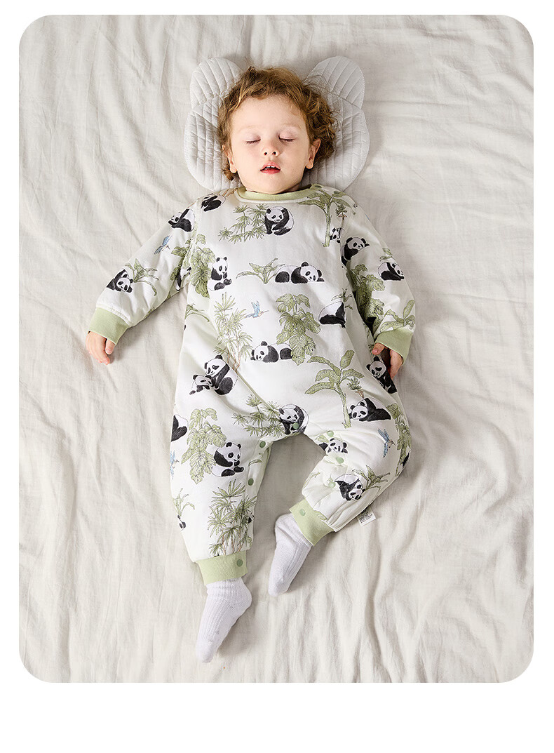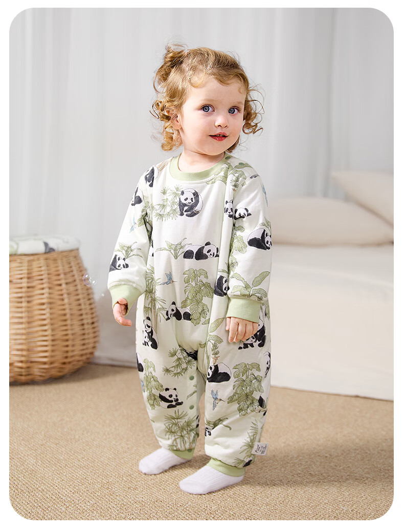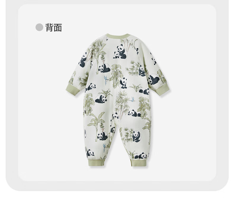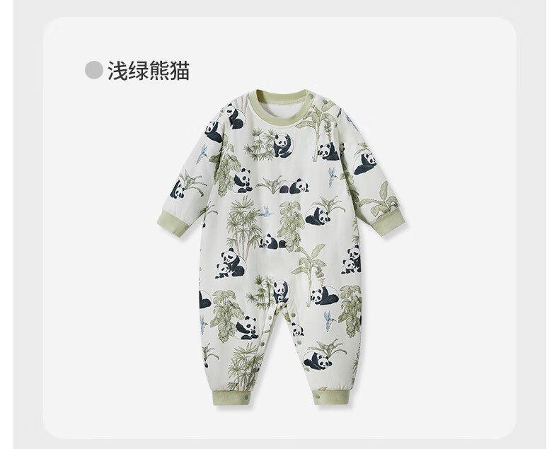 Cotton soft children's one-piece pajamas, winter baby warm clothespins, cotton boys' home clothes, autumn and winter sleeping bags, girls' jumpsuits, light green panda 60g thin cotton 80 36cm