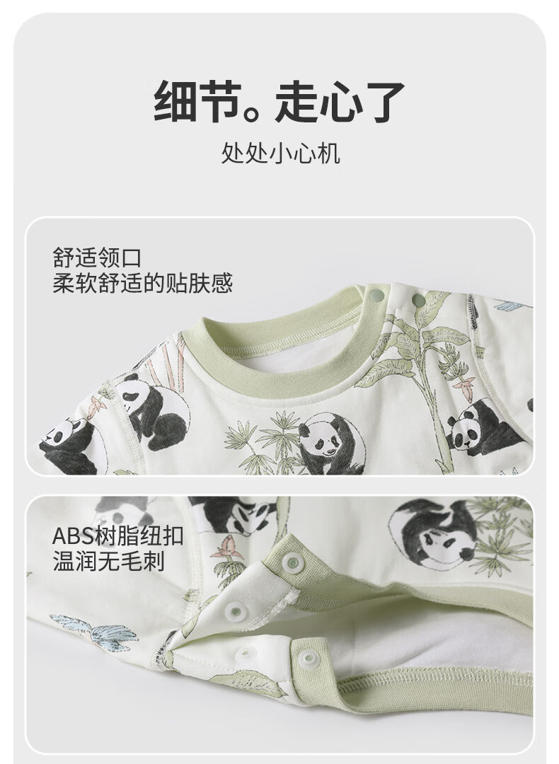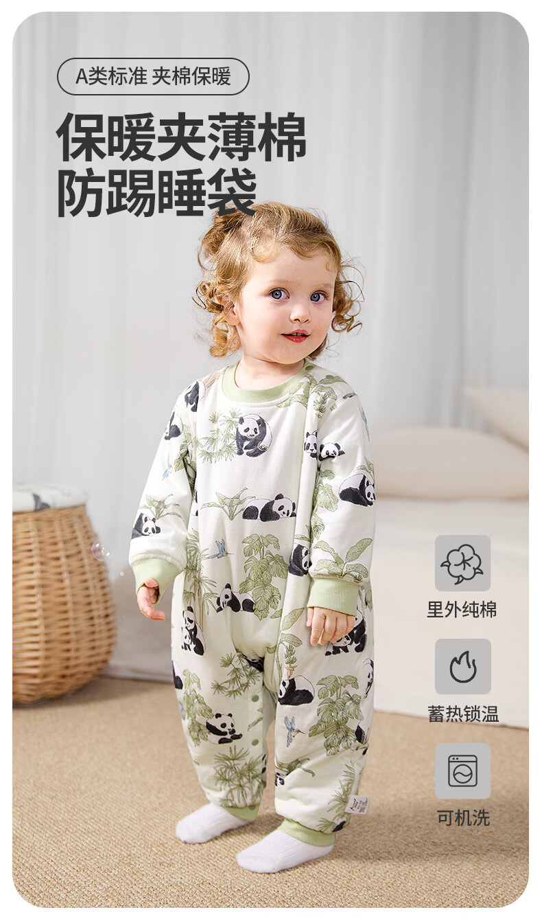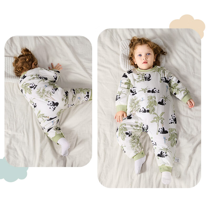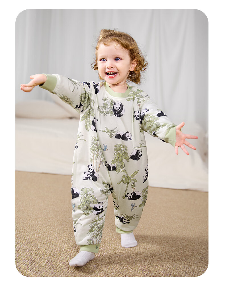 Cotton soft children's one-piece pajamas, winter baby warm clothespins, cotton boys' home clothes, autumn and winter sleeping bags, girls' jumpsuits, light green panda 60g thin cotton 80 36cm