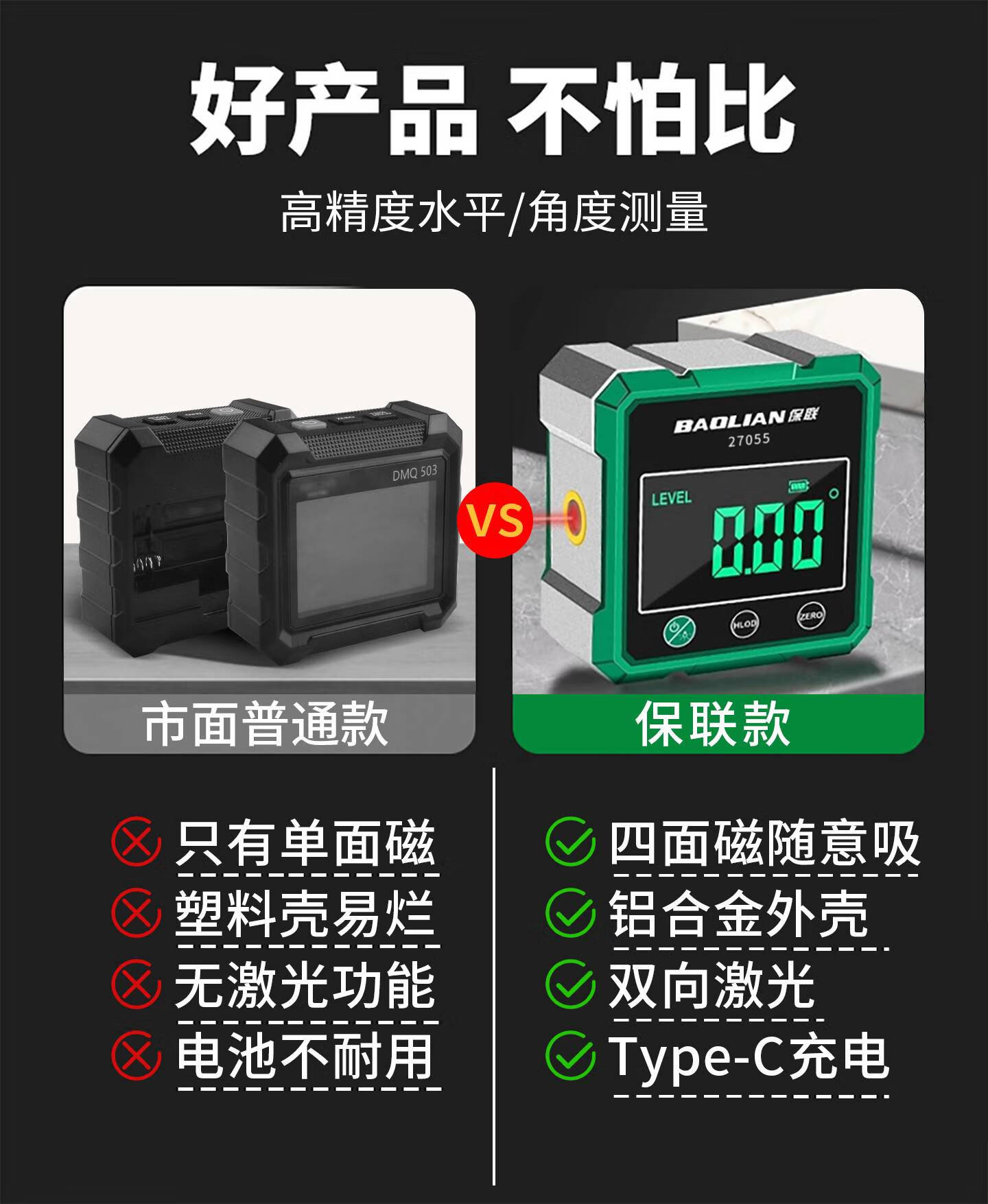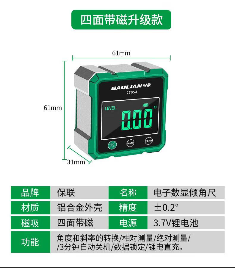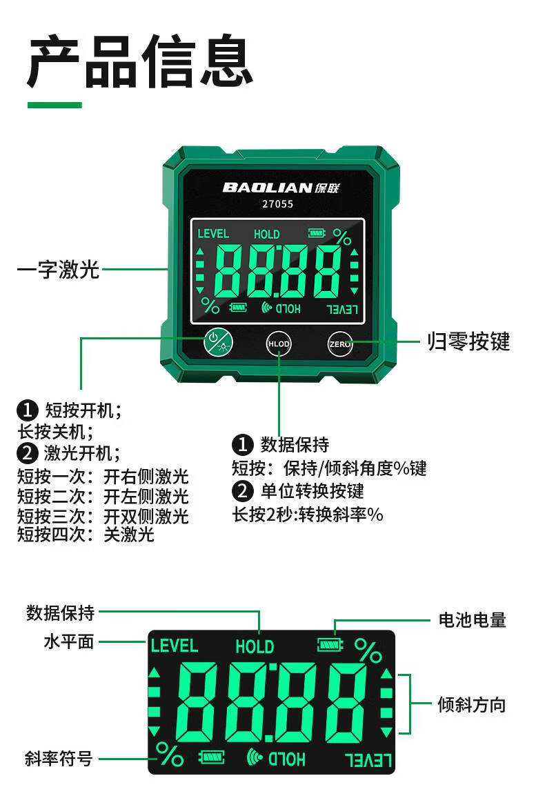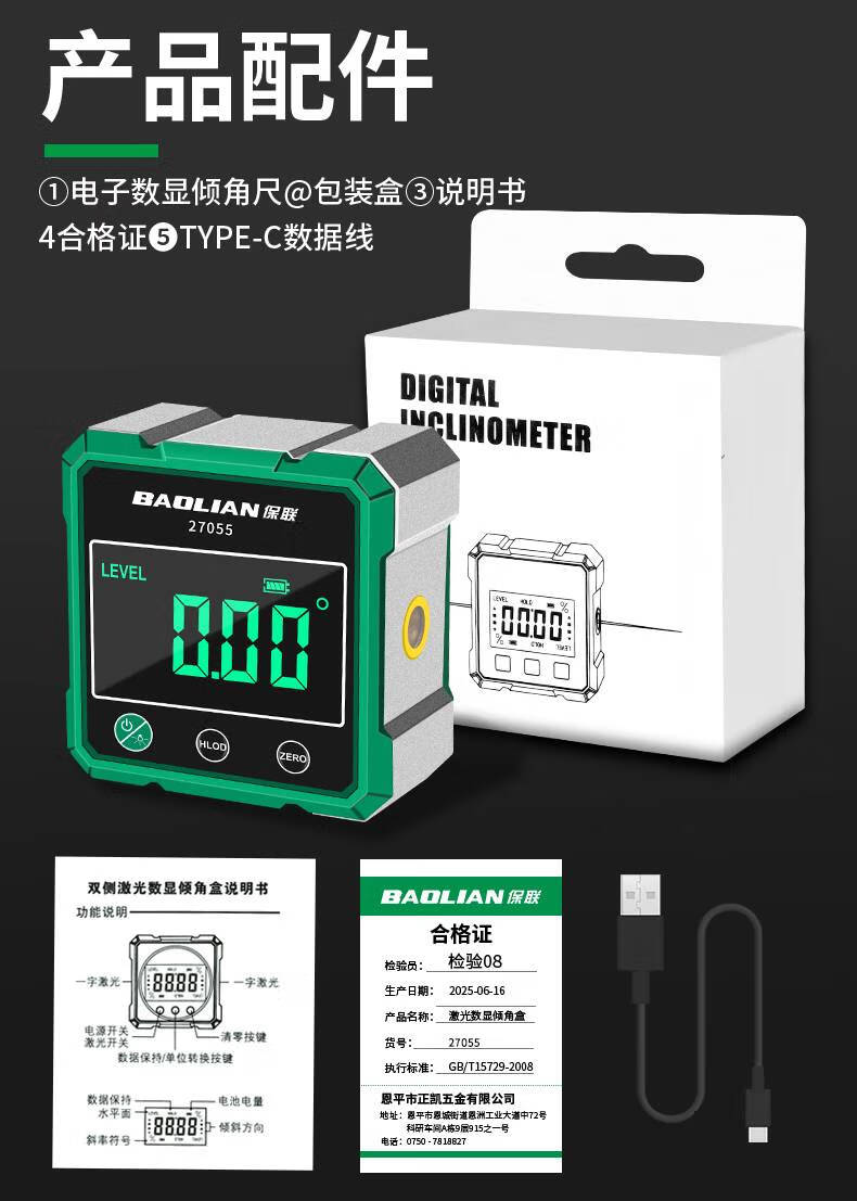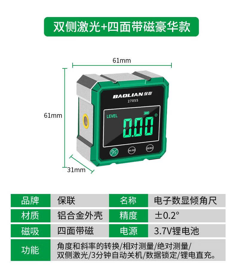 He Jiagong digital display laser level laser level ruler inclinometer measuring tool slope slope angle ruler aluminum alloy digital display strong magnetic/600MM