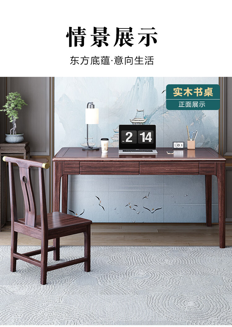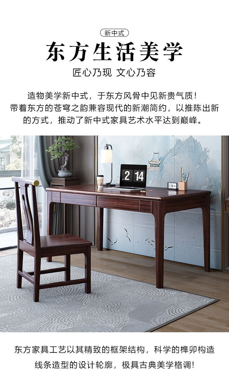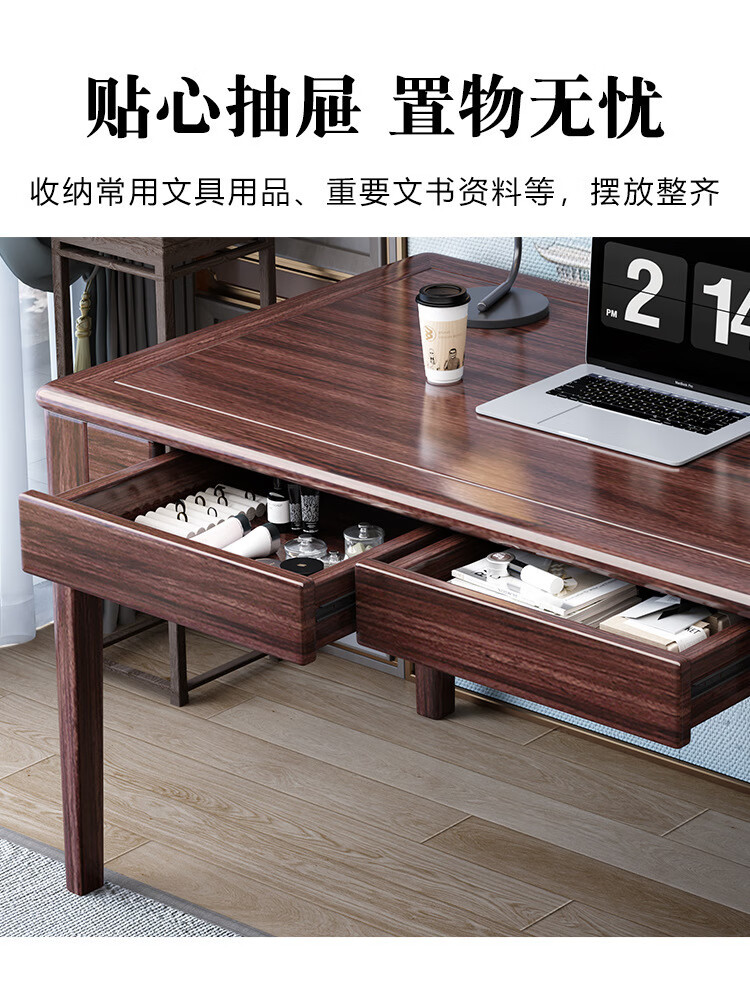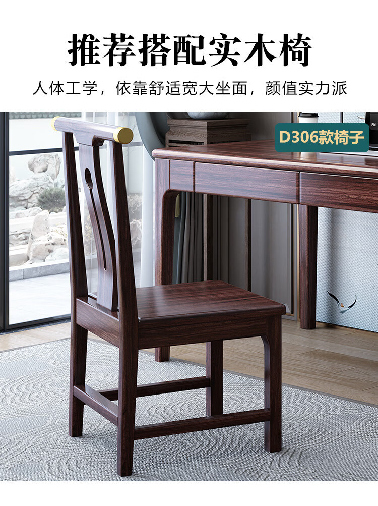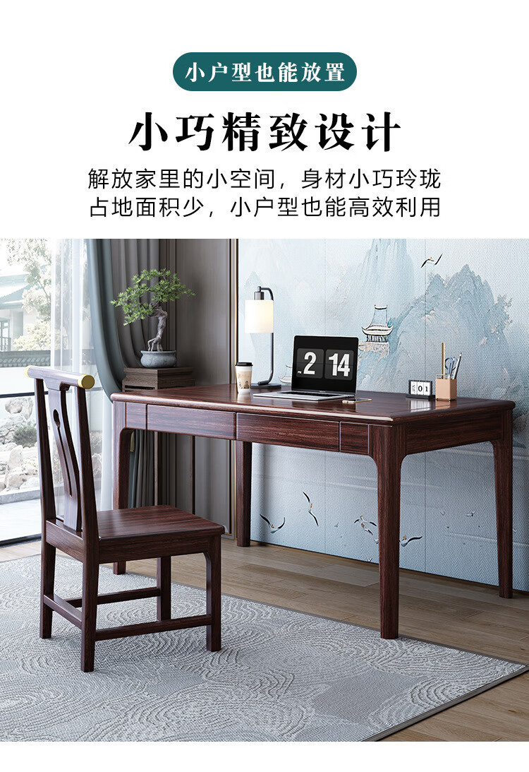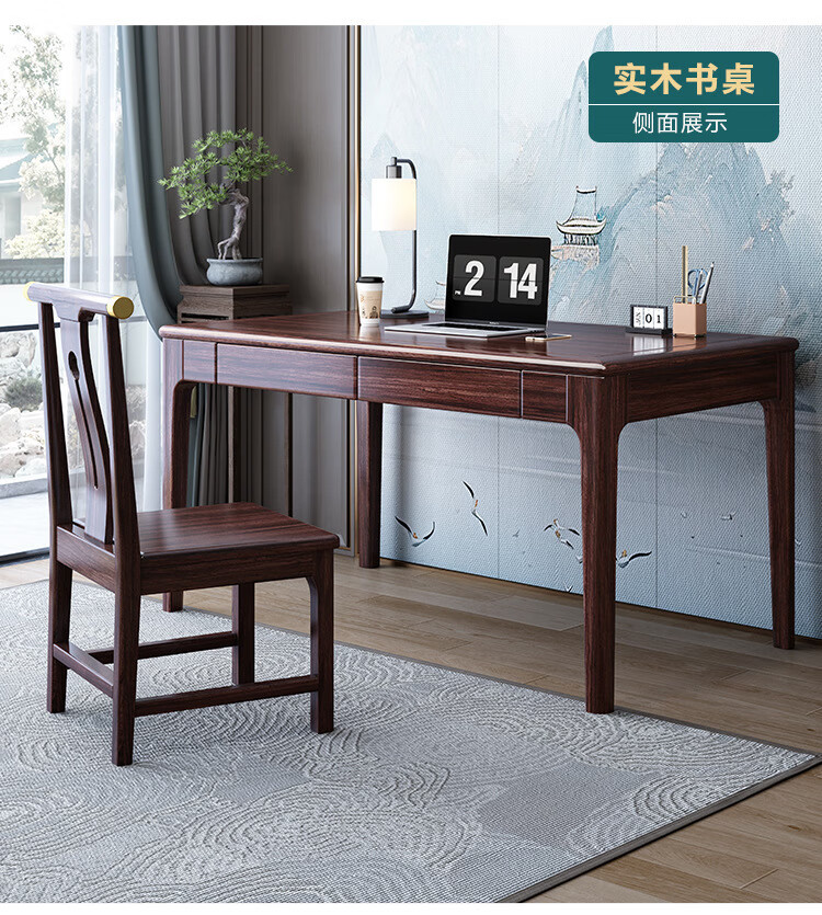 Solid wood office home combination coffee table and tea set, automatic integrated tea making table, lattice wood kung fu tea table and chairs, ebony wood solid wood desk + solid wood chair 140x56x75cm