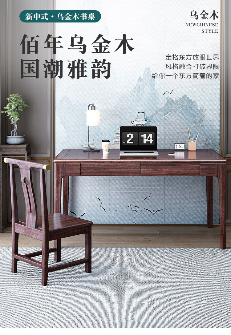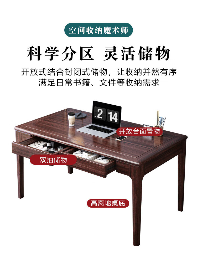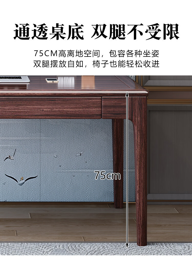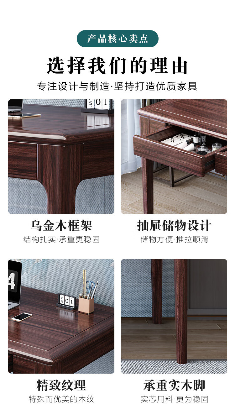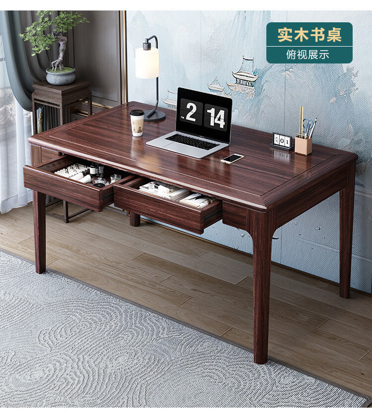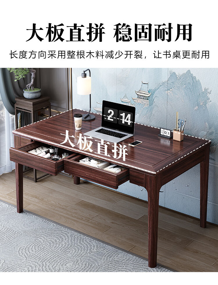 Solid wood office home combination coffee table and tea set, automatic integrated tea making table, lattice wood kung fu tea table and chairs, ebony wood solid wood desk + solid wood chair 140x56x75cm