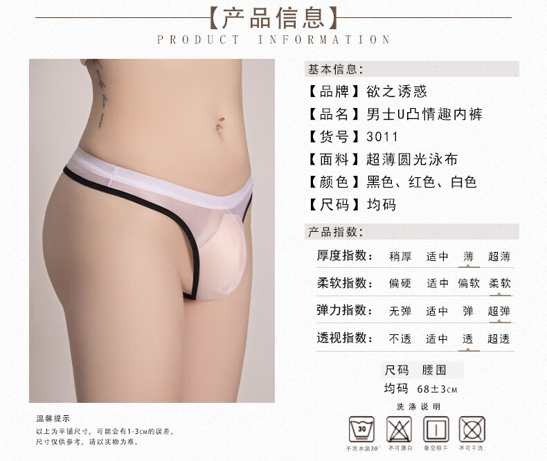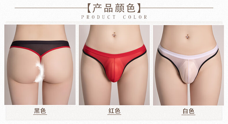 Sexy underwear men's sexy breathable underwear thong low waist temptation elastic transparent inner black one size