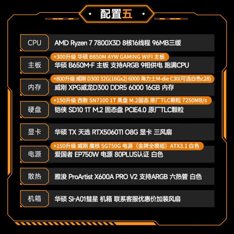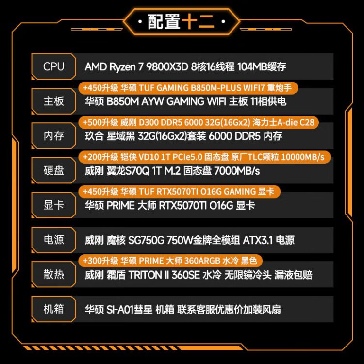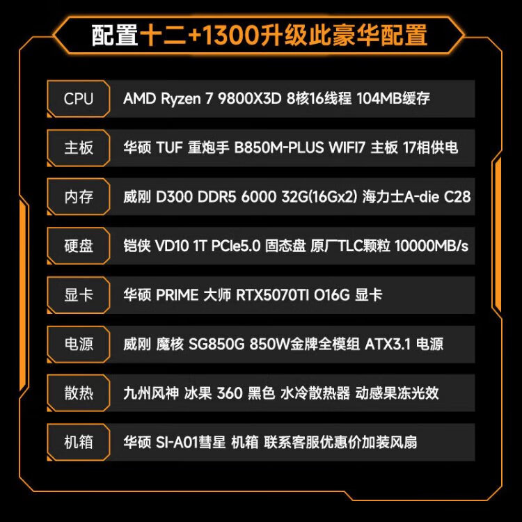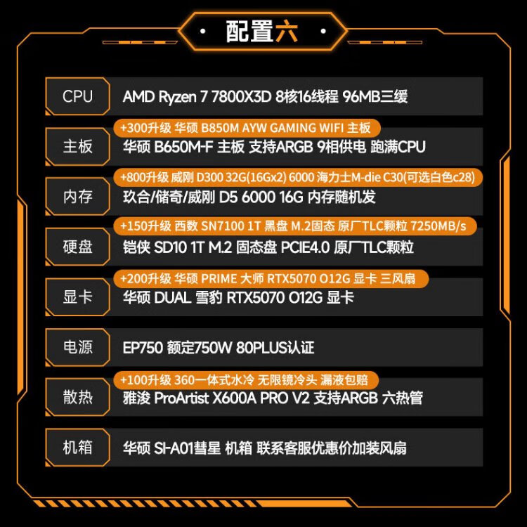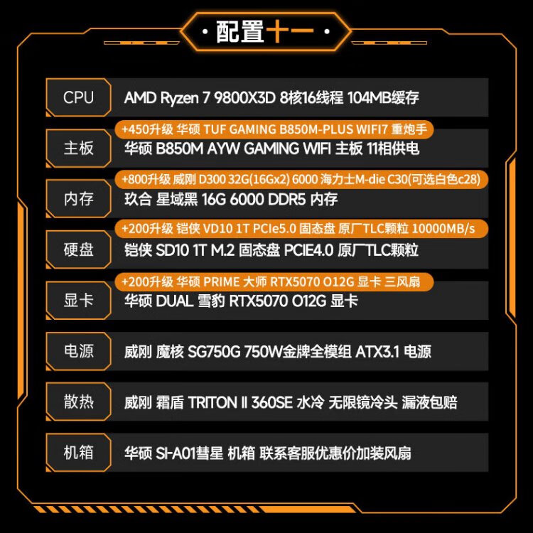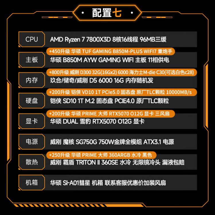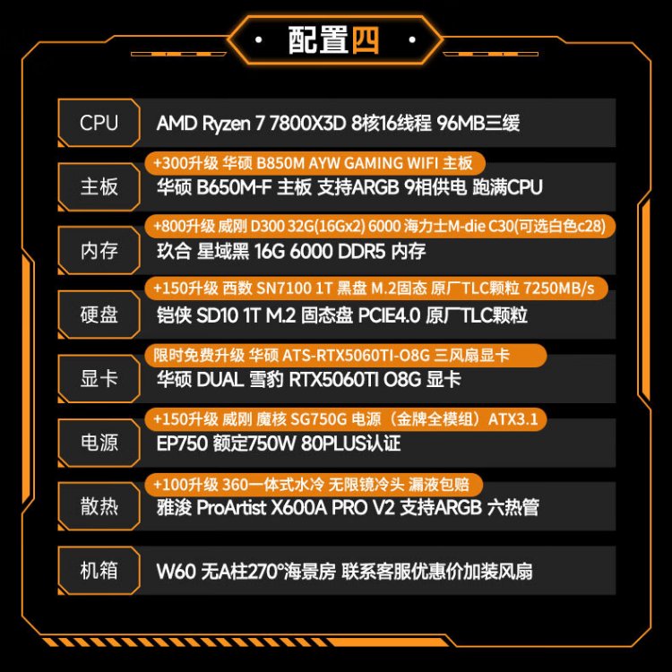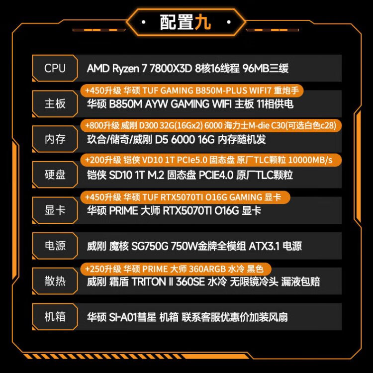 ASUS TUF AMD 7800X3D/9800X3D/5060TI/5070TI/5080 ROG Family Bucket Official Subsidy Assembly Computer Game AI Host DIY Complete Machine DIY Host Optional Hardware Customization Upgrade Modification 1999 (Single shot will not be issued)