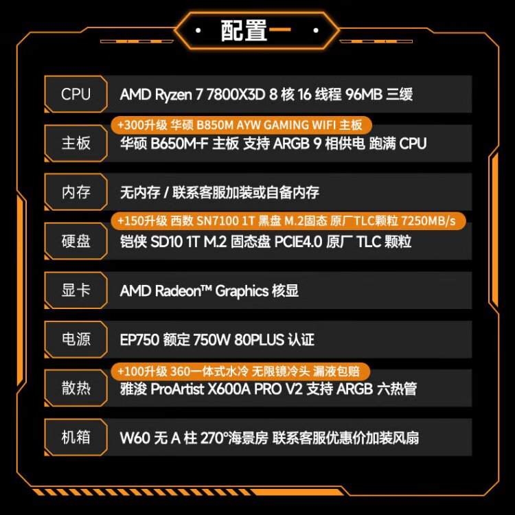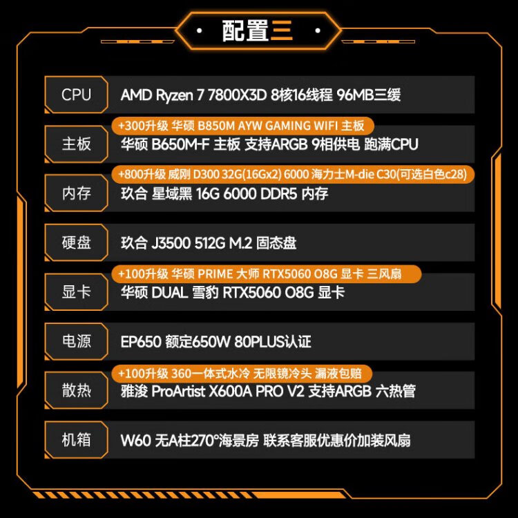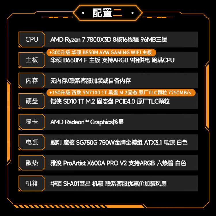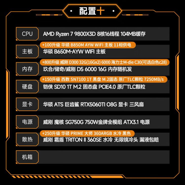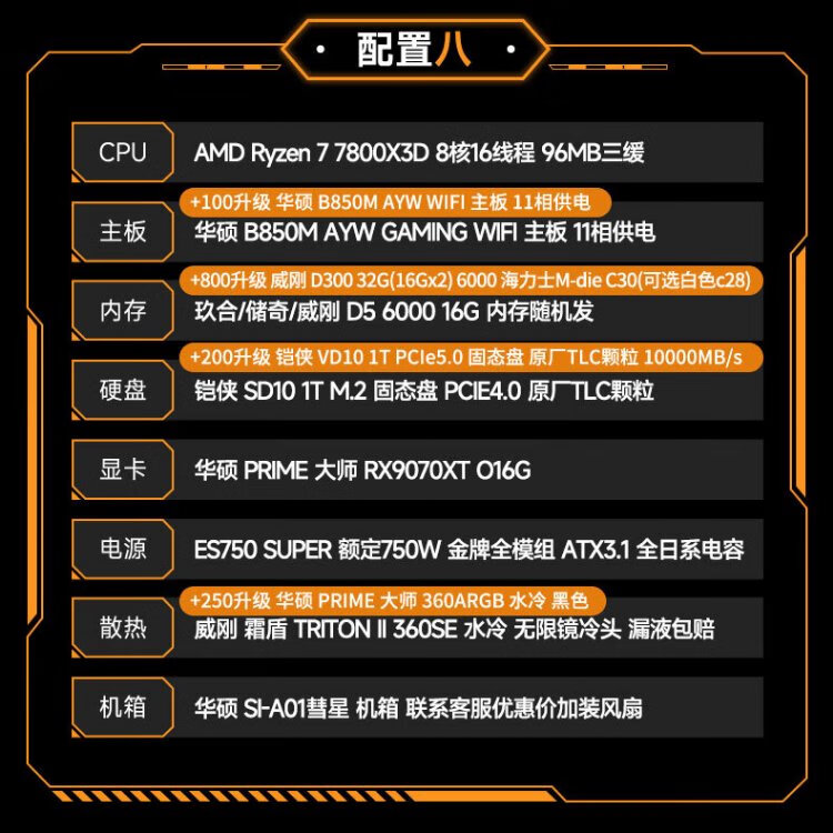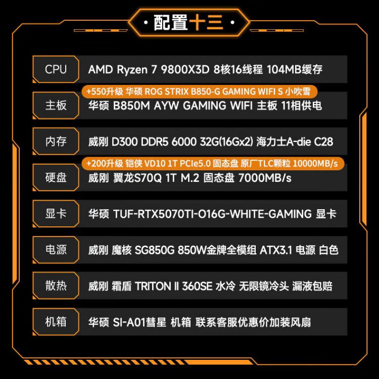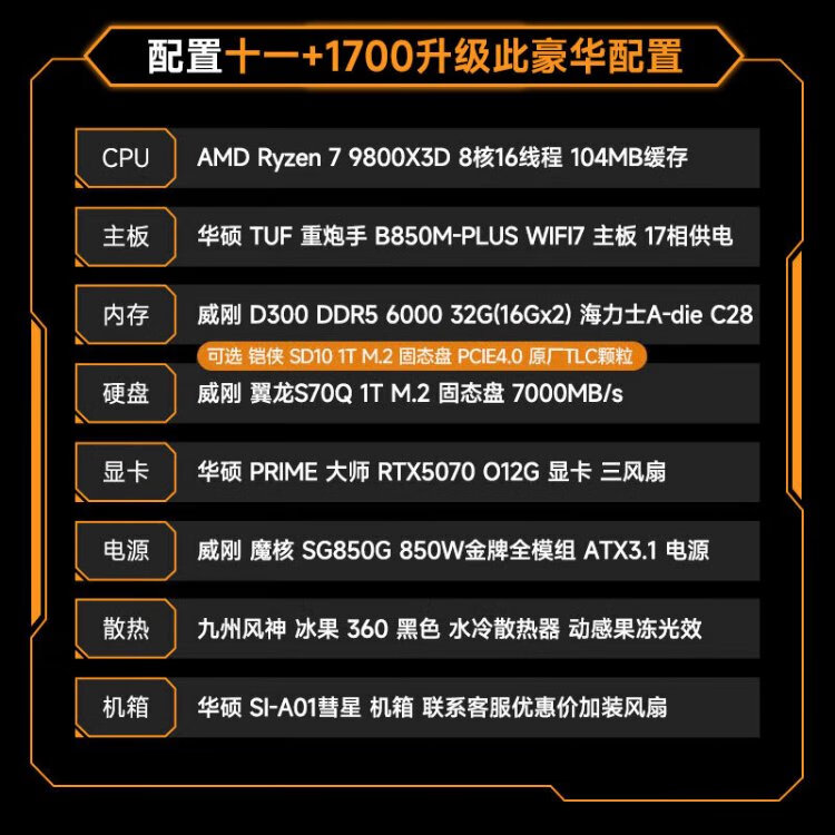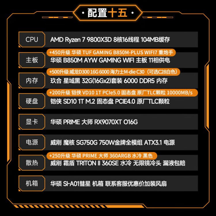 ASUS TUF AMD 7800X3D/9800X3D/5060TI/5070TI/5080 ROG Family Bucket Official Subsidy Assembly Computer Game AI Host DIY Complete Machine DIY Host Optional Hardware Customization Upgrade Modification 1999 (Single shot will not be issued)