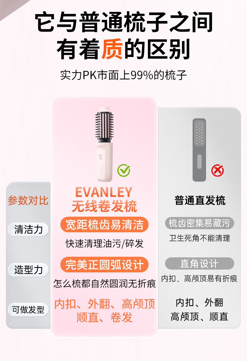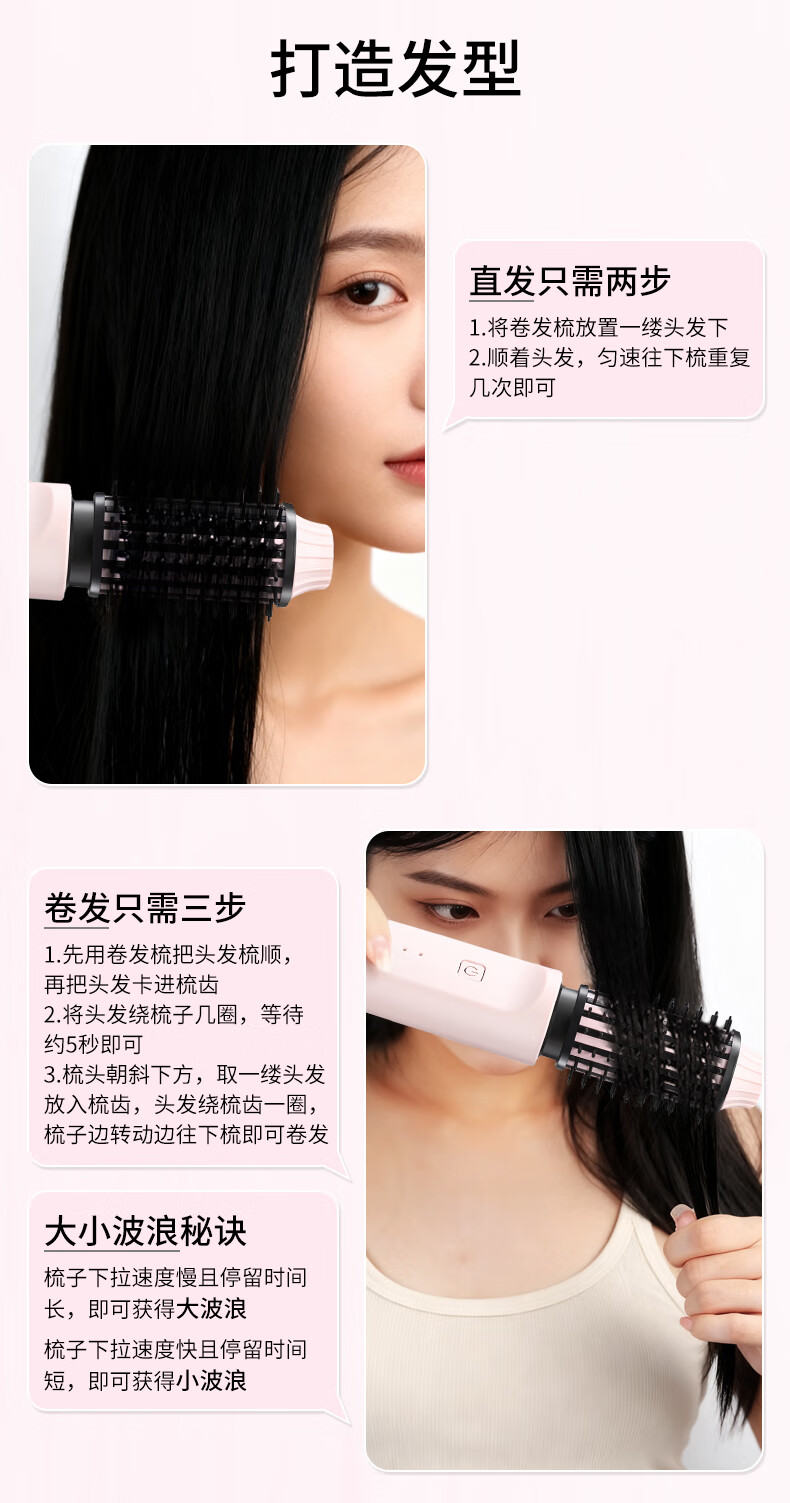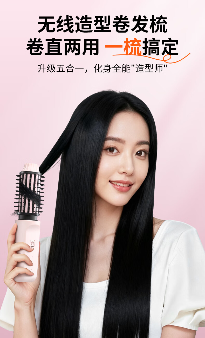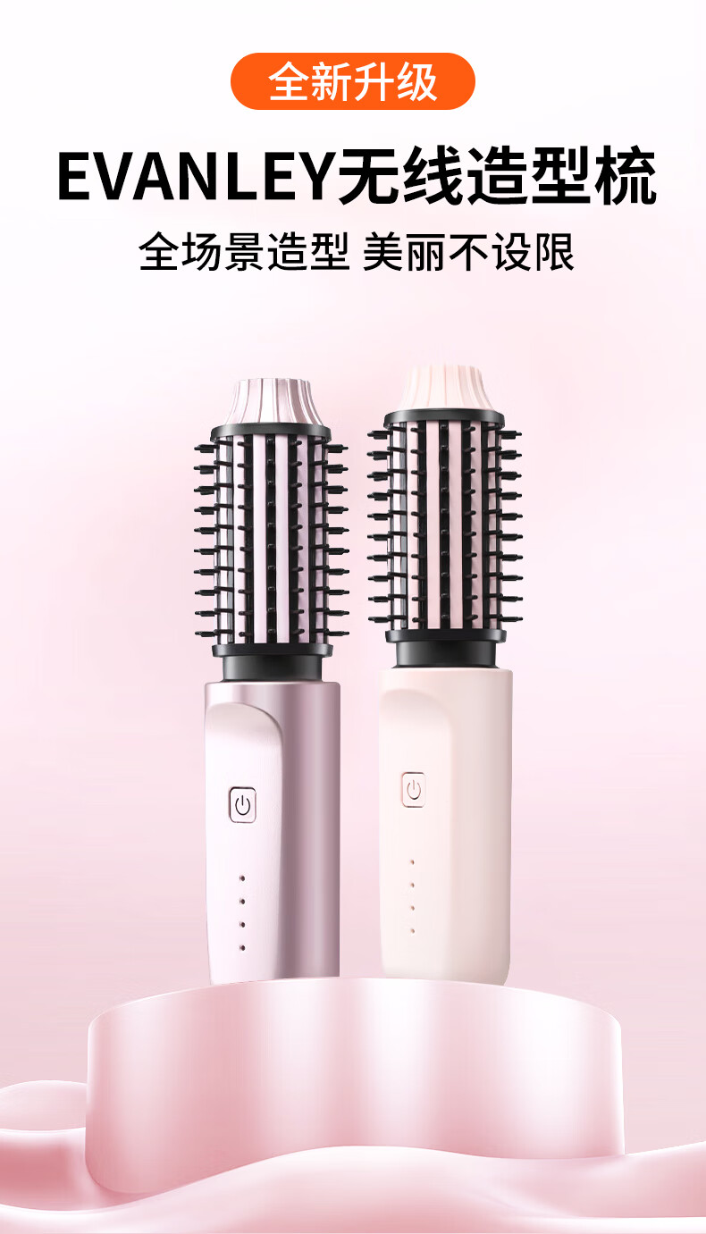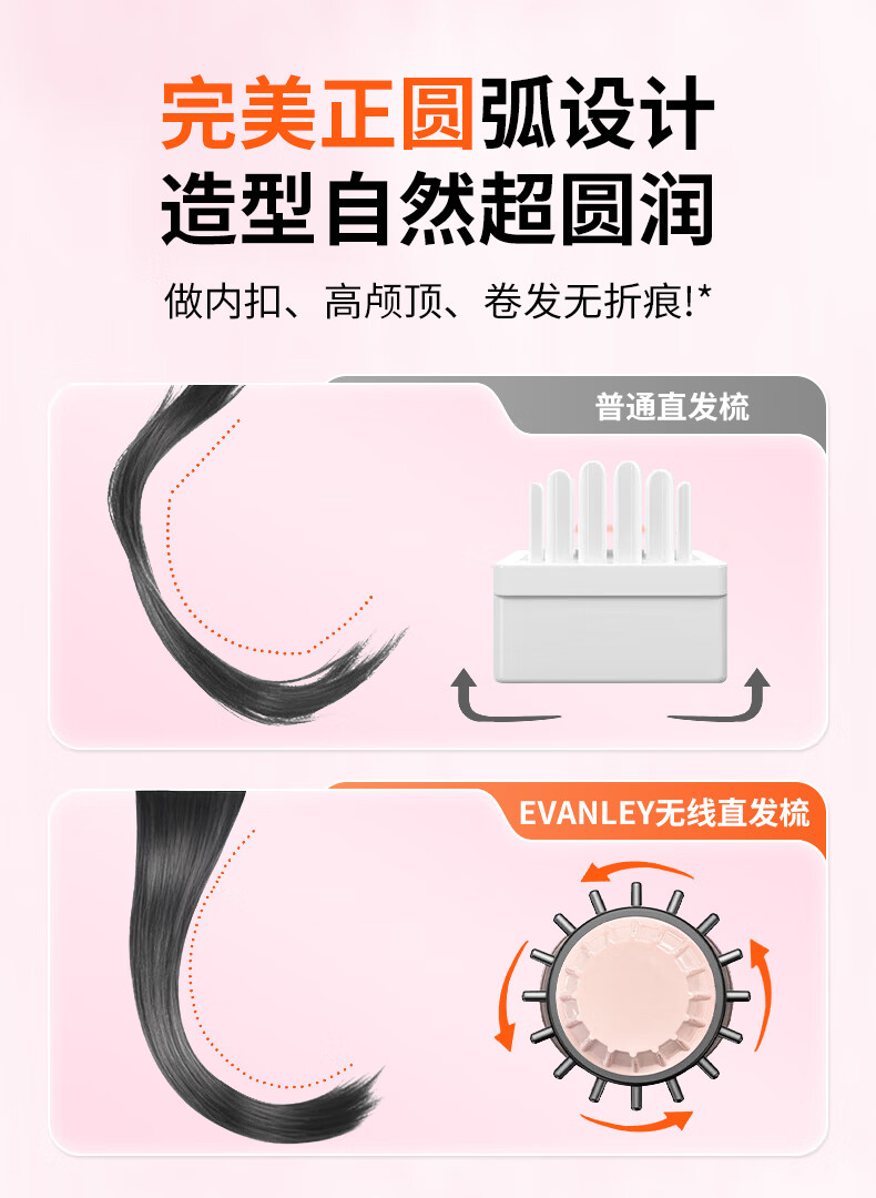 EVANLEY German Curling Comb Electric Cordless Curling Iron Curly Hair Management Magic Straight Hair Comb Short Hair Fluffy High Skull Inward Buckle Negative Ion Bangs Mini Electric Styling Comb for Girlfriend Sakura Pink 52mm Ceramic Hair Care + Billions of Negative Ions
