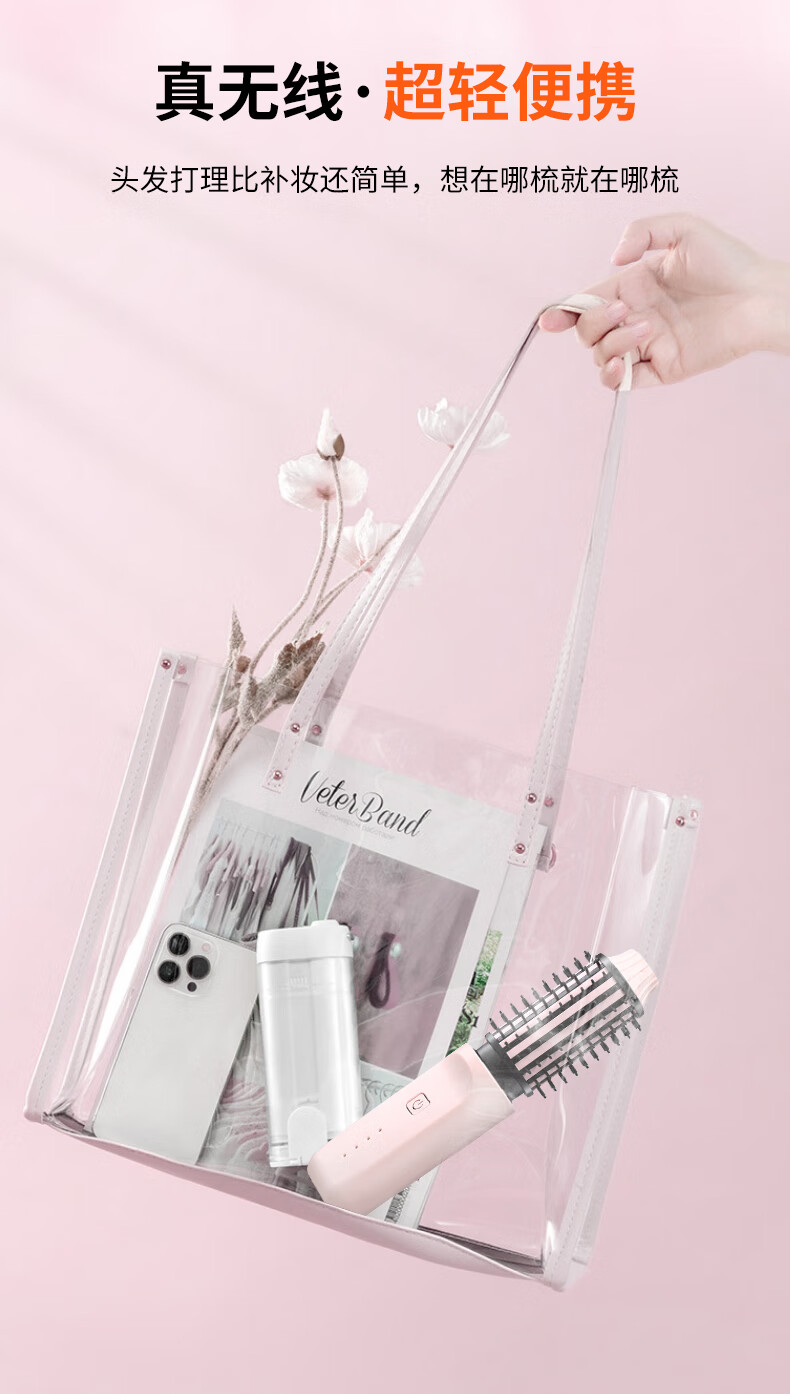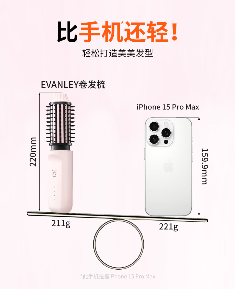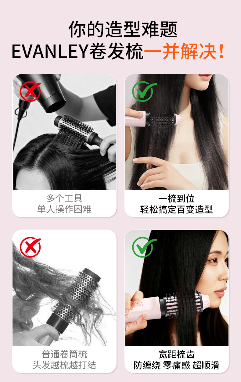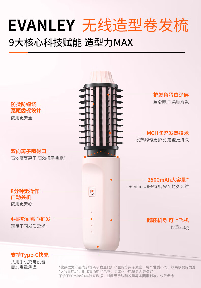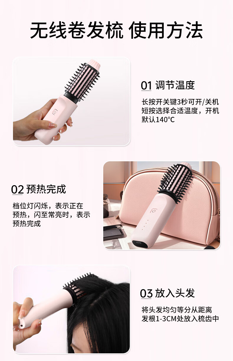 EVANLEY German Curling Comb Electric Cordless Curling Iron Curly Hair Management Magic Straight Hair Comb Short Hair Fluffy High Skull Inward Buckle Negative Ion Bangs Mini Electric Styling Comb for Girlfriend Sakura Pink 52mm Ceramic Hair Care + Billions of Negative Ions