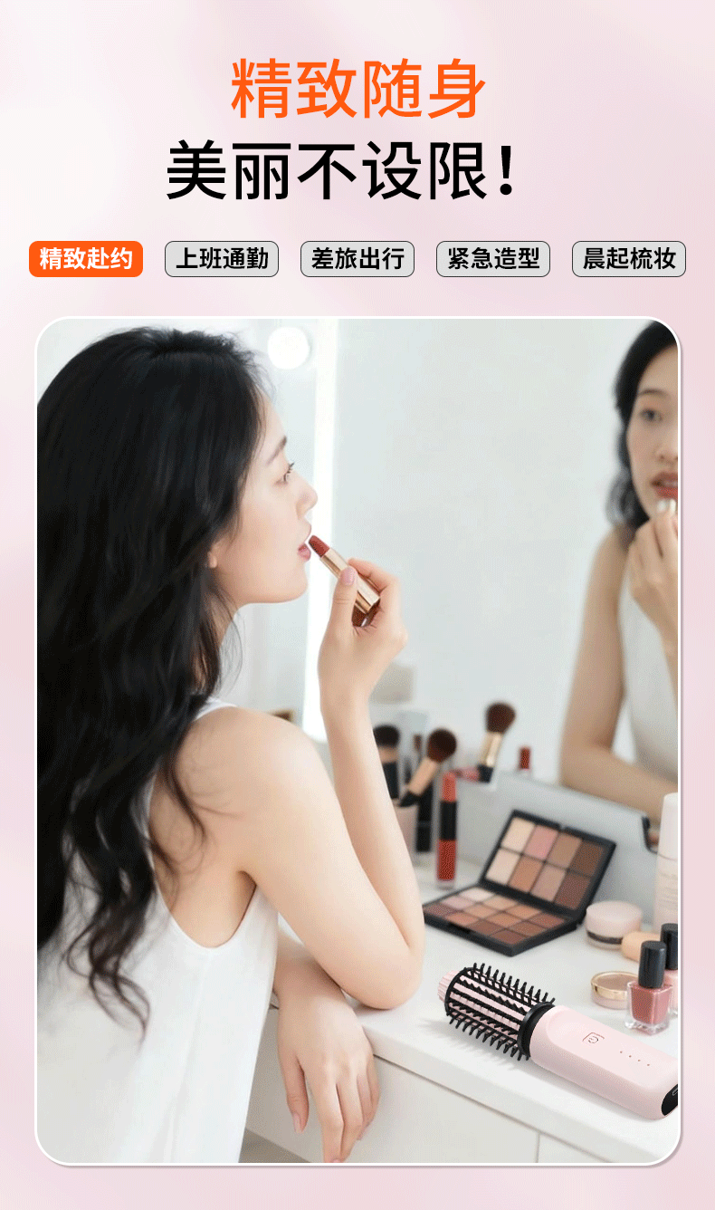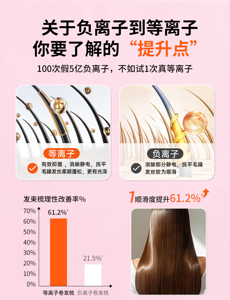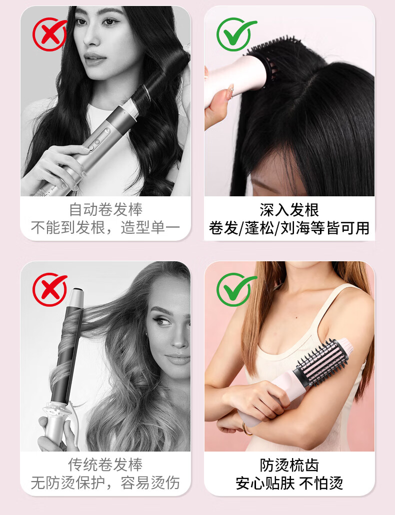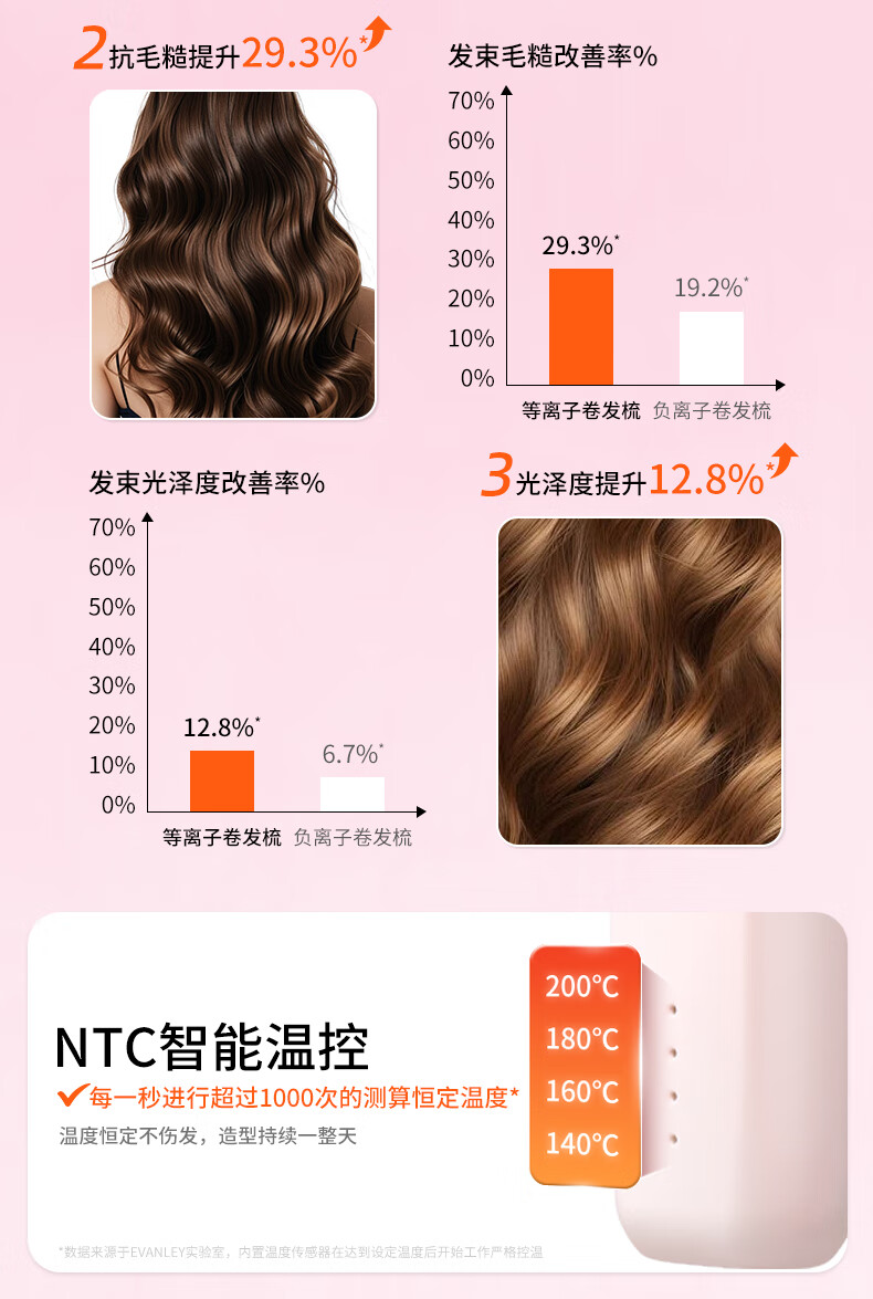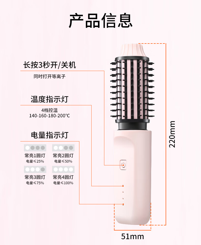 EVANLEY German Curling Comb Electric Cordless Curling Iron Curly Hair Management Magic Straight Hair Comb Short Hair Fluffy High Skull Inward Buckle Negative Ion Bangs Mini Electric Styling Comb for Girlfriend Sakura Pink 52mm Ceramic Hair Care + Billions of Negative Ions