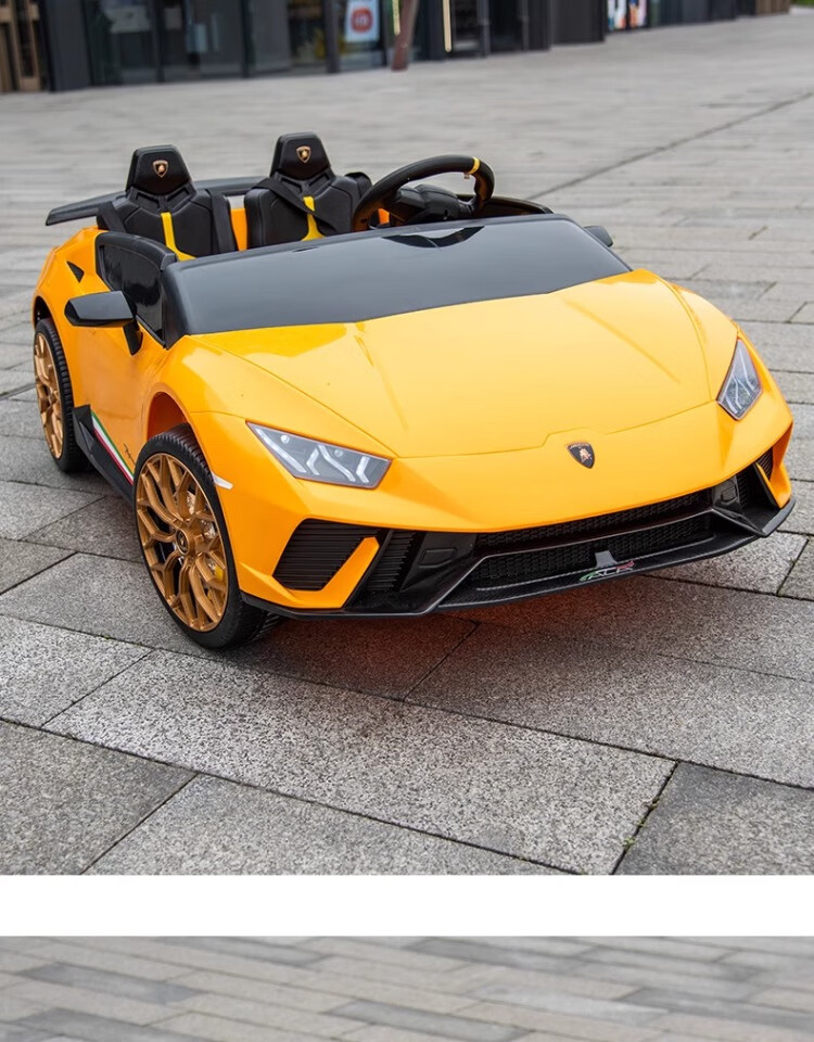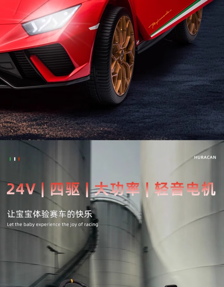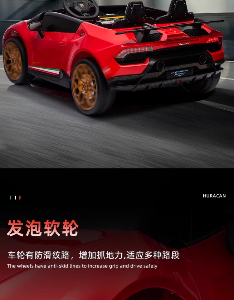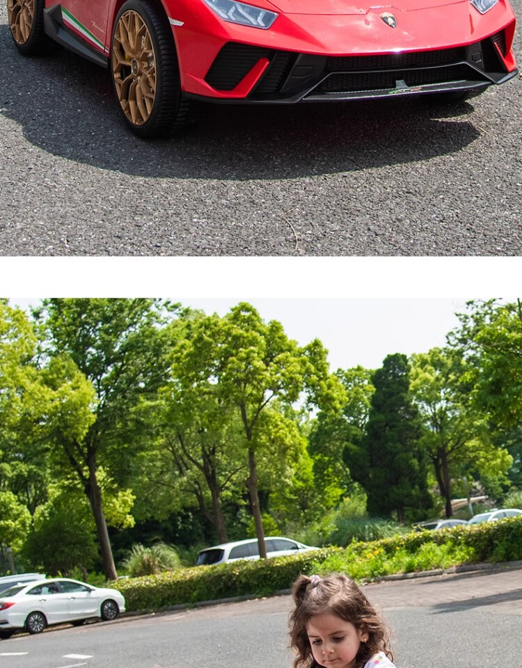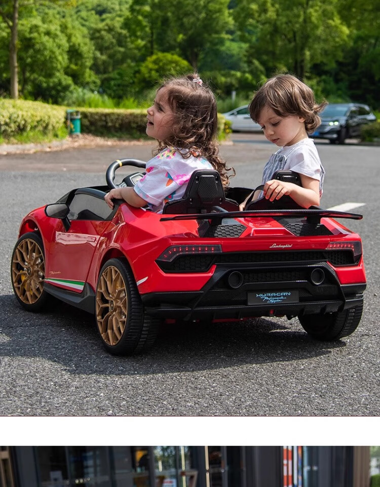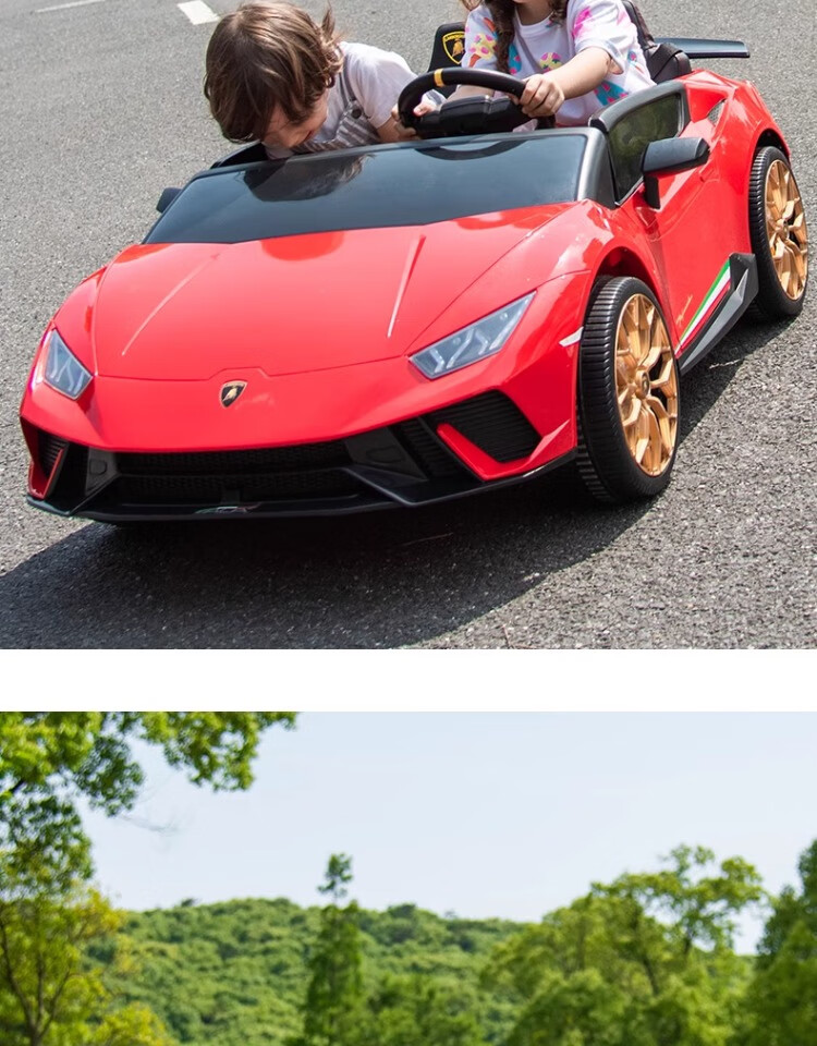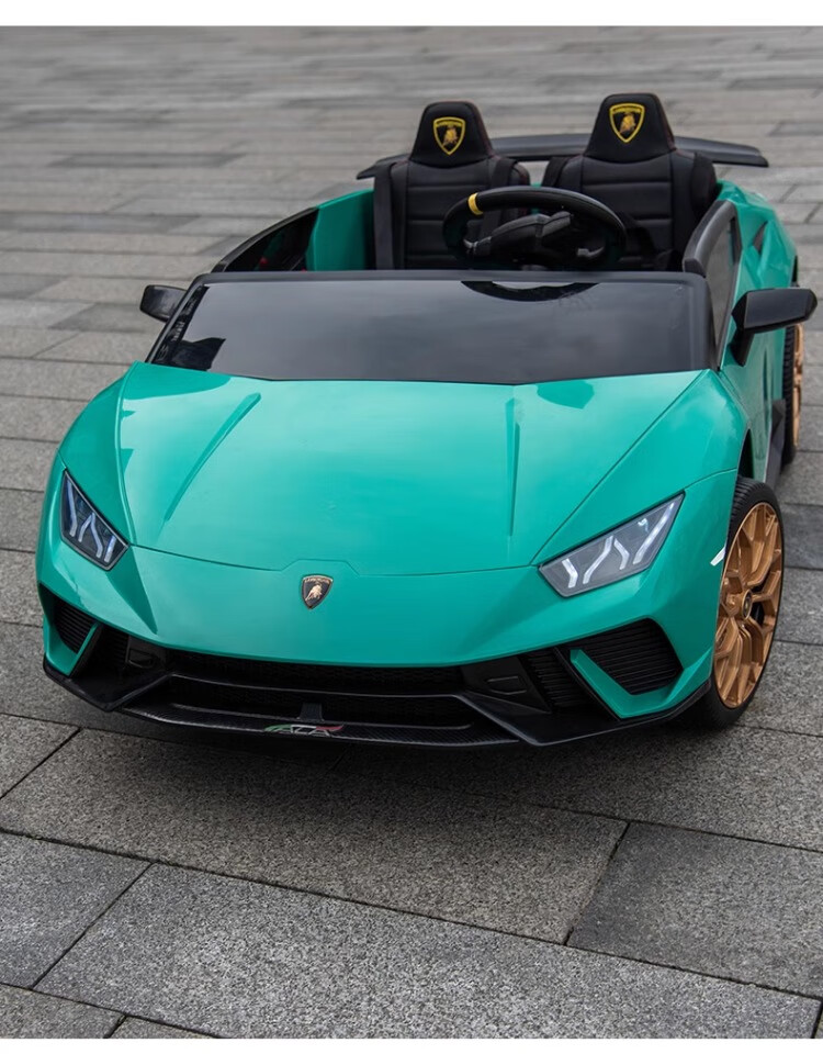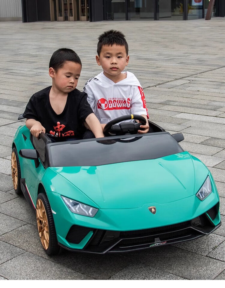Lamborghini parent-child children's electric car four-wheel car remote control toy car can seat children and bring internet celebrity sports car green 24V four-drive + leather seat + foam soft wheels + Bluetooth music