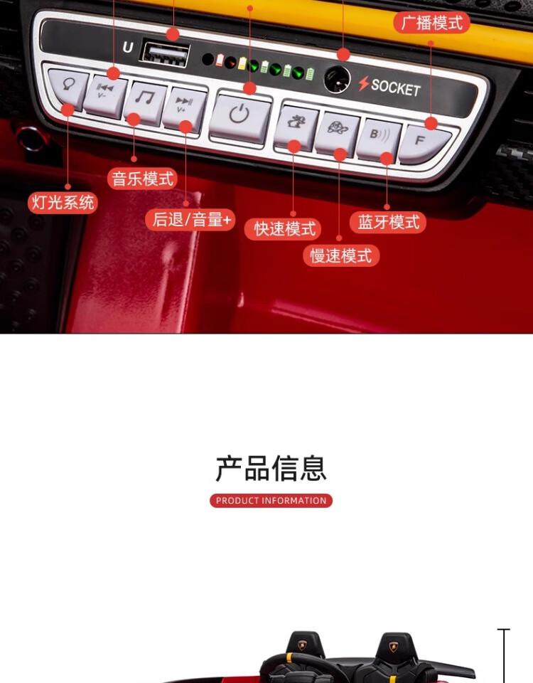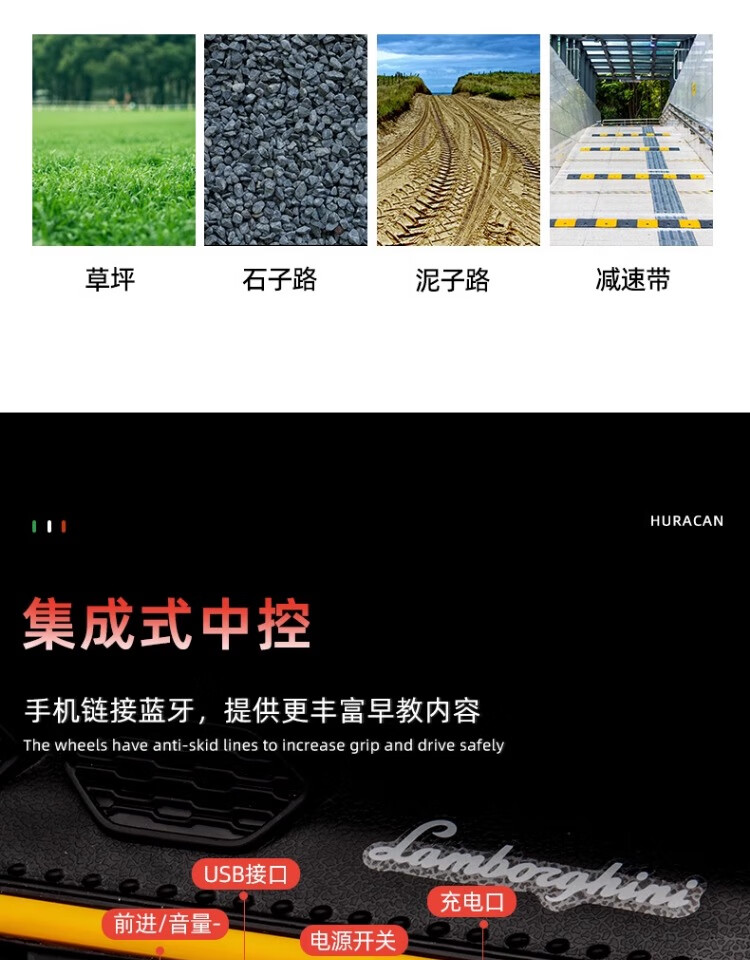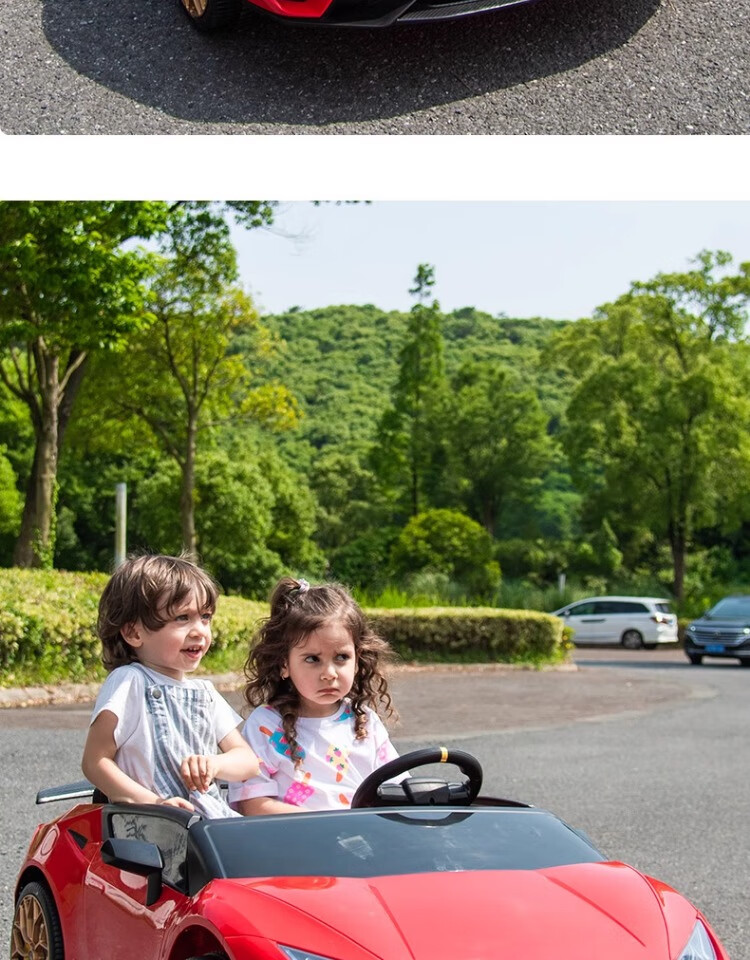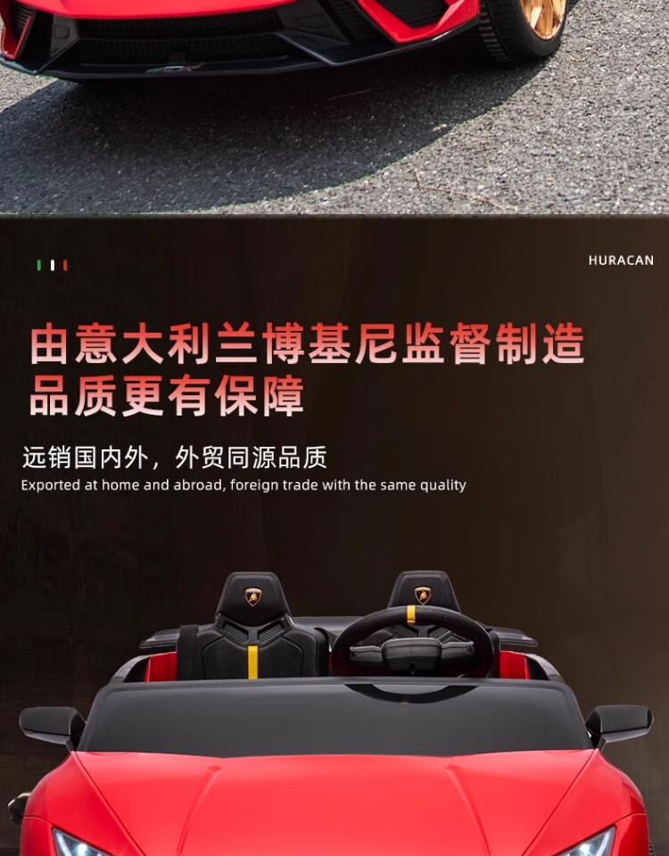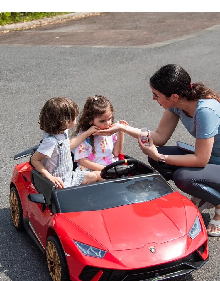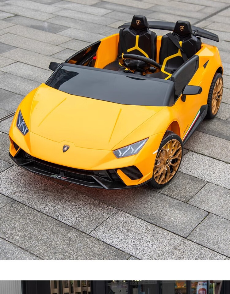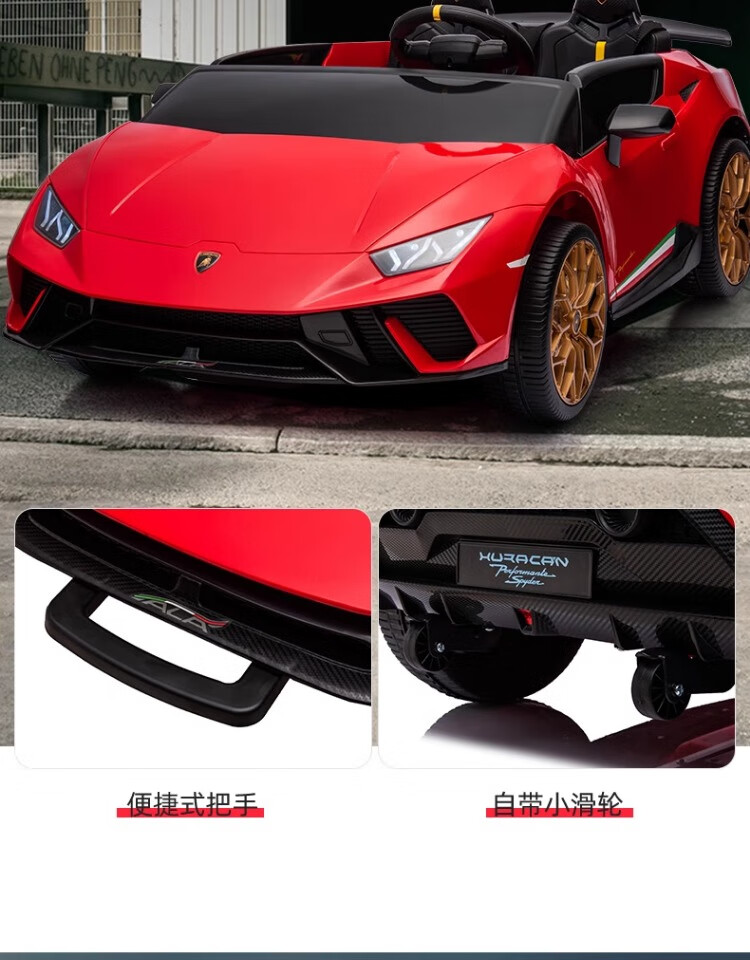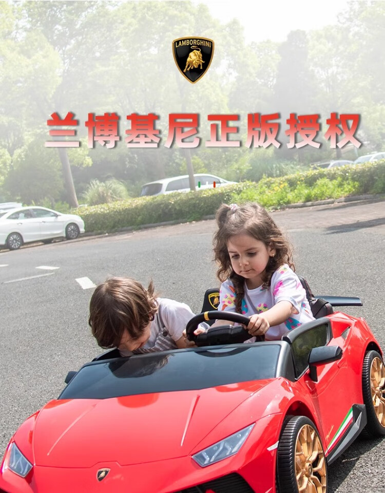 Lamborghini parent-child children's electric car four-wheel car remote control toy car can seat children and bring internet celebrity sports car green 24V four-drive + leather seat + foam soft wheels + Bluetooth music