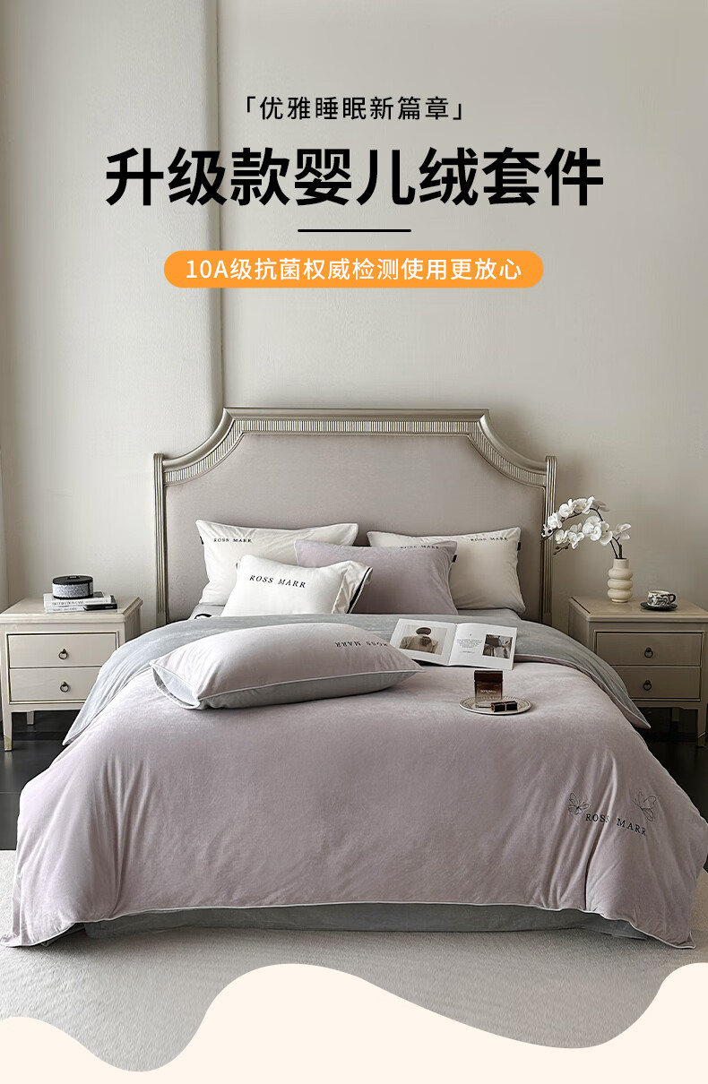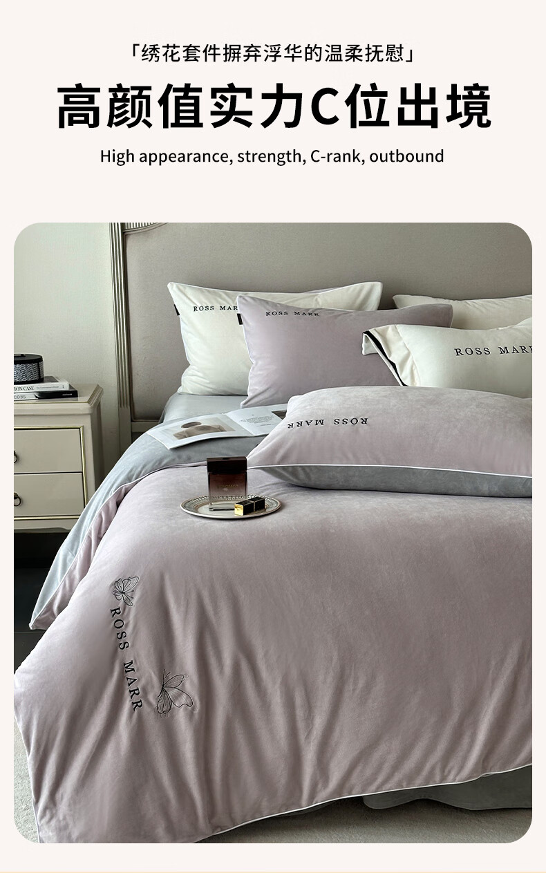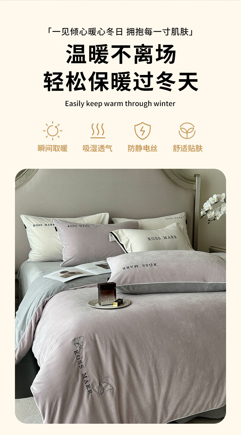 Hengyuanxiang high-end baby velvet warm four-piece set winter new thickened milk velvet sheets and quilt covers bedding category a baby velvet-white gray bed sheet 1.5m (5 feet)