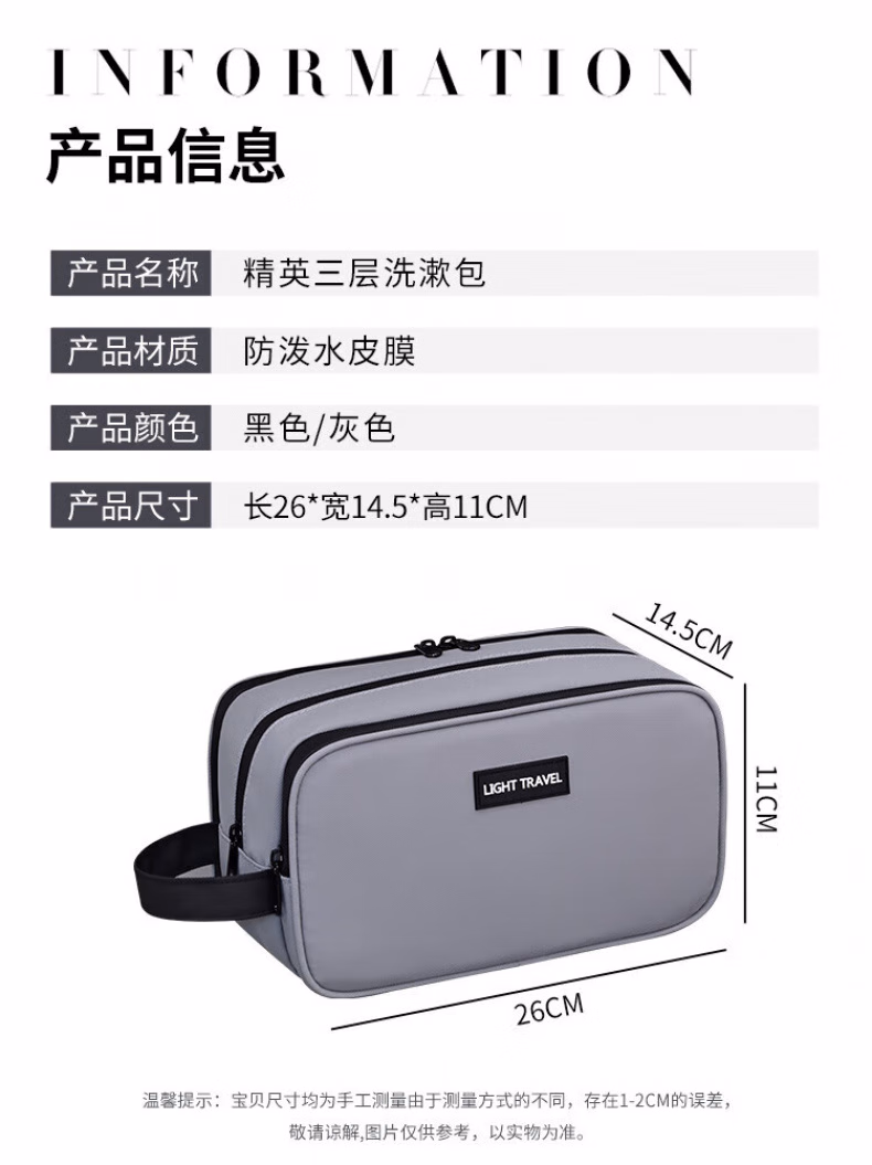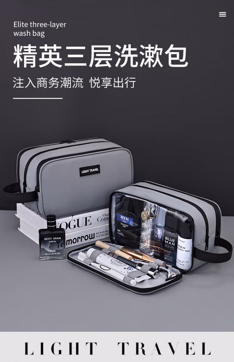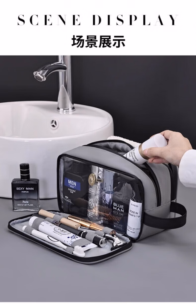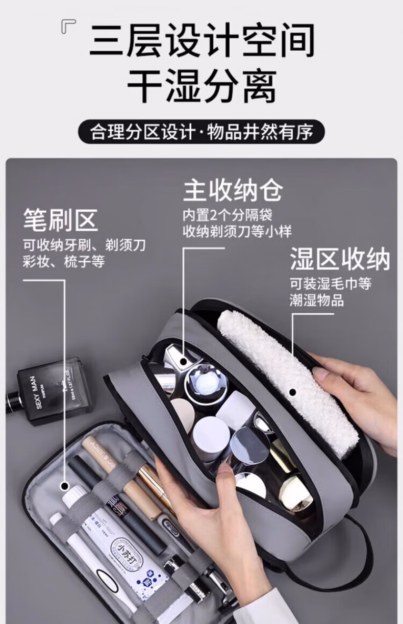 WCZ German brand toiletry bag for business trips for men, wet and dry separation waterproof portable set for women, large capacity, small size, high-end gray | high-end leather film three-layer model