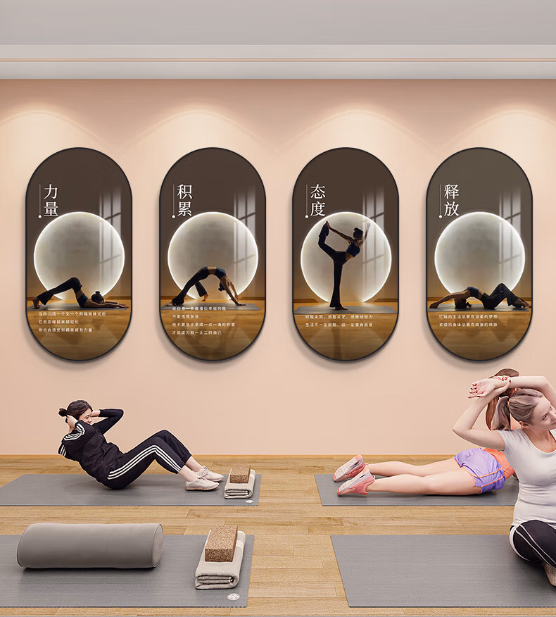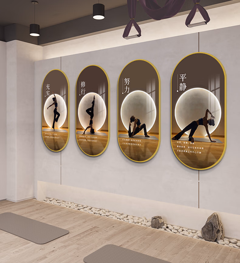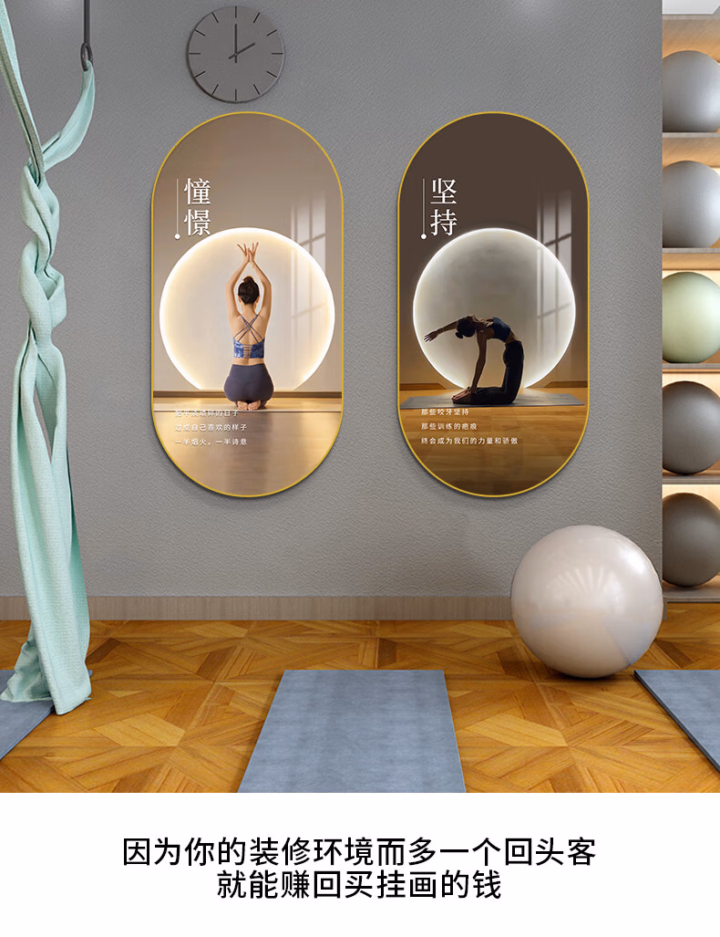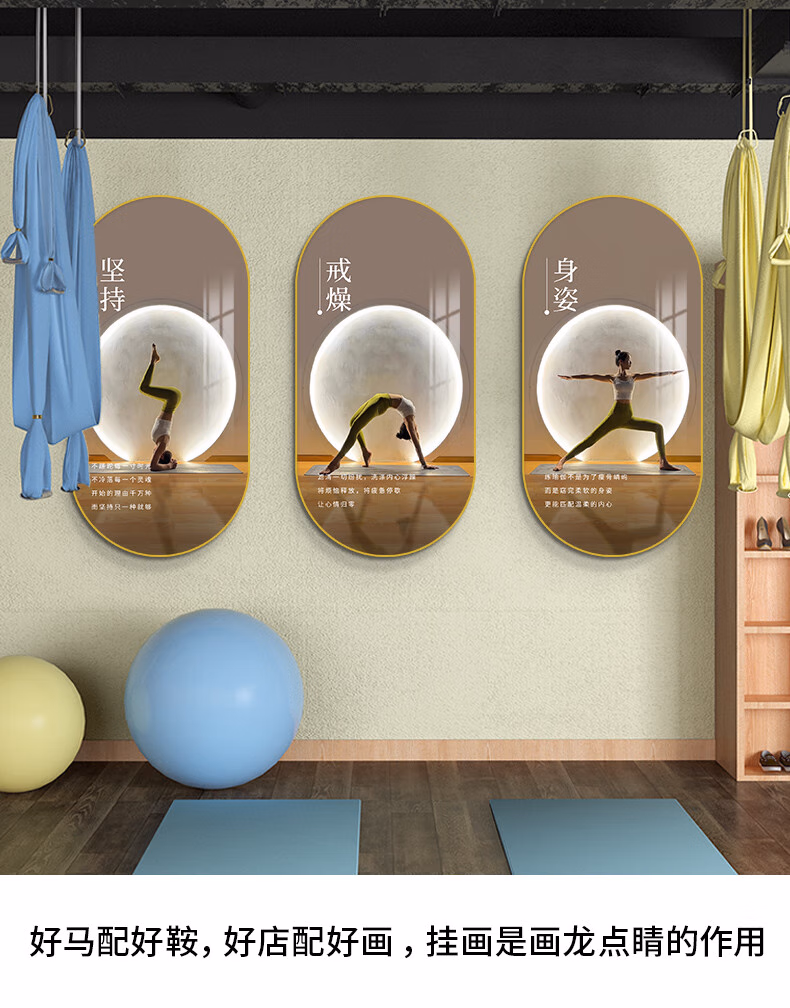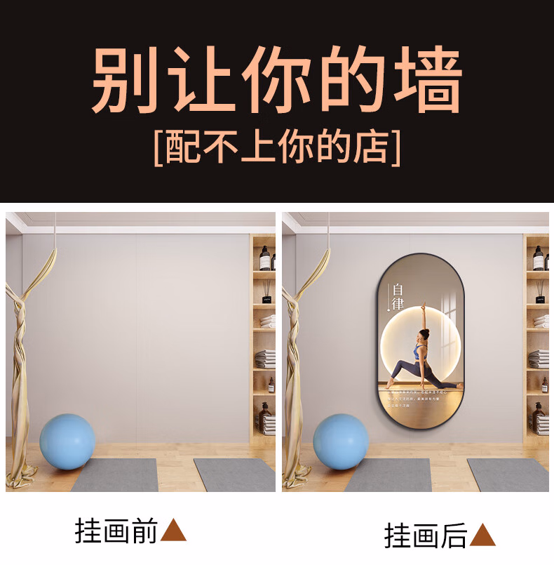 Kaooseen Art Decorative Painting Yoga Studio Dance Studio Pilates Fitness Wall Mural Hanging Painting Wabi Sabi Style HL356-640* 3060CM x Elegant Black Frame + High Definition Crystal Film x HL3567