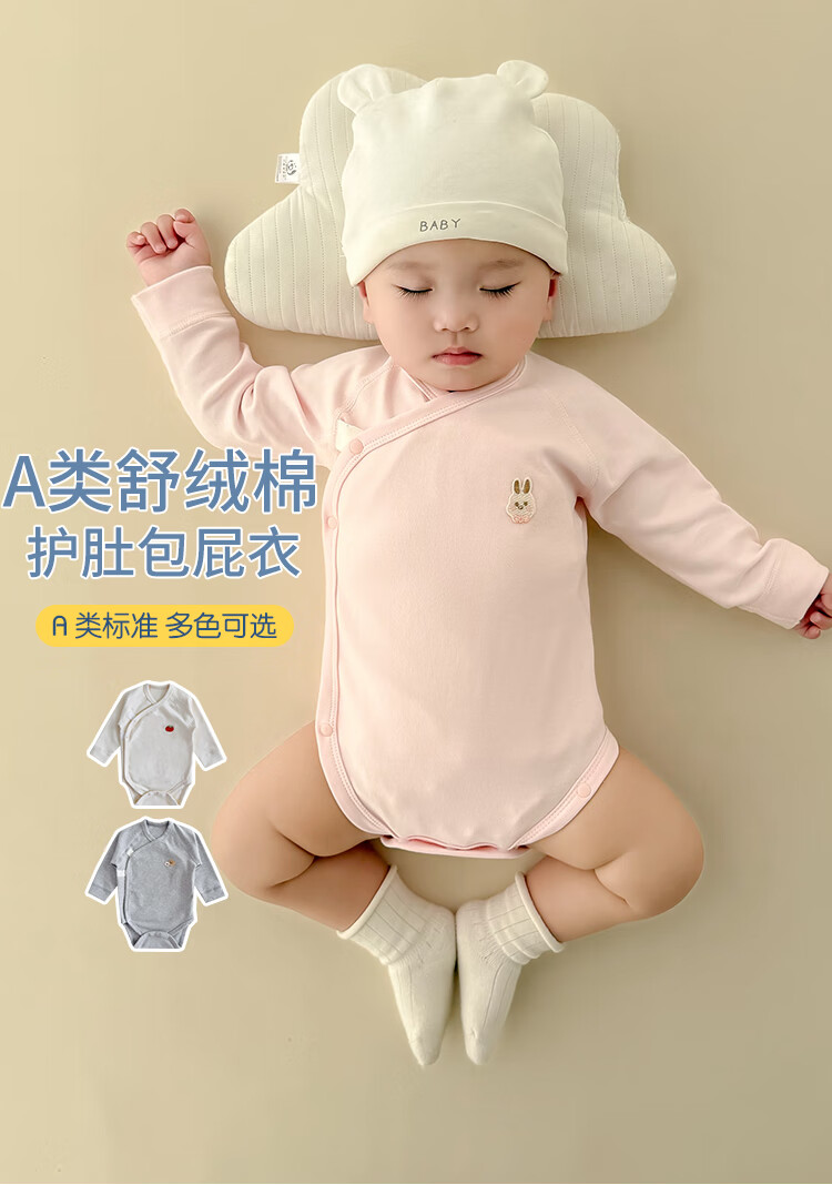 Baby butt covering clothing, autumn and winter base layer, cotton type A inner layer, close-fitting and warm, newborn baby, gray butt covering clothing + belly protection pants two-piece set, 73cm, suitable for ages 6-9 months, reference weight 14- One size fits all