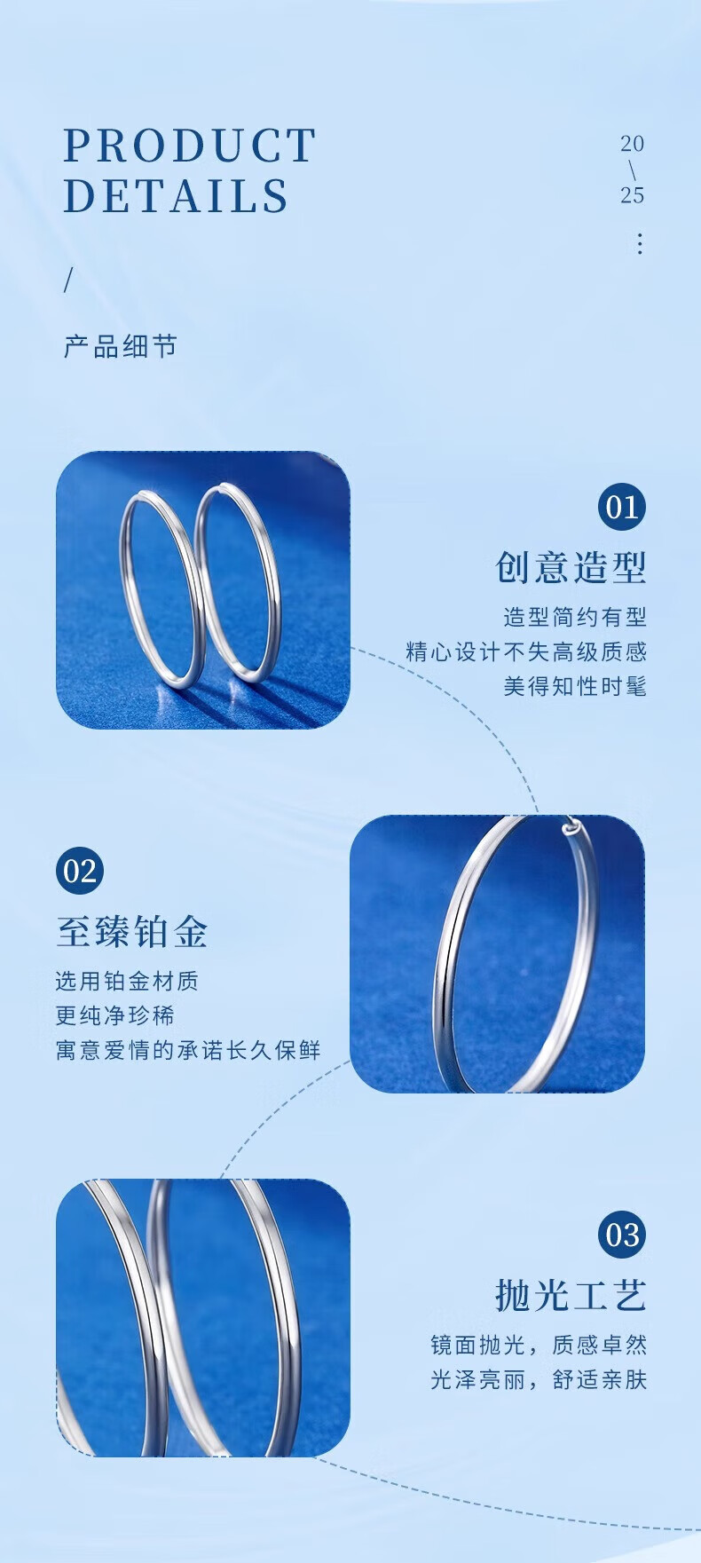 Lao Fengxiang PT950 platinum glossy plain hoop earrings for women platinum Mid-Autumn Festival birthday gift for girlfriend and wife PT950 platinum glossy plain hoop earrings about 2.5g