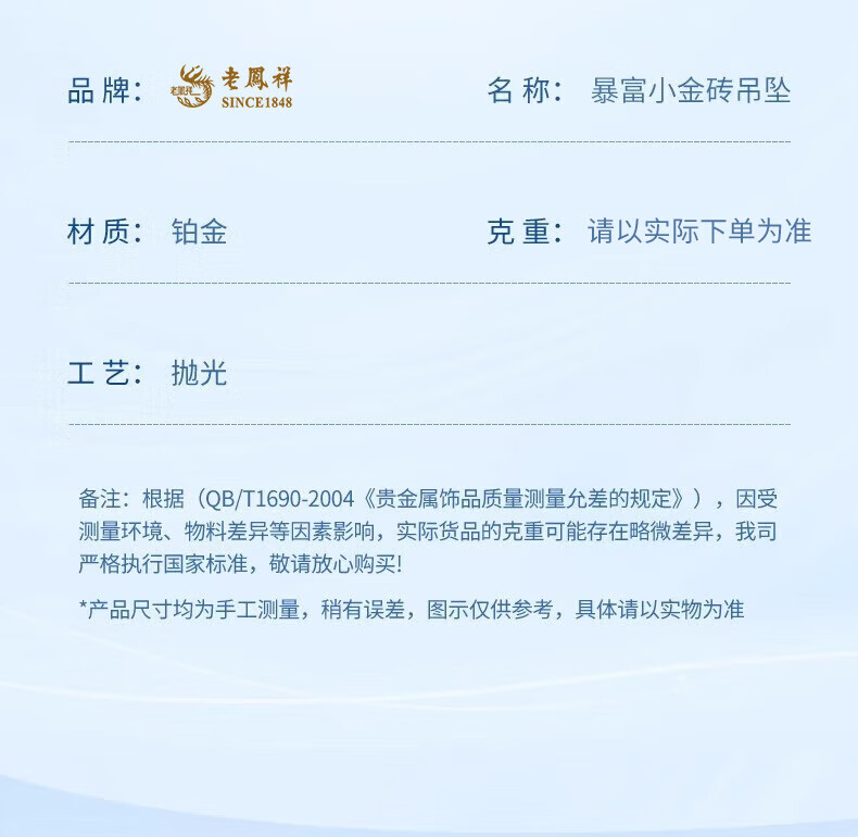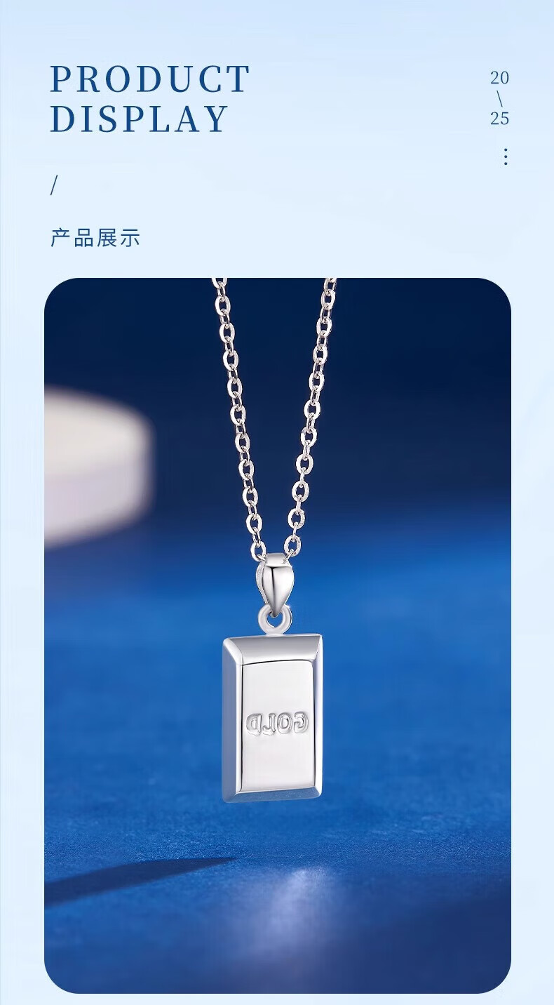 Lao Fengxiang PT950 platinum small gold bar pendant for women new platinum Jane Mid-Autumn Festival birthday gift for girlfriend and wife PT950 platinum small gold bar pendant about 5.4g free silver chain