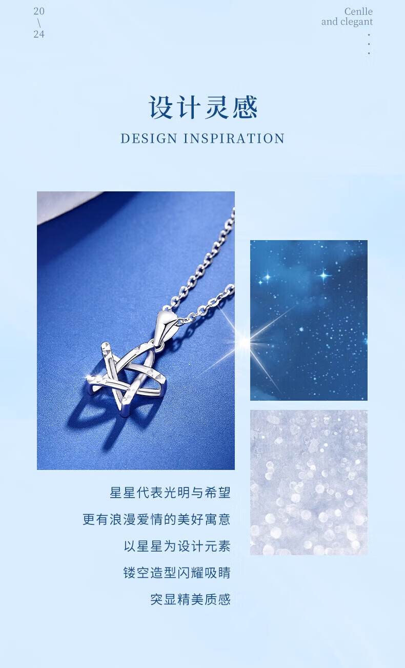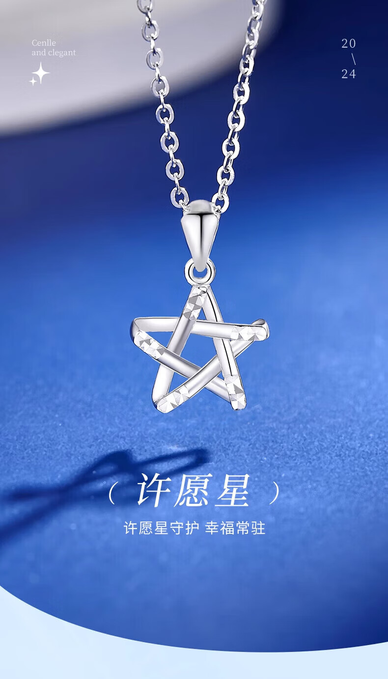 Lao Fengxiang PT950 platinum star pendant for women, new versatile light Mid-Autumn Festival birthday gift for girlfriend and wife, platinum star pendant, about 1.6g, free silver chain