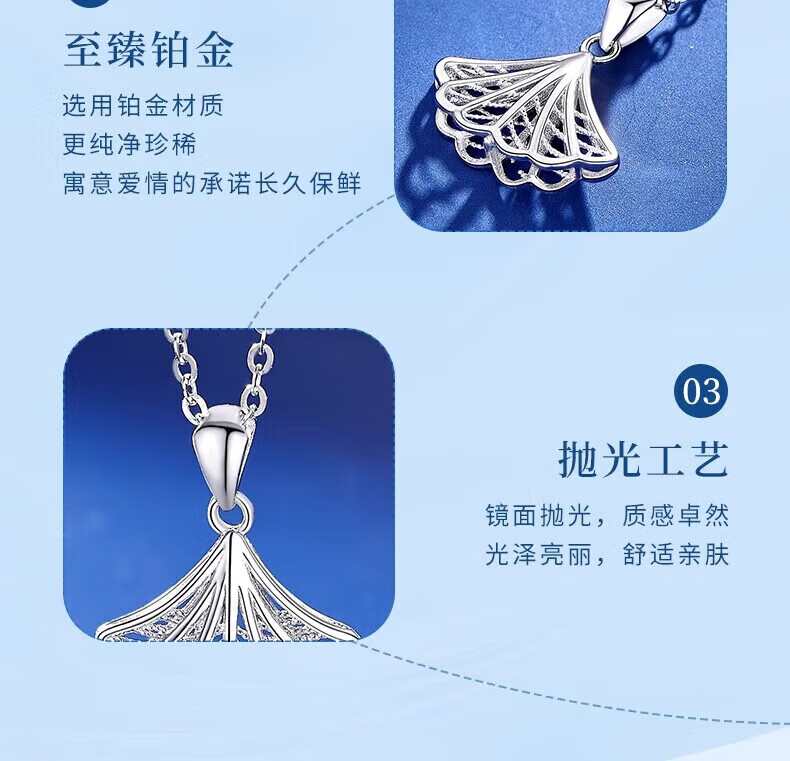 Lao Fengxiang PT950 platinum skirt pendant for women, platinum ginkgo clavicle chain, Mid-Autumn Festival birthday gift for girlfriend, PT950 platinum skirt pendant, about 1.8g, free silver chain