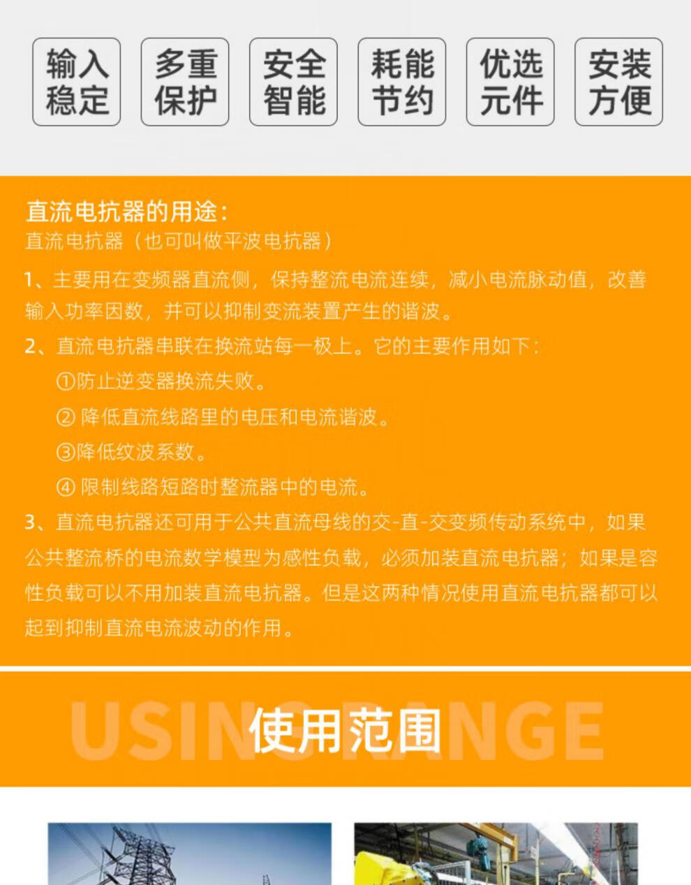 Single-phase DC smoothing reactor frequency conversion 220V20A25A30A40A50A60A80A100A150A DCL-18 points 5KW-50A copper