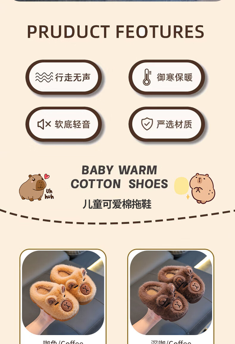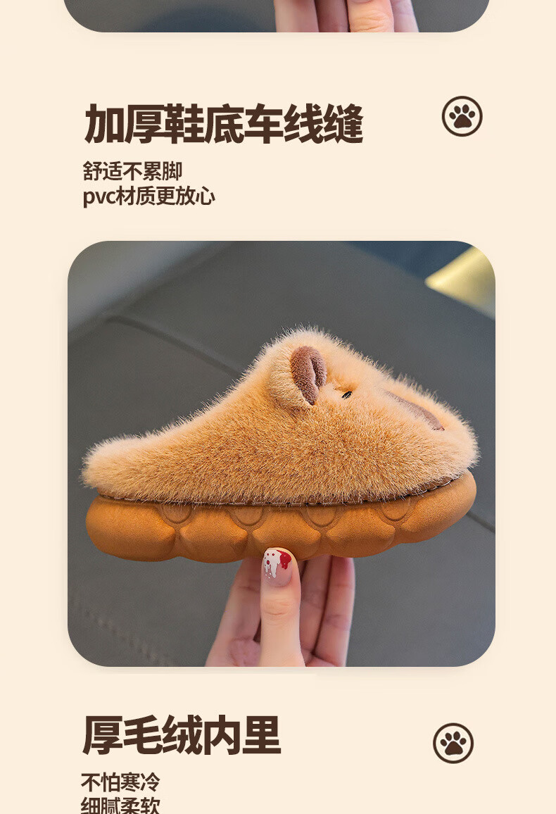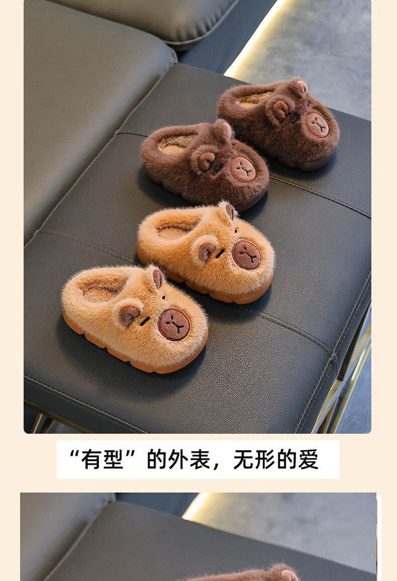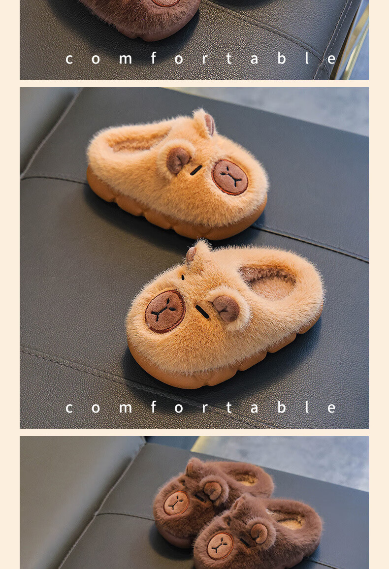 Kapibara children's cotton slippers, winter, boys' warm plus plush, home parent, child and baby bag heel cotton shoes, light coffee slippers, size 35, size 36 (shoe length 21CM, suitable for feet 20CM)