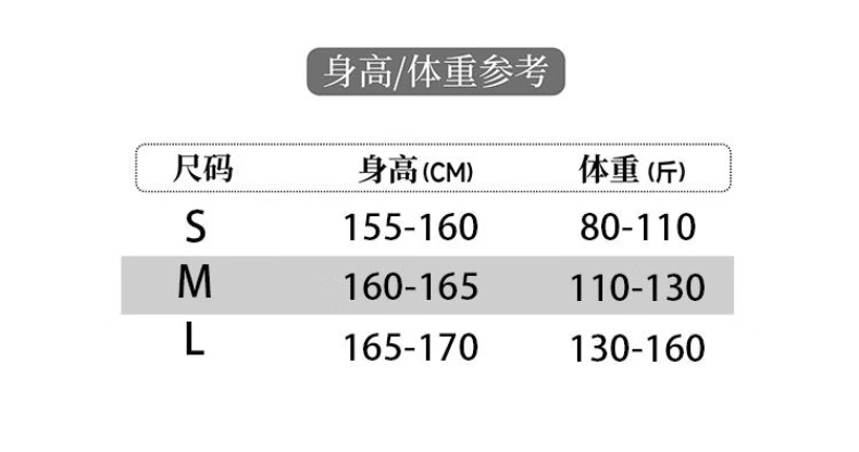 China (cm) 160-165/84-86 165-170 / 88-90 167-172 / 92-96 168-173 / 98-102 170-176 / 106-110