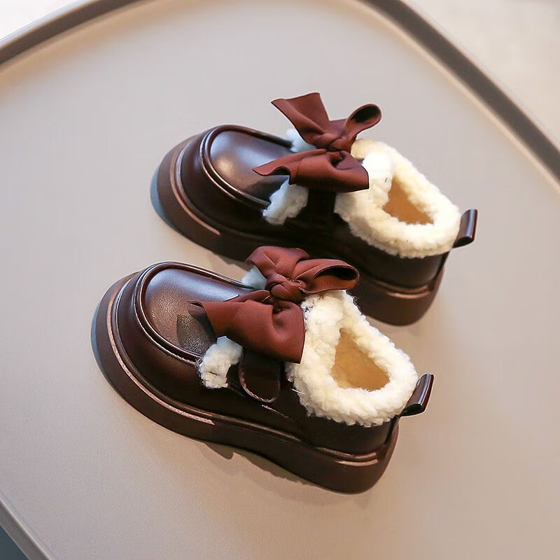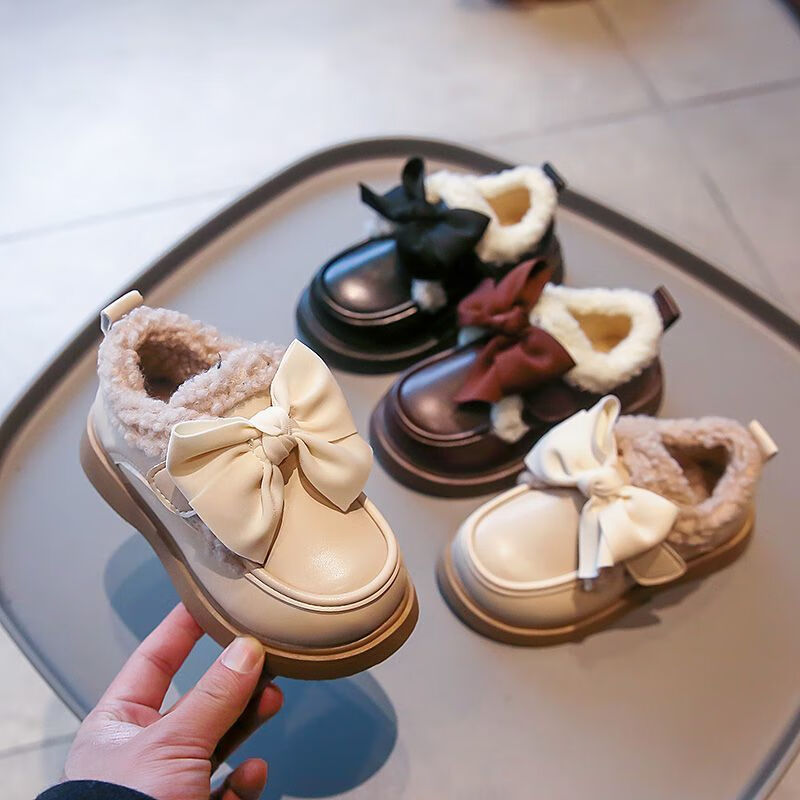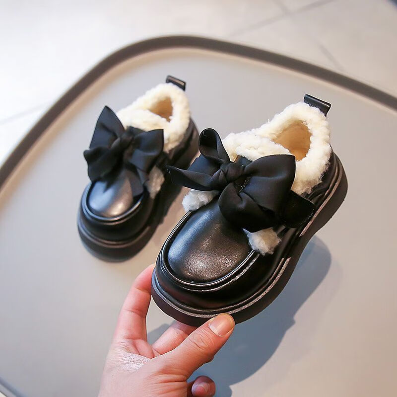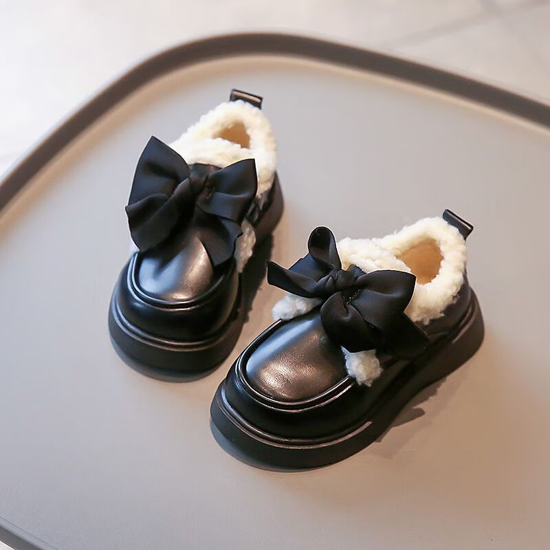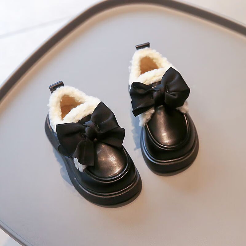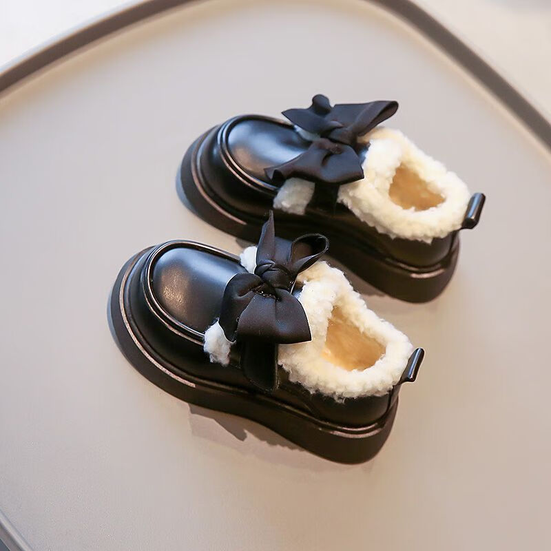 G.duck Little Yellow Duck Leather Shoes Girls' Cotton Shoes Winter 2025 New Children's Velvet Princess Shoes Girls' Warm Medium Large Black Collection and Purchase Priority Shipping 23 Inner Length 14.5cm