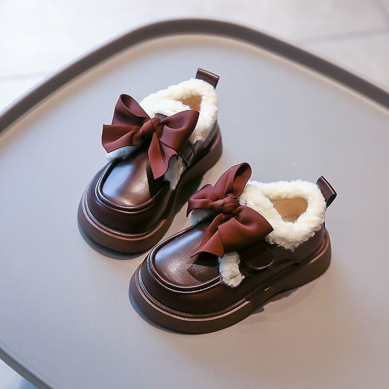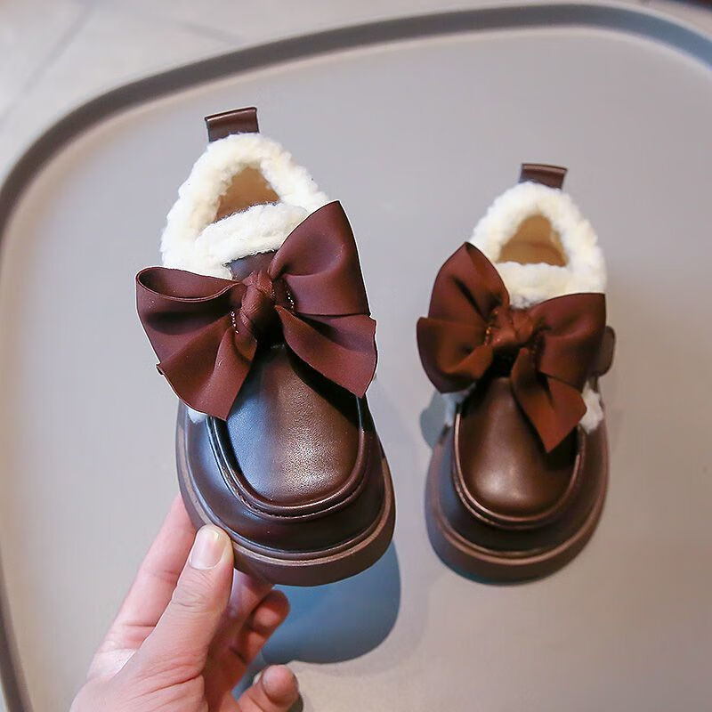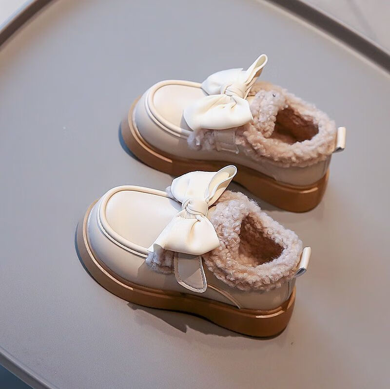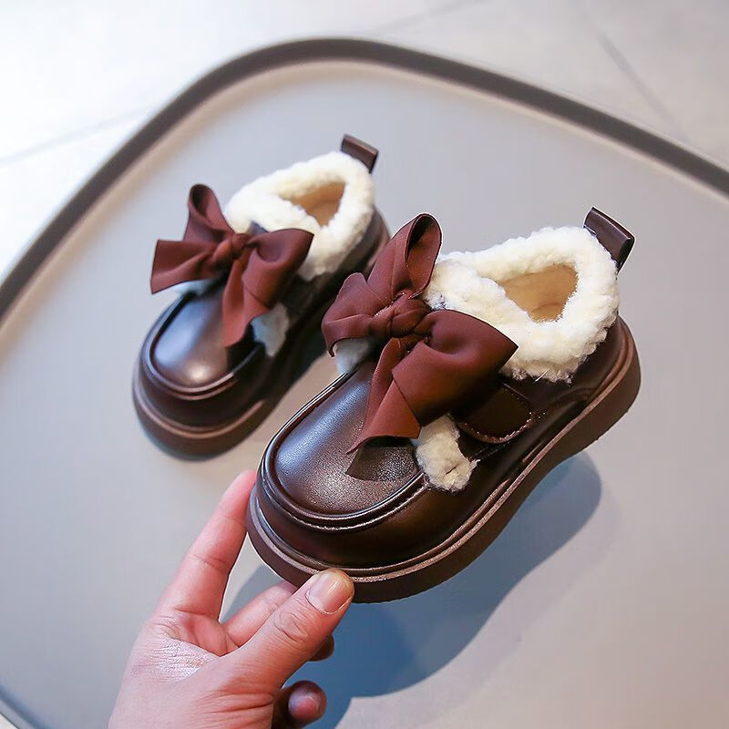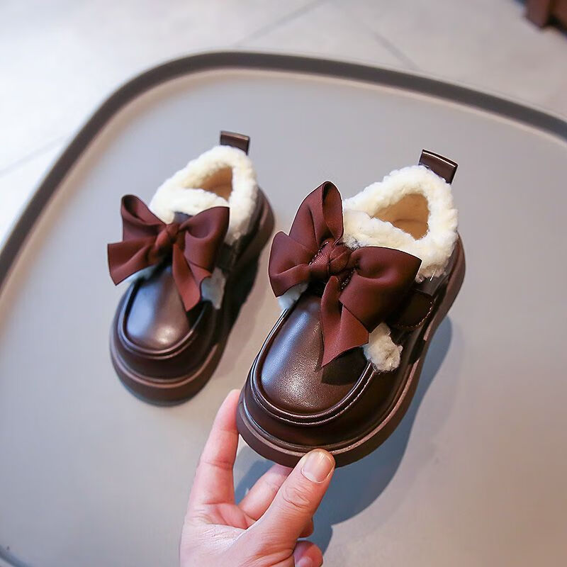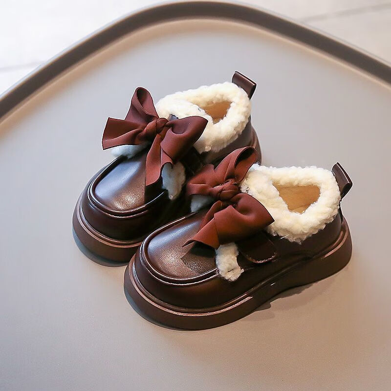 G.duck Little Yellow Duck Leather Shoes Girls' Cotton Shoes Winter 2025 New Children's Velvet Princess Shoes Girls' Warm Medium Large Black Collection and Purchase Priority Shipping 23 Inner Length 14.5cm