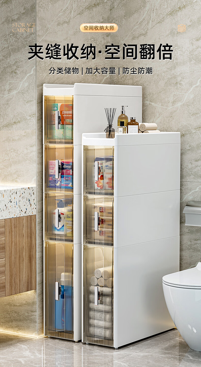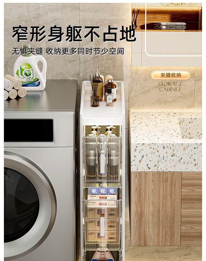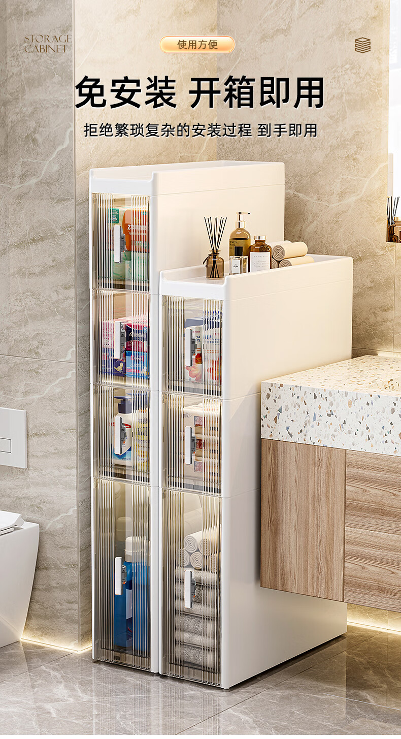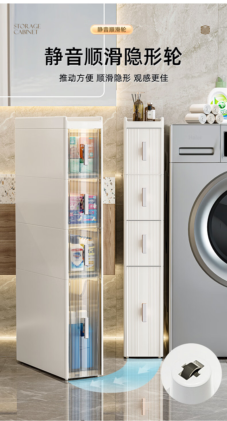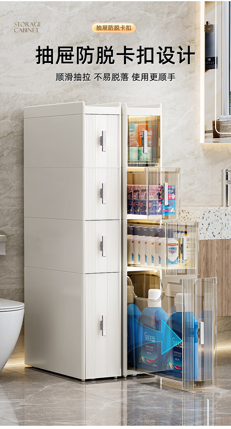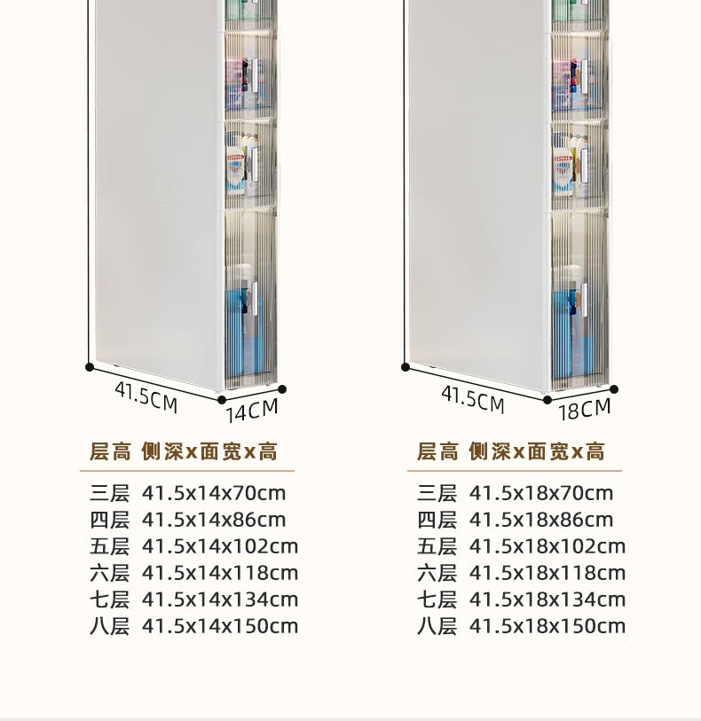 Installation-free lockers, bathroom multi-layer drawer storage cabinets, toilet refrigerator gap cabinets, kitchen narrow cabinets, gap cabinets, 14cm wide, pure white and transparent, 6 layers