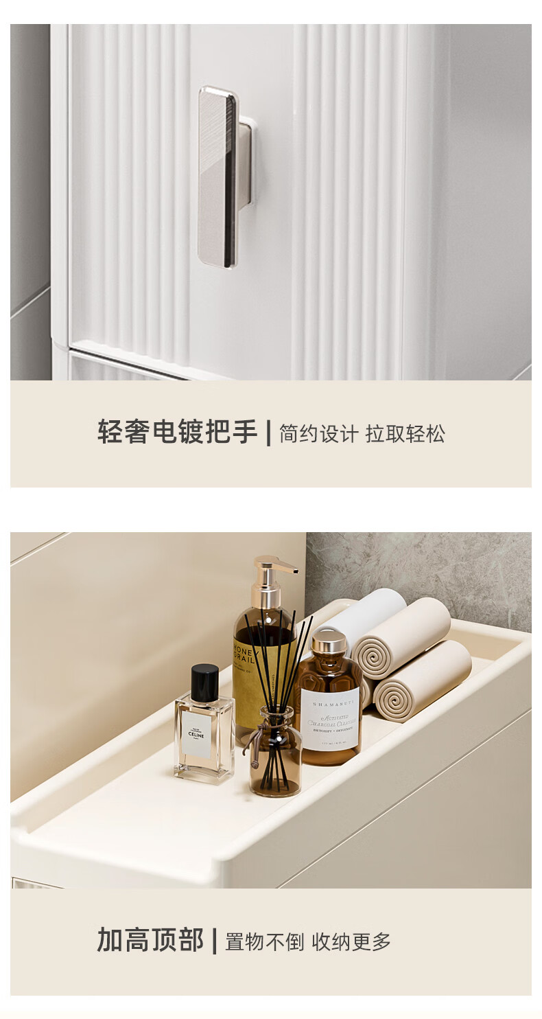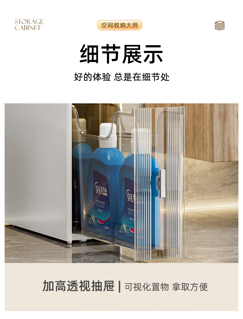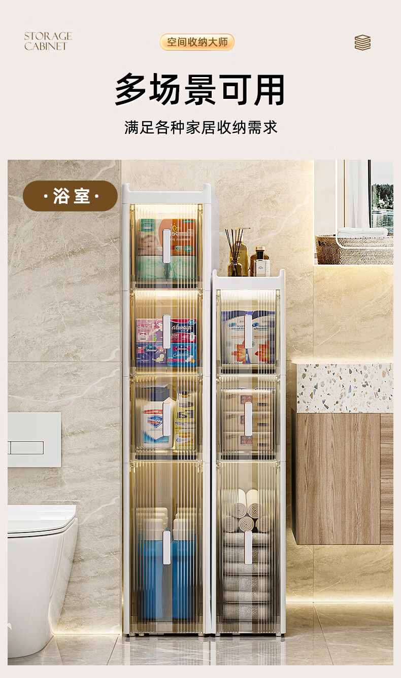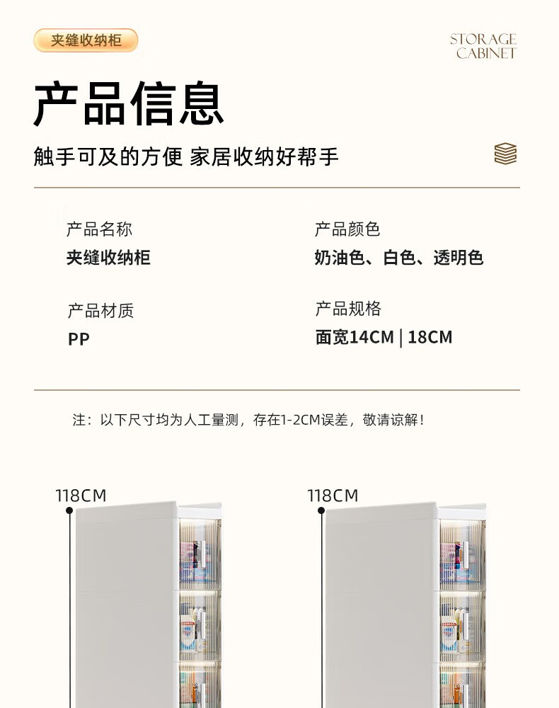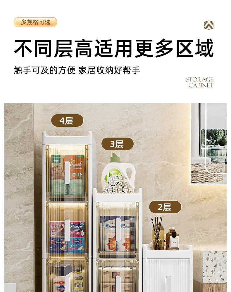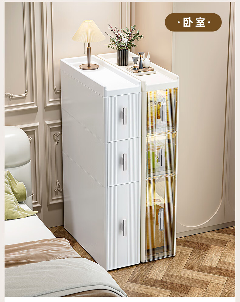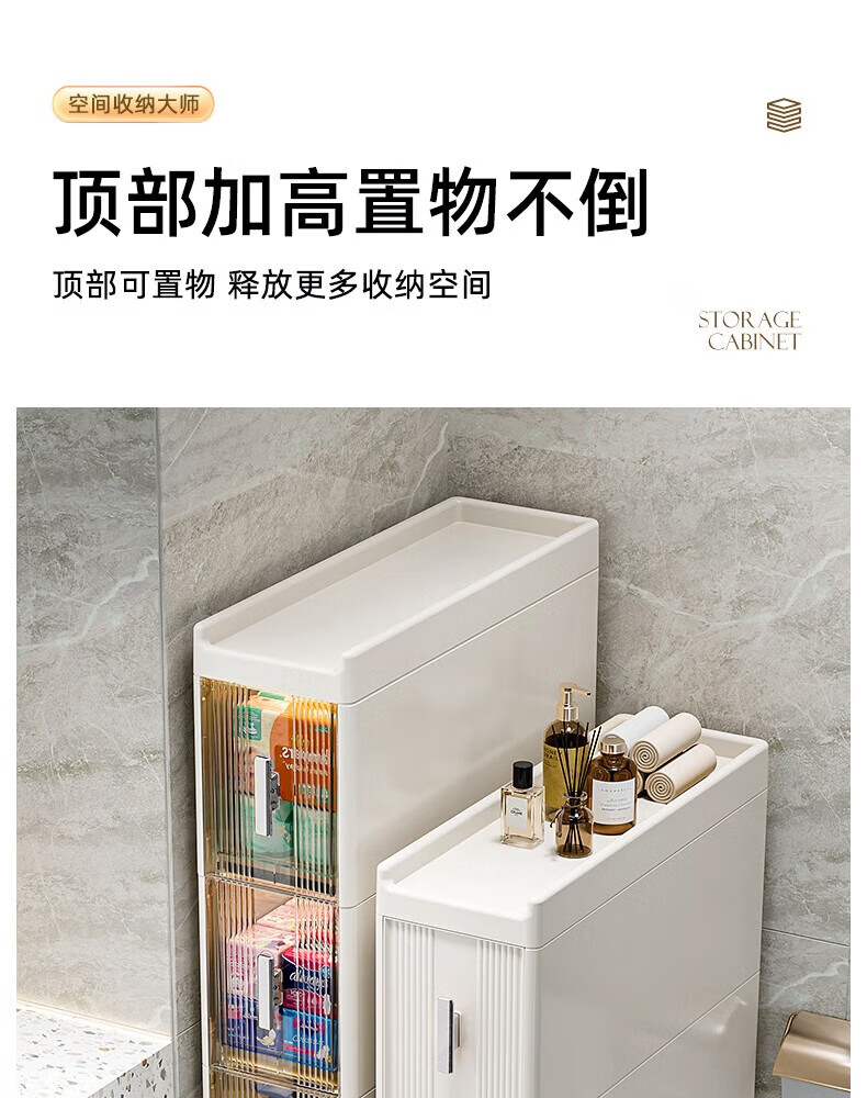 Installation-free lockers, bathroom multi-layer drawer storage cabinets, toilet refrigerator gap cabinets, kitchen narrow cabinets, gap cabinets, 14cm wide, pure white and transparent, 6 layers
