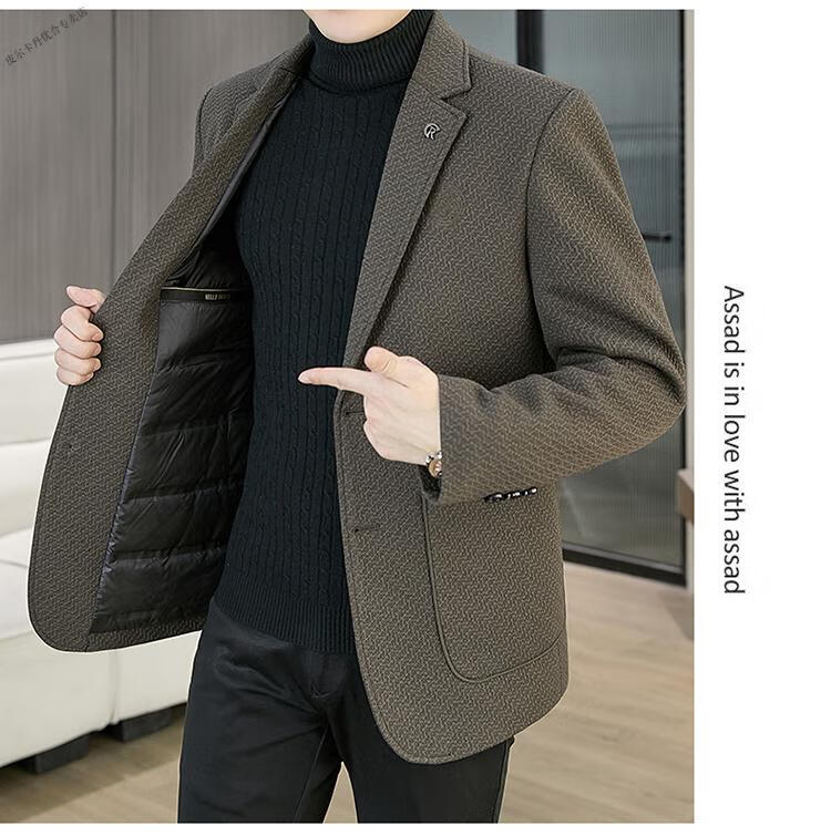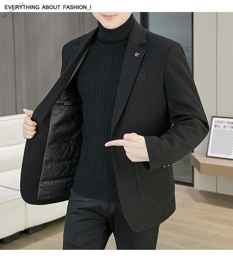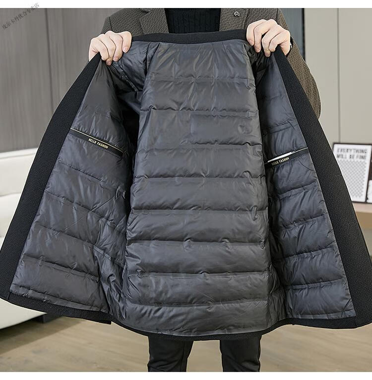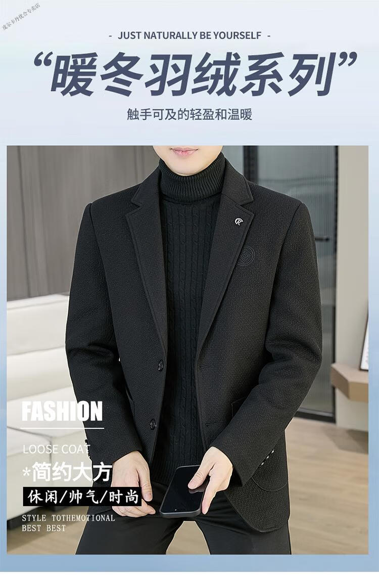 Pierre Cardin 2025 Autumn and Winter New Down Jacket Woolen Suit Men's Thick Warm Duck Down Suit Men's Jacket Black 3XL 165-180Jin Jin equals 0.5 kg
