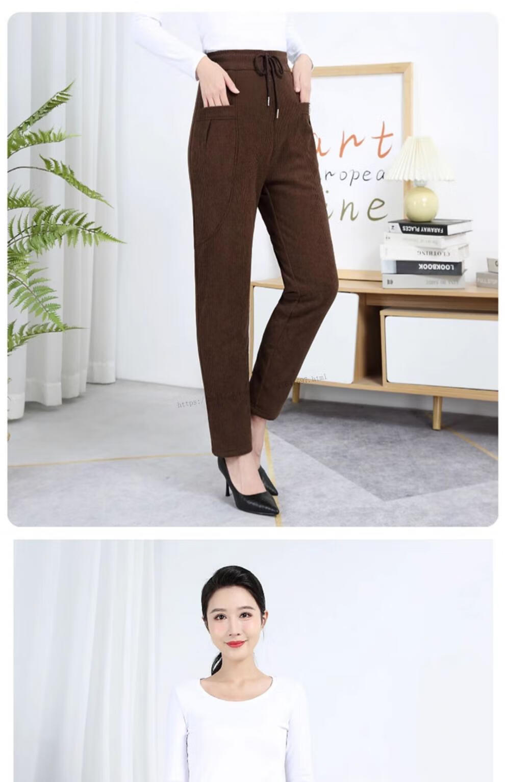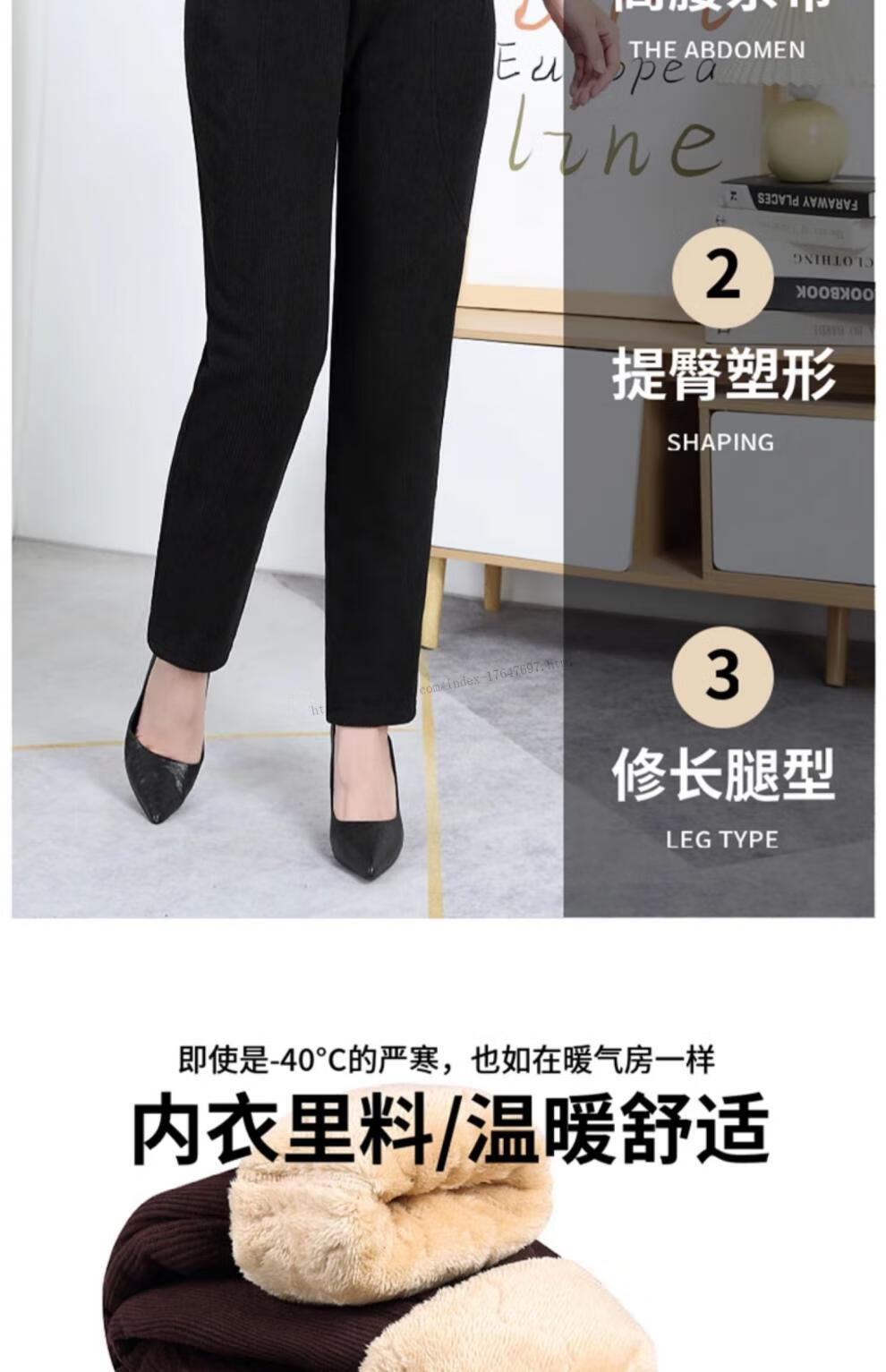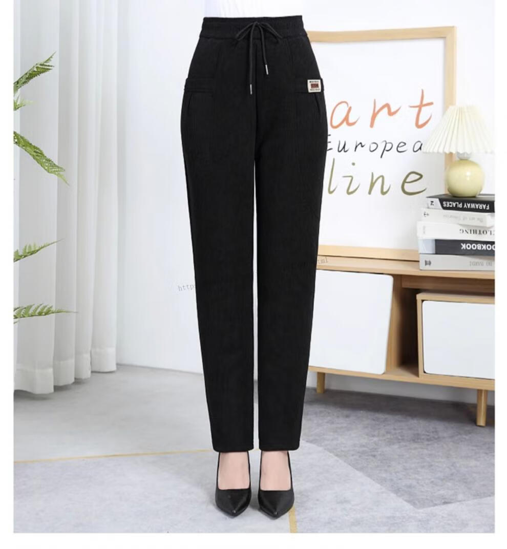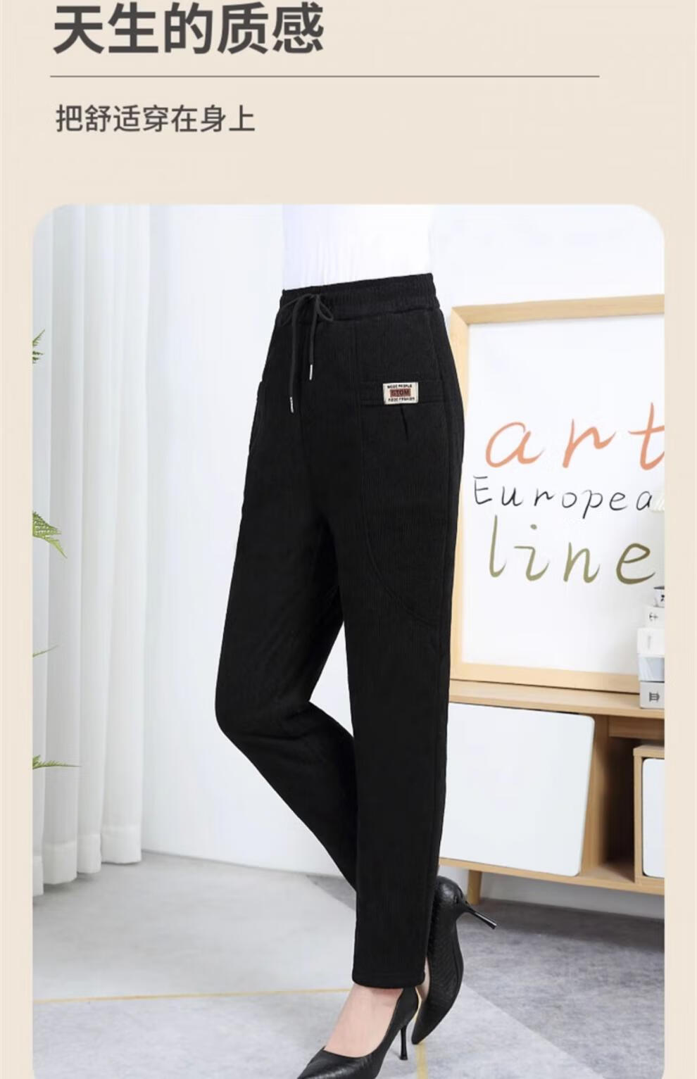 Hengyuanxiang middle-aged and elderly corduroy women's autumn and winter cotton pants with velvet and thickening for grandma plus size mother lamb velvet warm pants black (thick and velvet) 6XL recommended 160-180Jin Jin equals 0.5 kg
