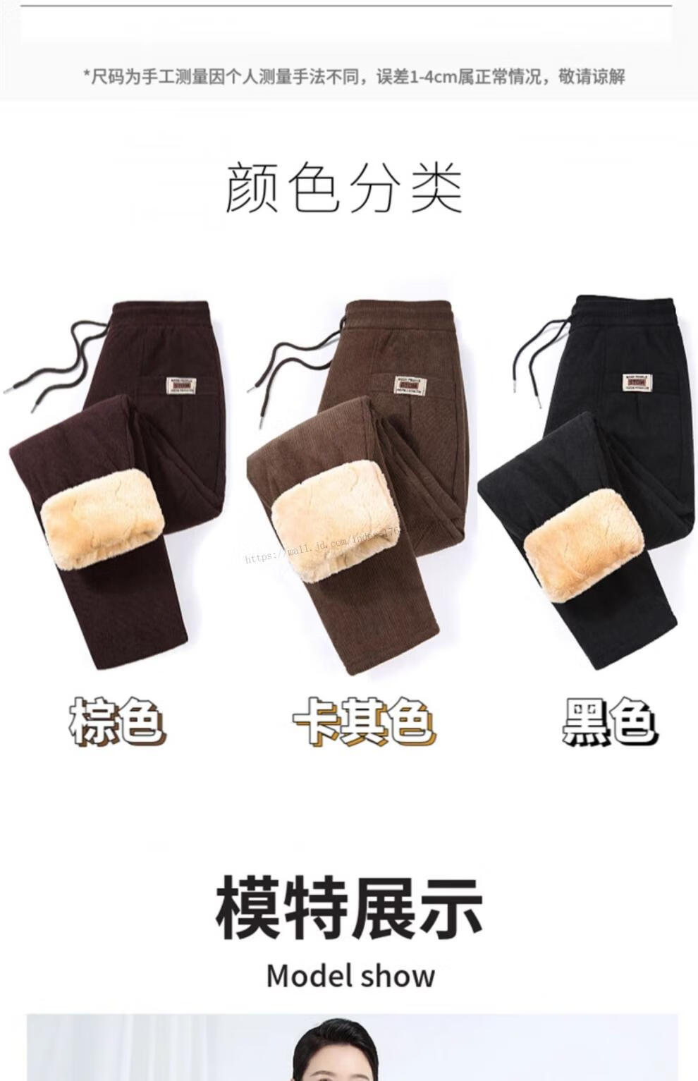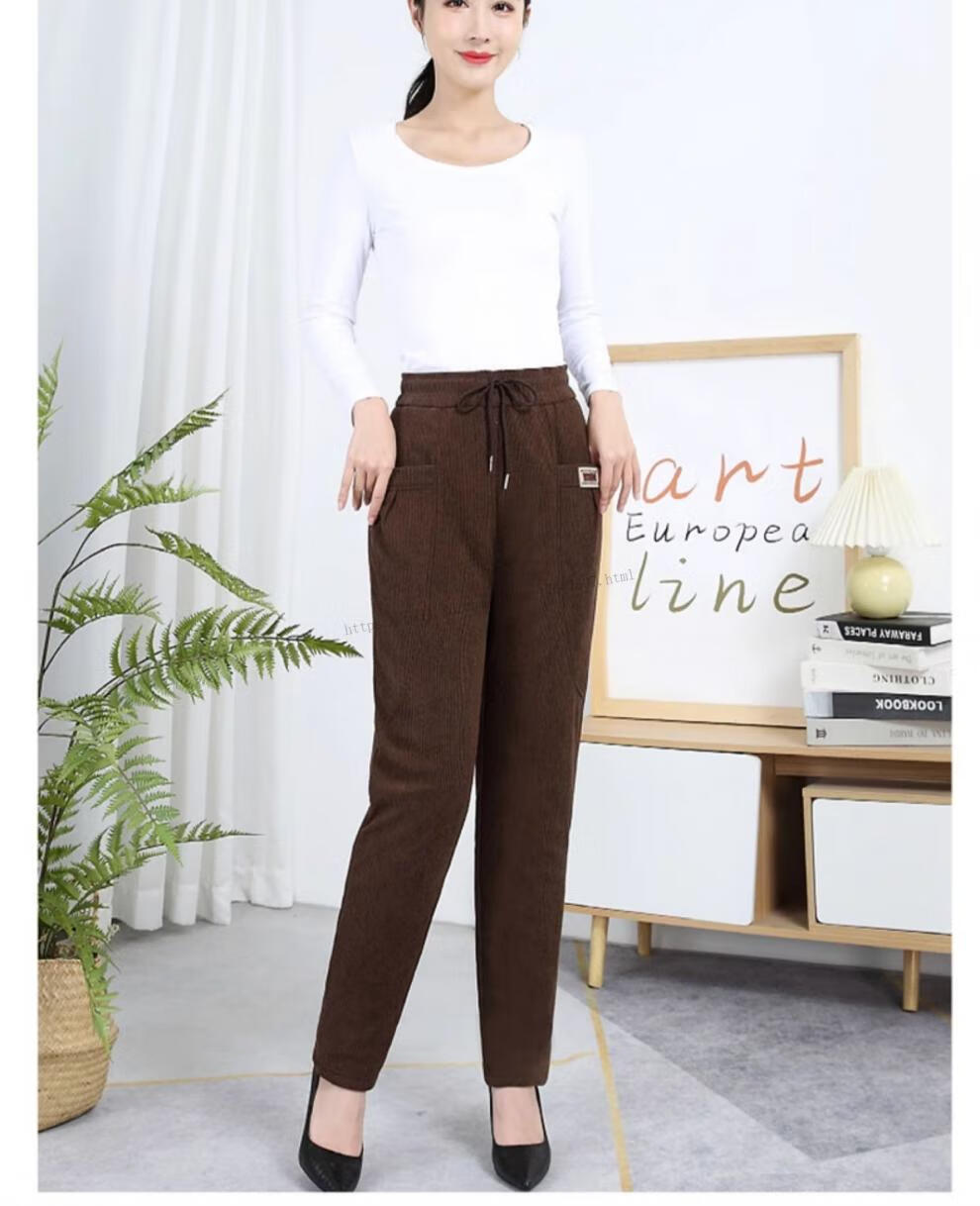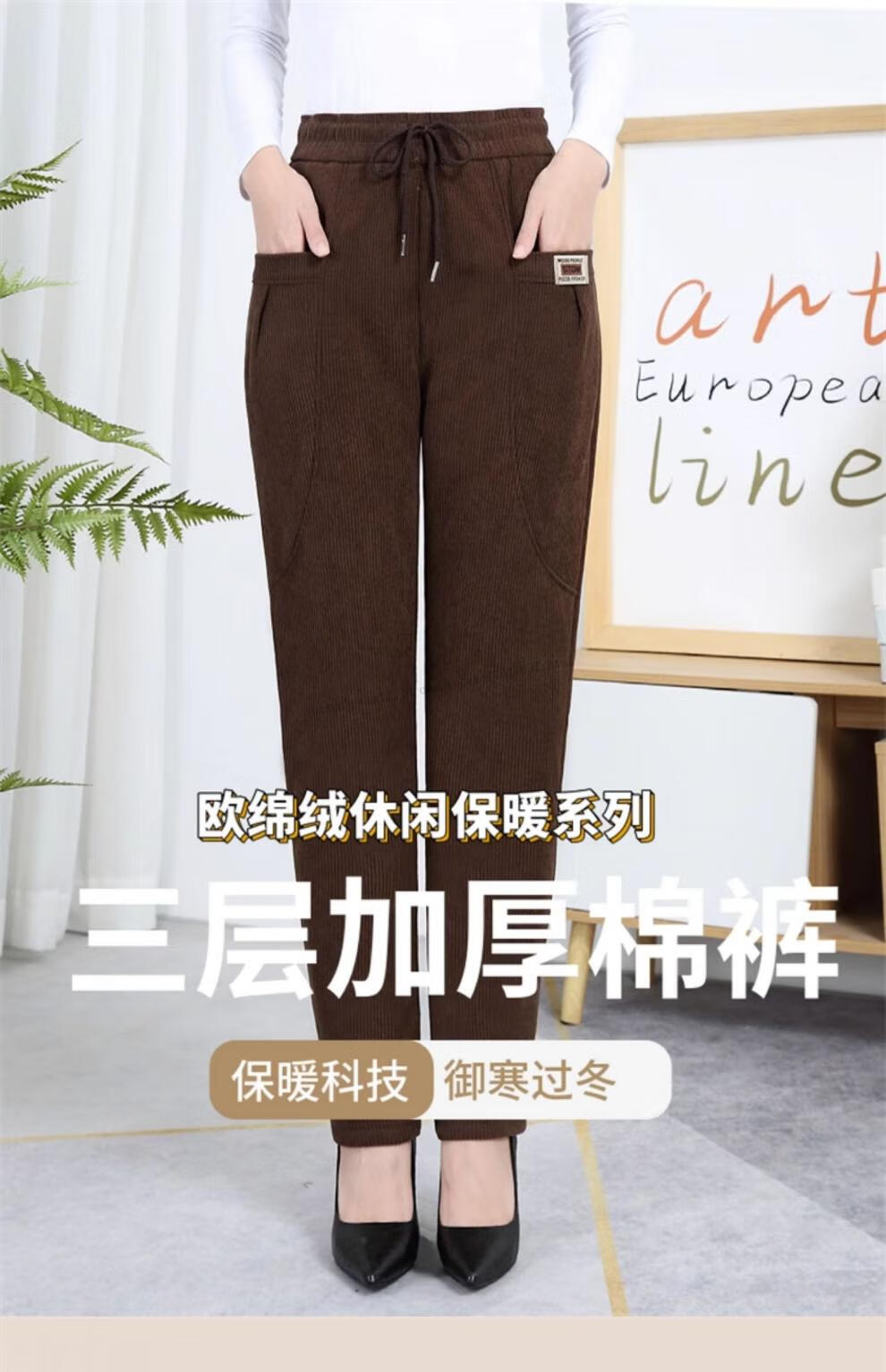 Hengyuanxiang middle-aged and elderly corduroy women's autumn and winter cotton pants with velvet and thickening for grandma plus size mother lamb velvet warm pants black (thick and velvet) 6XL recommended 160-180Jin Jin equals 0.5 kg