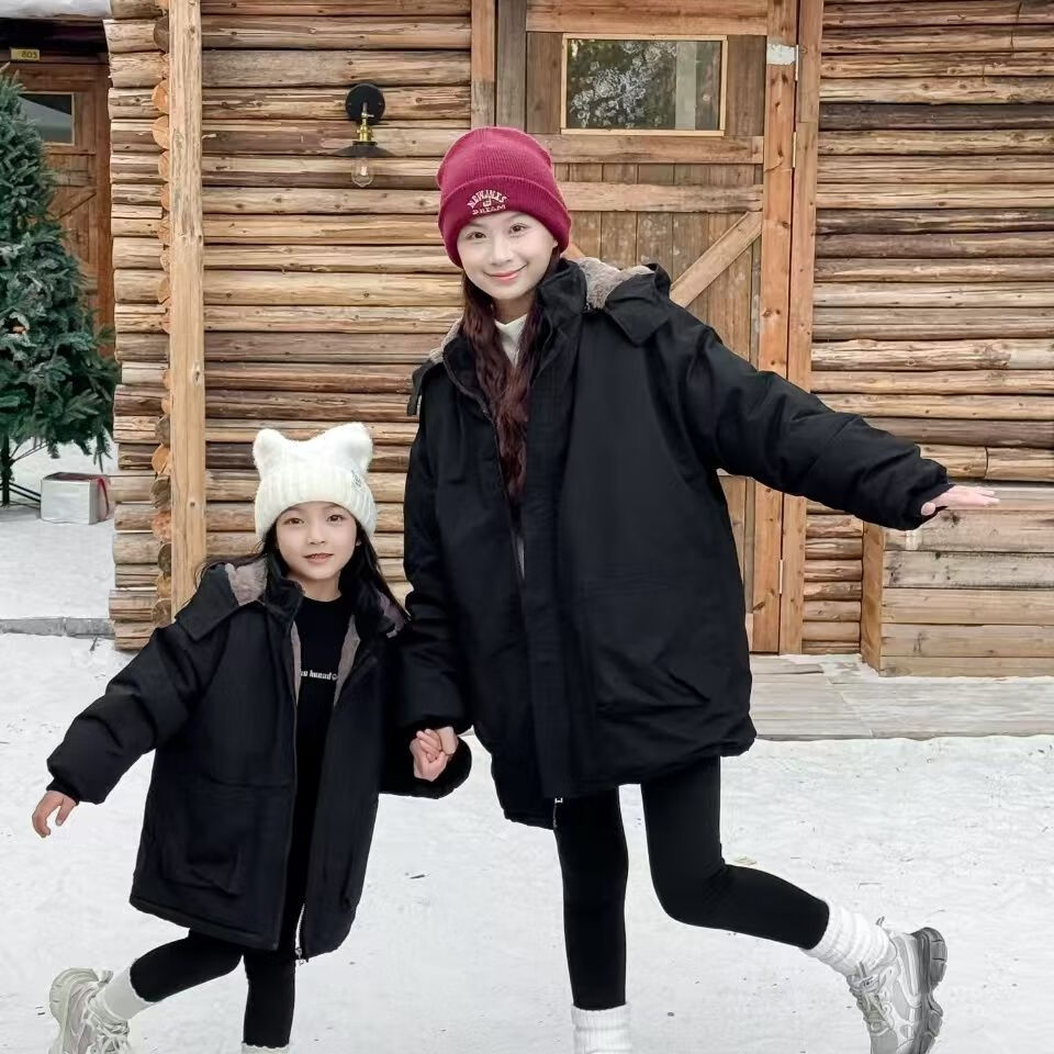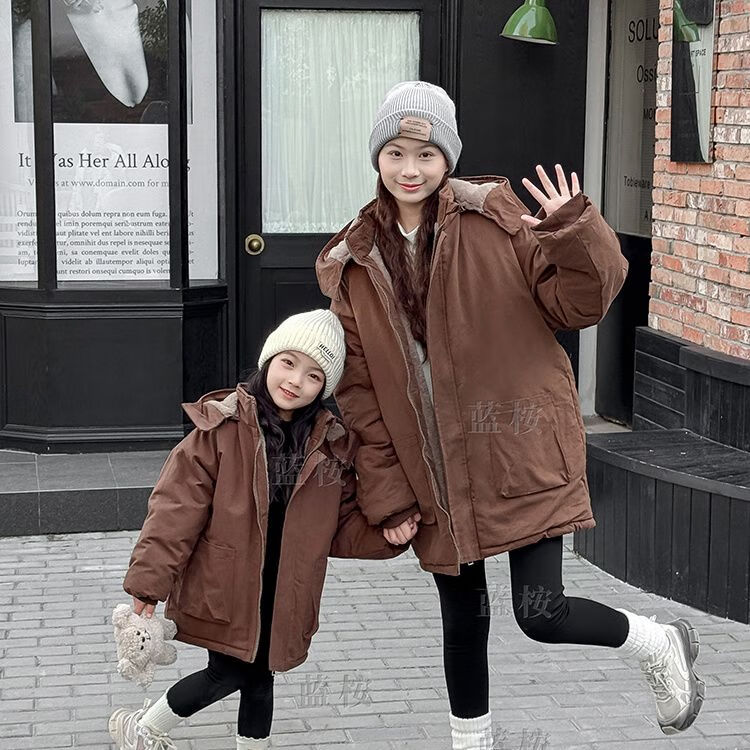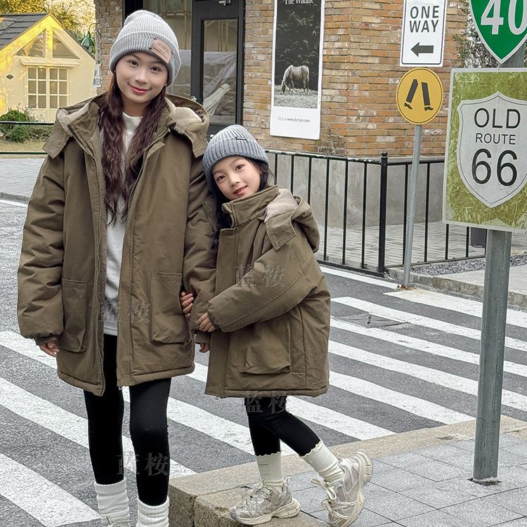 Disney (Disney) fleece winter 2025 parent-child jacket new thickened warm mid-length unisex cotton jacket for children green (hat removable) 180 recommended height 170-180cm