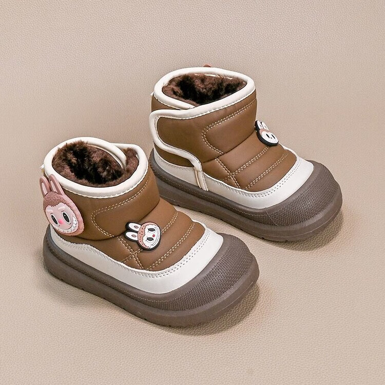 Girls' Snow Boots 2025 Winter New Boys' Shoes Plus Velvet and Thickened Antifreeze Cotton Shoes for Baby Girls Children's Boots Brown丨Upgraded Version 28 Size 17.0cm Inner Length
