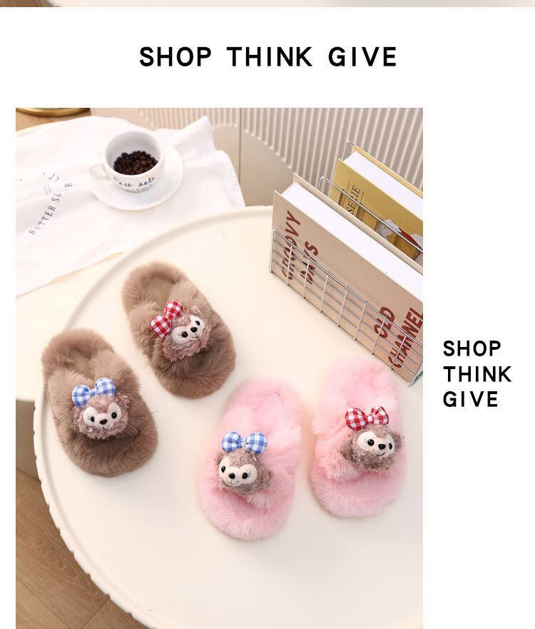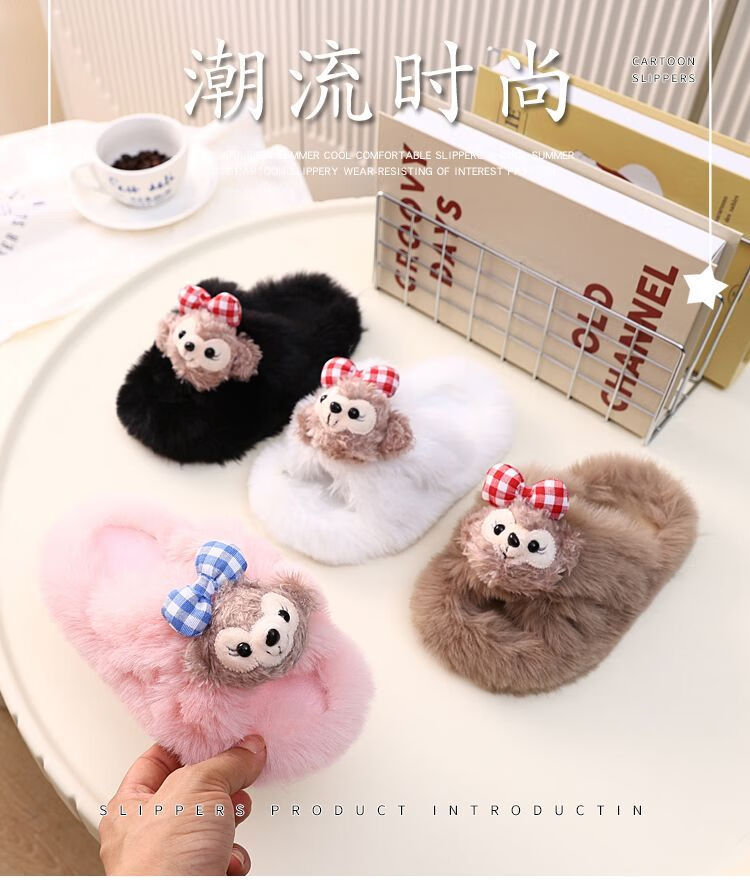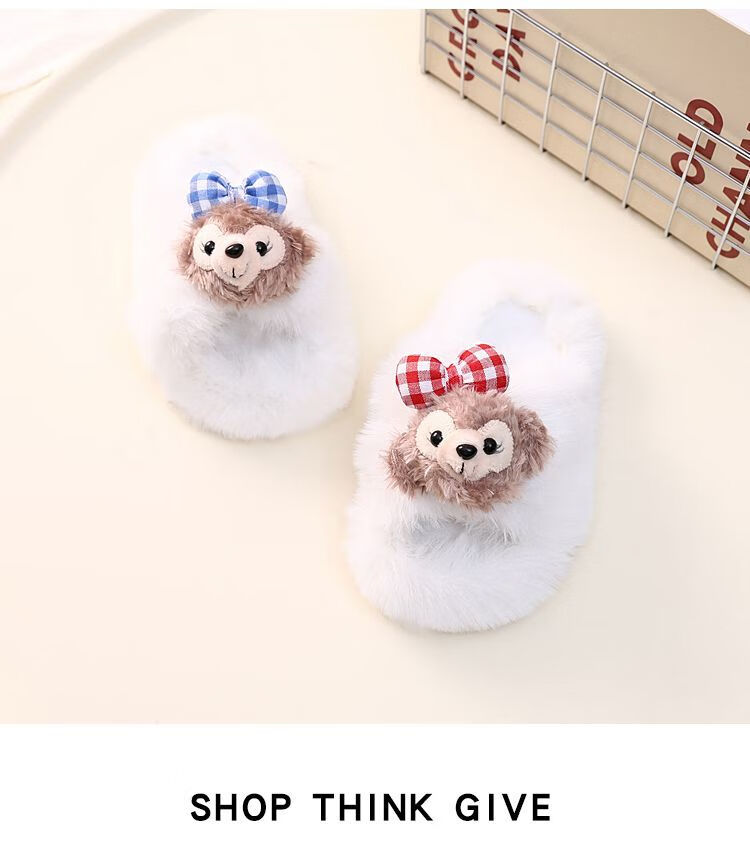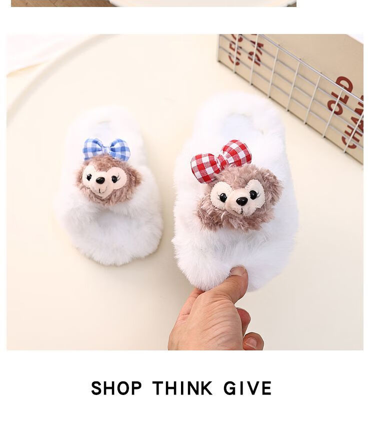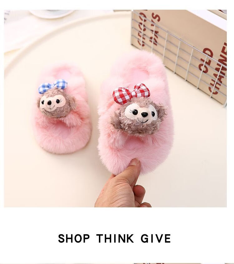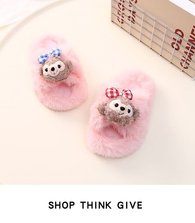 2024 New Princess Style Cute Shirley Rose Children's Furry Slippers Home Thick-Soled Anti-Slip Warm Baby Cotton Shoes Pink Cute Little Shirley Rose 30-31 (Inner Length 19.5cm)